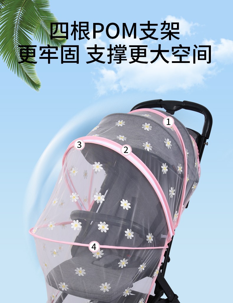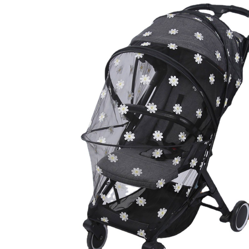 Москитная сетка для коляски, противомоскитный чехол для детской коляски, складной солнцезащитный козырек для прогулок с ребенком, вышитый плотный сетчатый солнцезащитный козырек и противомоскитный чехол.