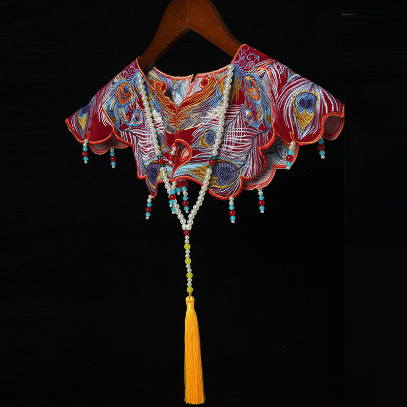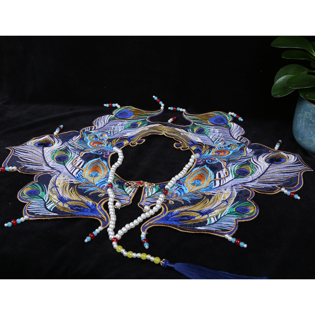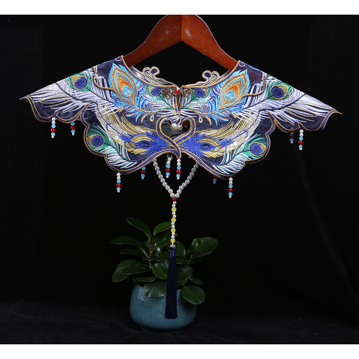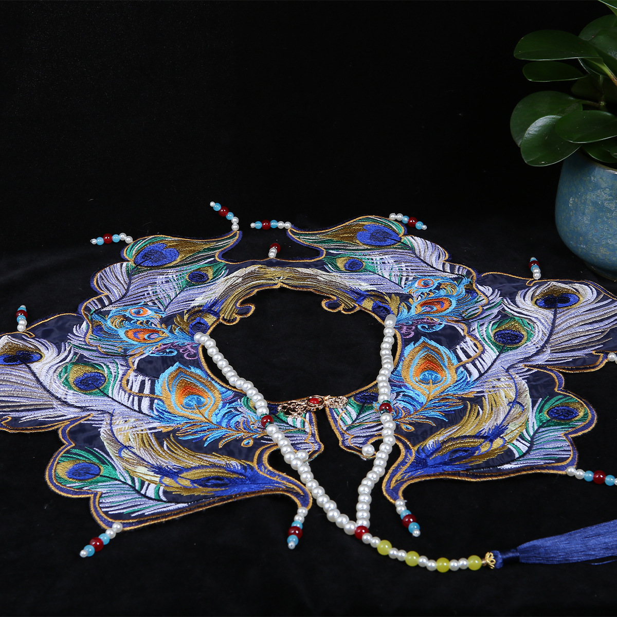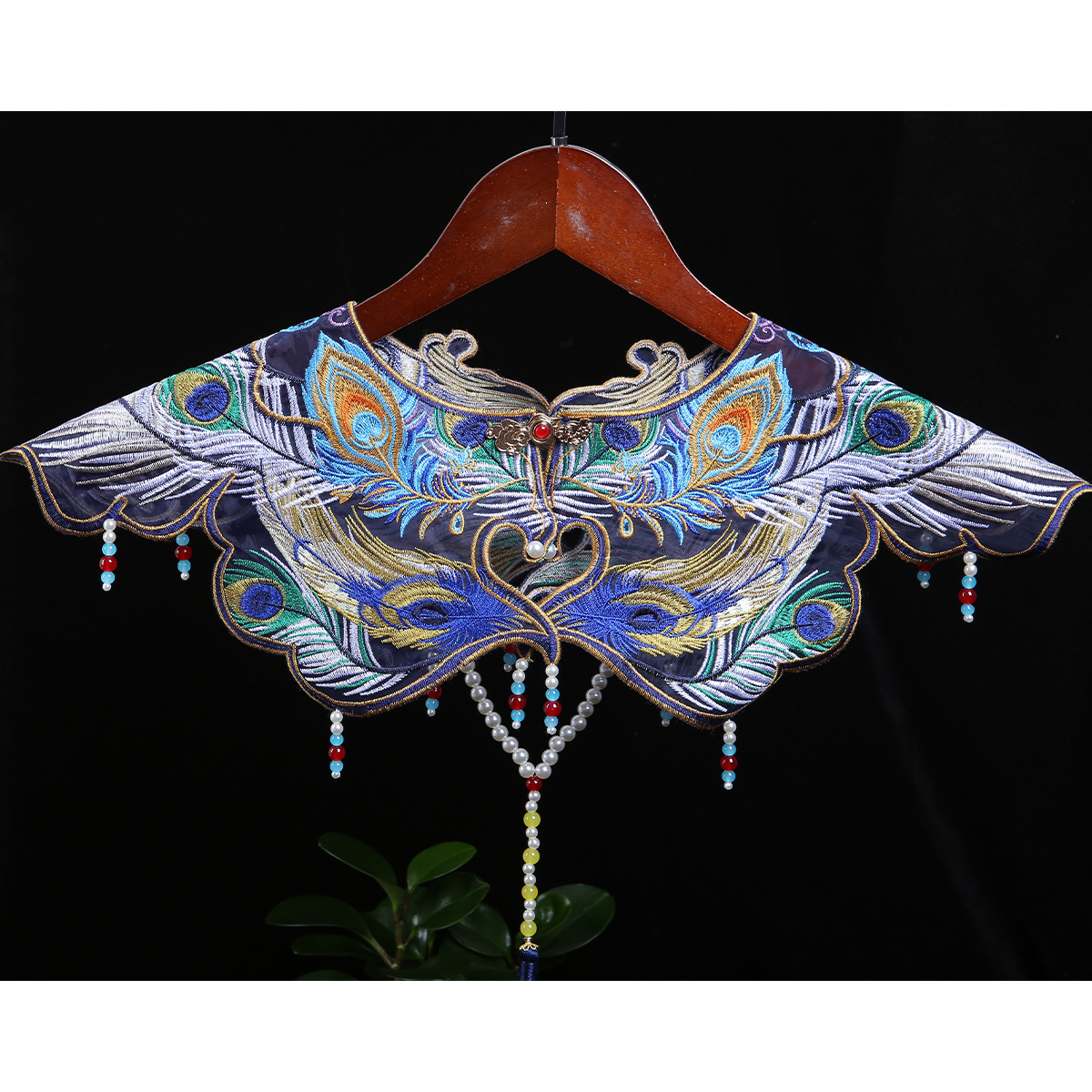 Накидка-шаль Ханьфу для студентов, новая юбка в китайском стиле с вырезом «лошадиная голова», шаль Ханьфу с вышитым фальшивым воротником, синяя накидка-шаль «облако» с перьями павлина.
