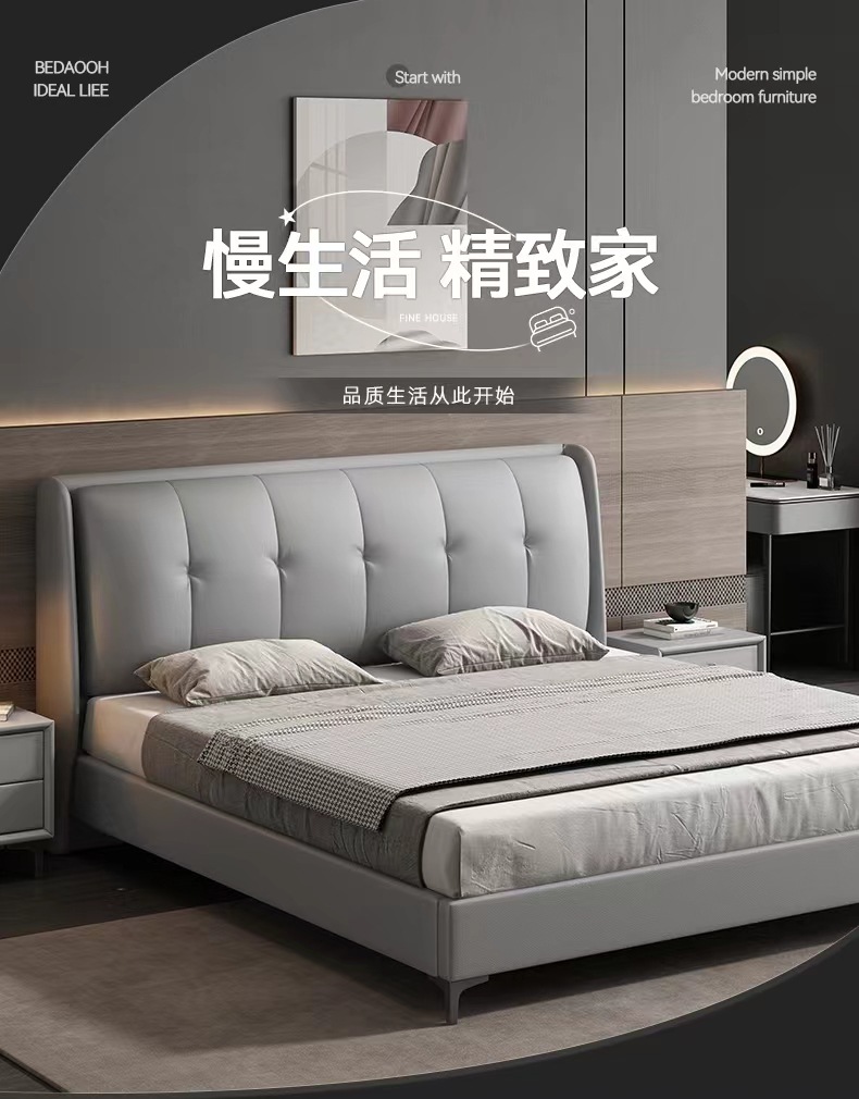 Ветер-ретро 1,5 м кожаная кровать французская сплошная мягкая сумка