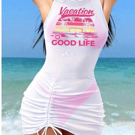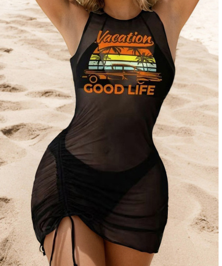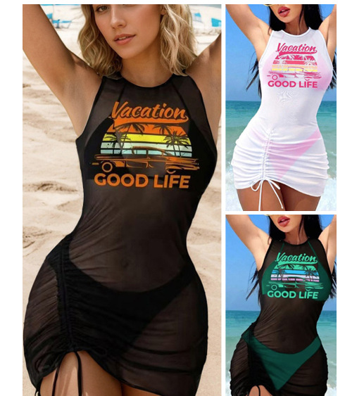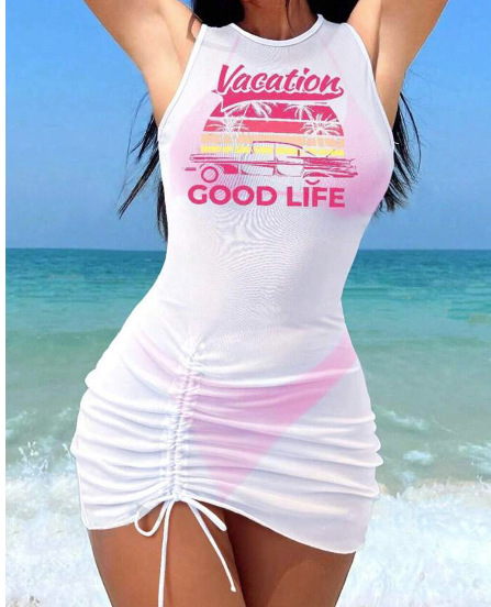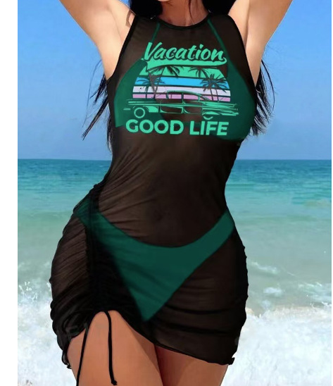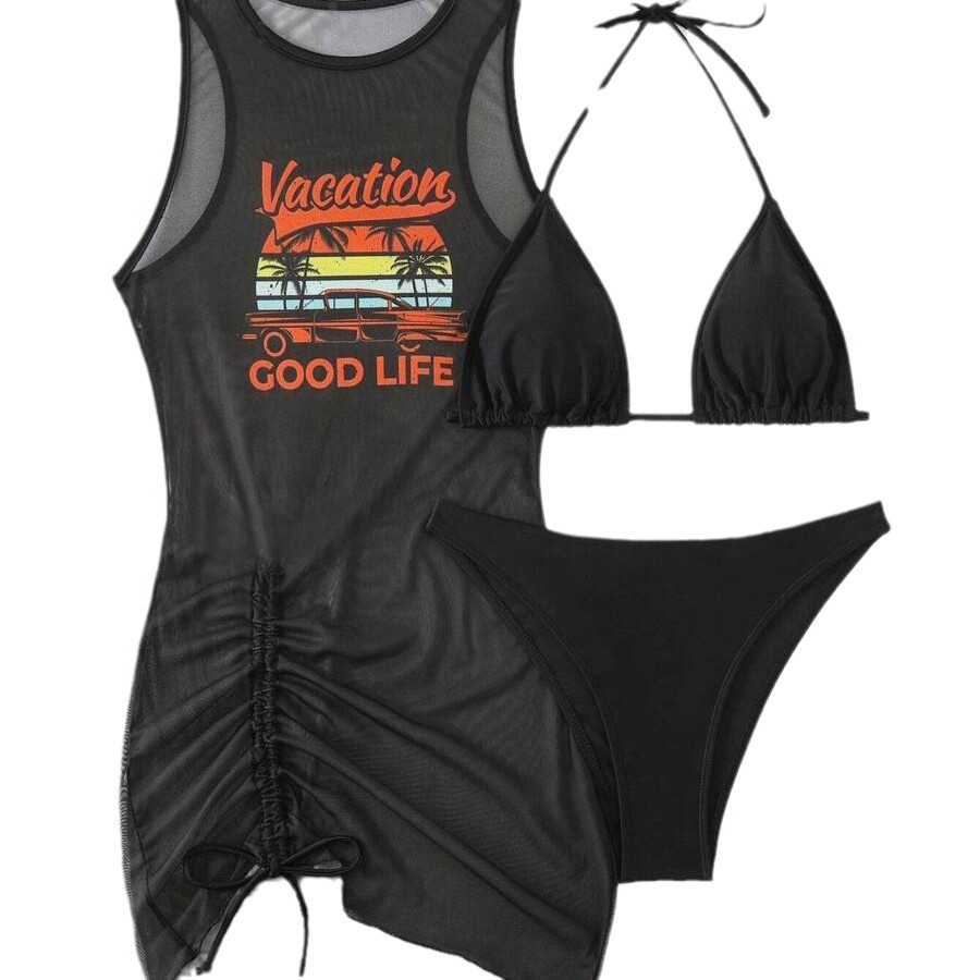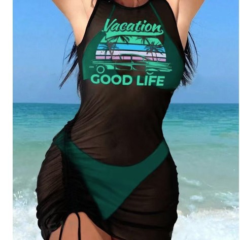 Новый европейско-американский модный купальник-тройка 2026 года с накидкой, женственный принт для пляжа