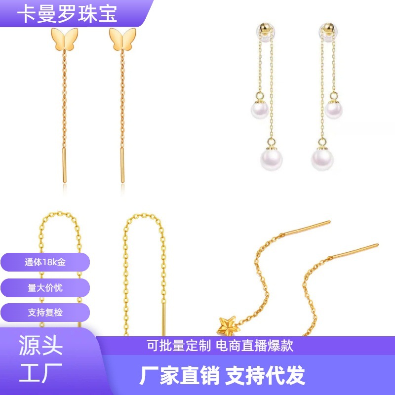Ювелирные изделия Kamanluo, 18-каратное золото, проволока для ушей AU750, цвет золота, легкий роскошный дизайн, простые универсальные серьги-проволочные серьги, оптовая продажа.