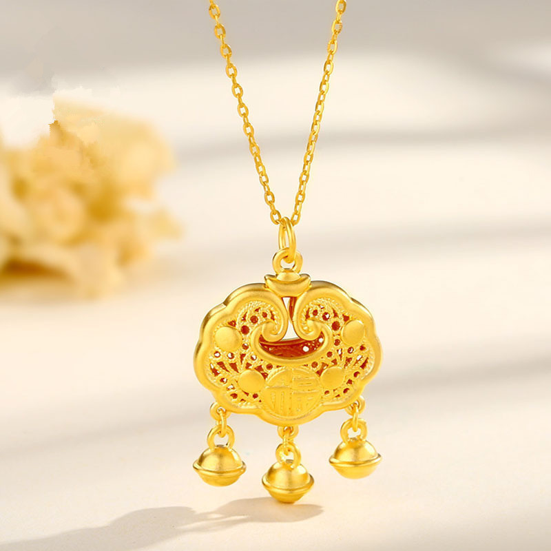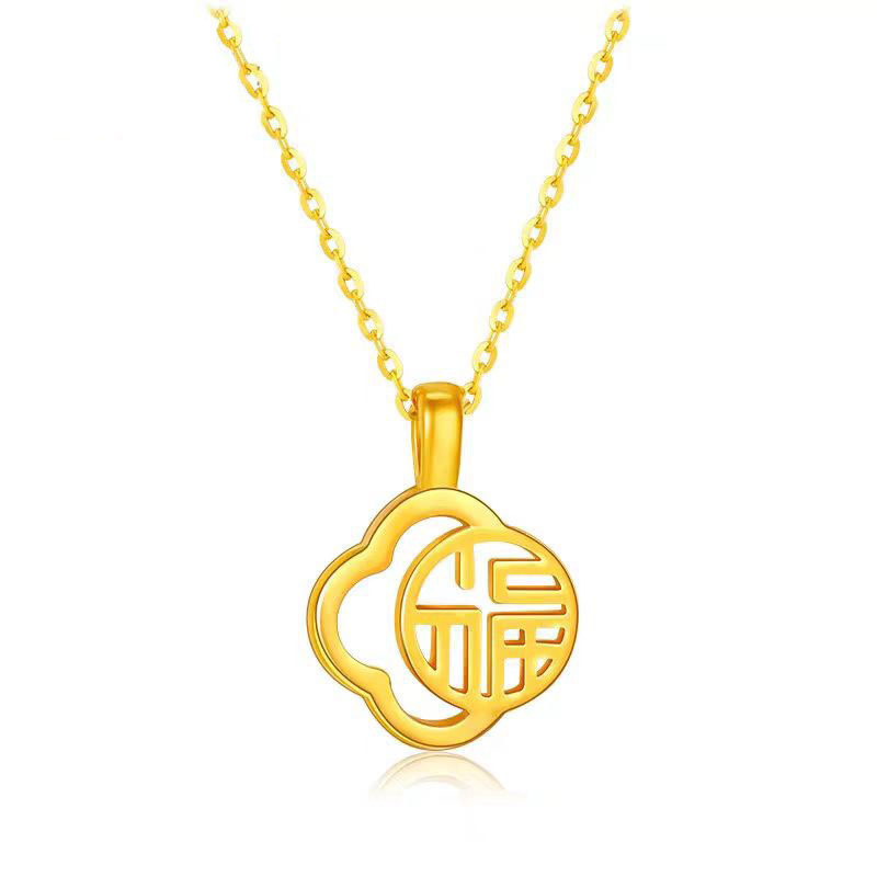 Подвеска Shuibeijin из чистого золота 999 пробы, 3D жесткая золотая цепочка на ключицу, трендовый подарочный набор для косметической индустрии, популярный предмет в прямом эфире