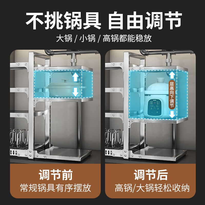 Стеллаж для хранения кастрюль из нержавеющей стали 304, кухонный шкаф, многослойная полка для кастрюль, многофункциональная бытовая полка для хранения раковины