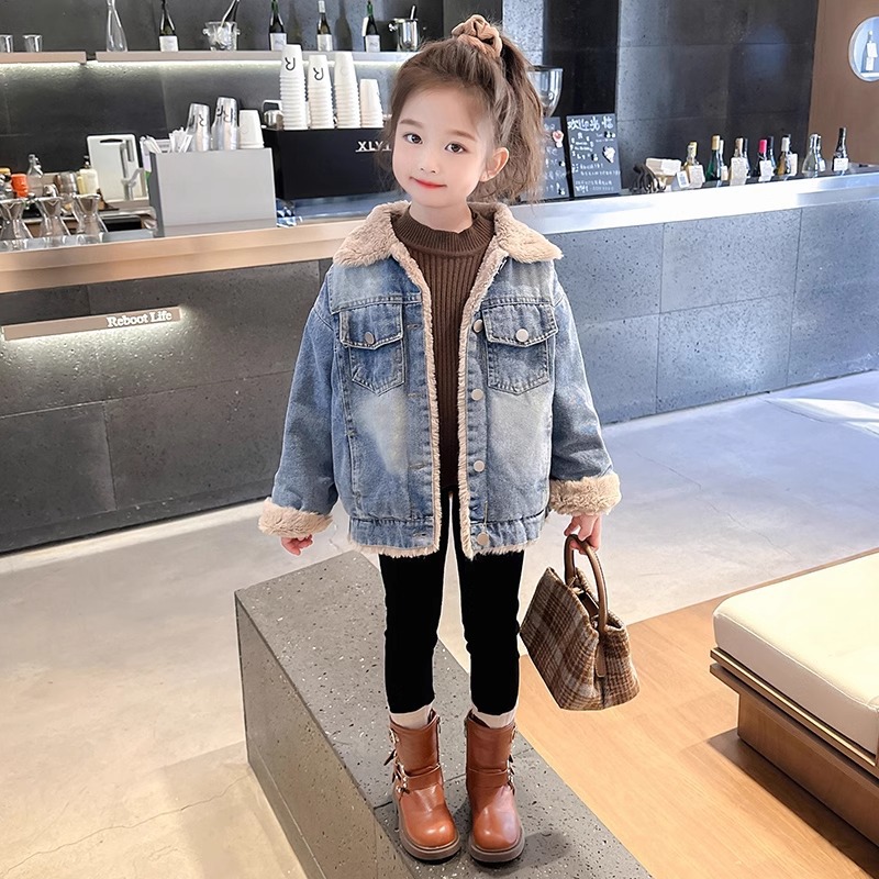Девочка джинсовая пуховая куртка осень-зима 2024 новая иностранная маленькая девочка малышка корейская одежда детская зимняя одежда