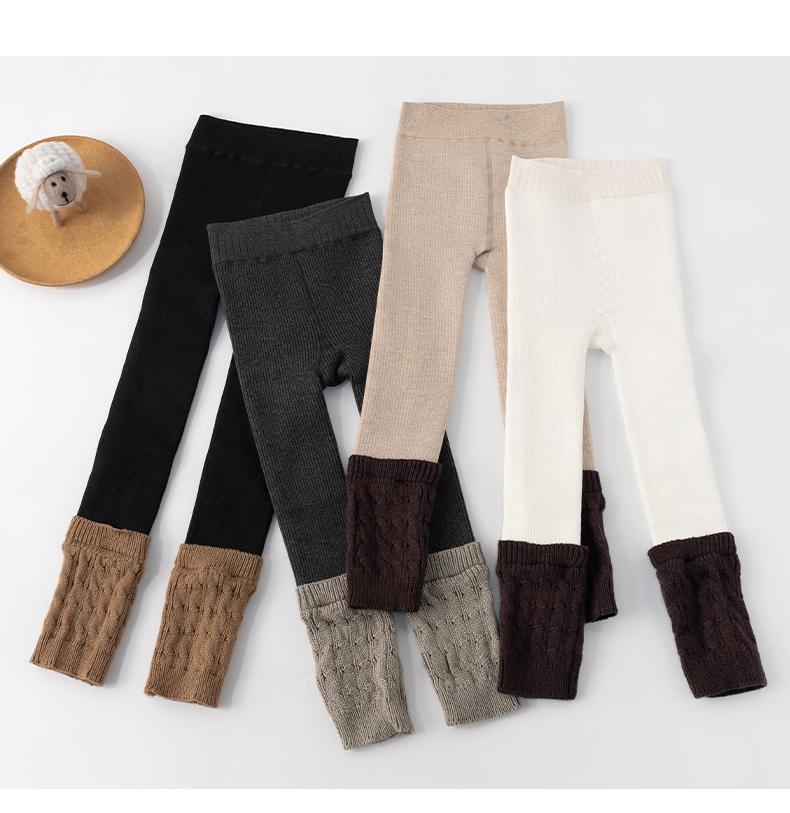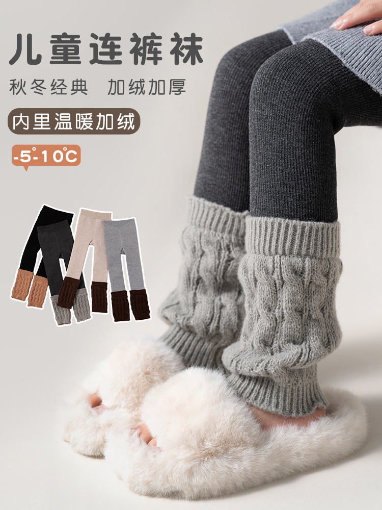 Леггинсы для девочек зимние толстые сшитые носки трикотажные теплые шерстяные ножки нагрудные носки плюс бархатные детские колготки