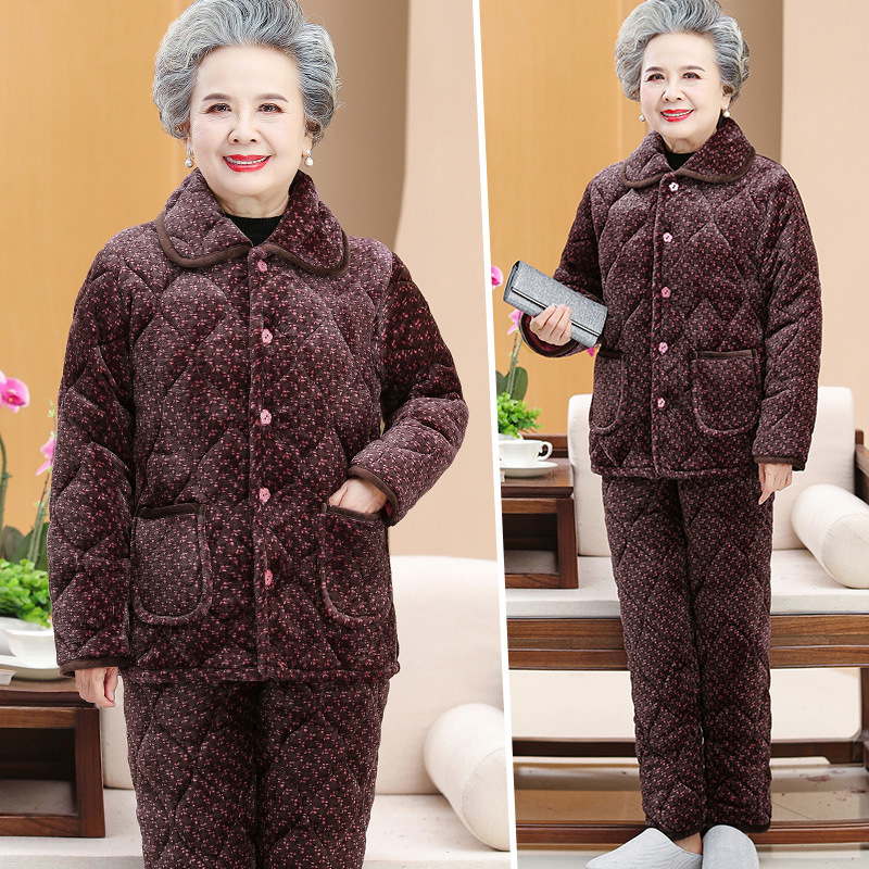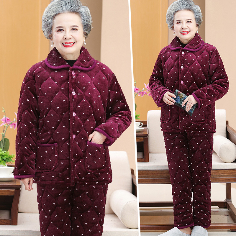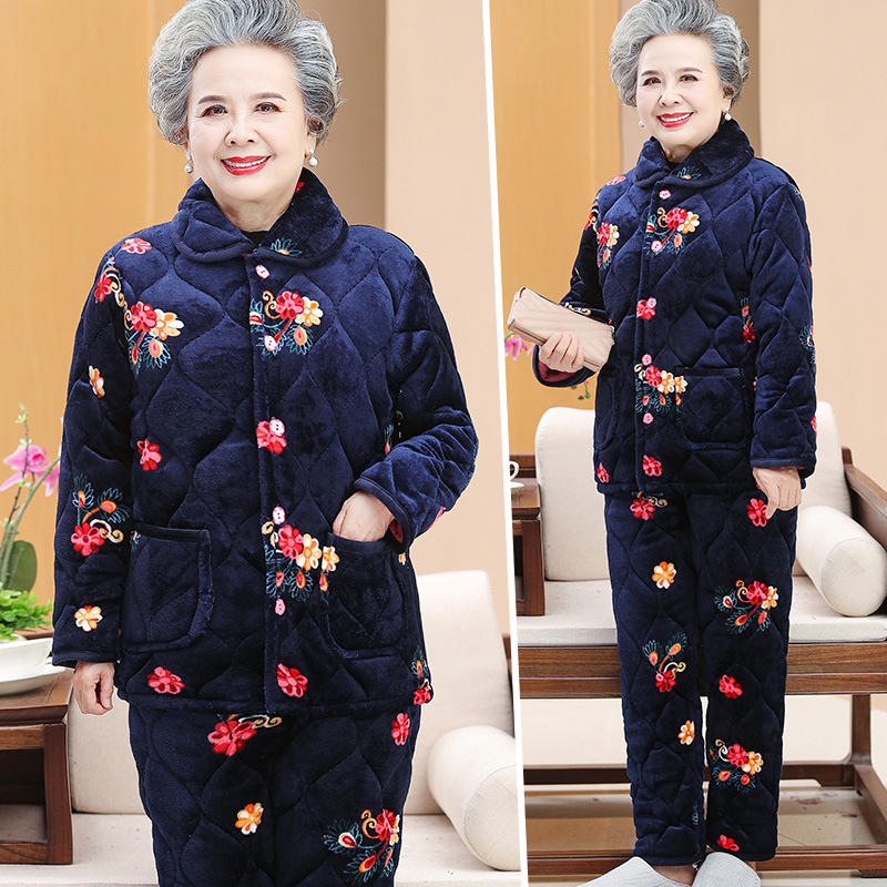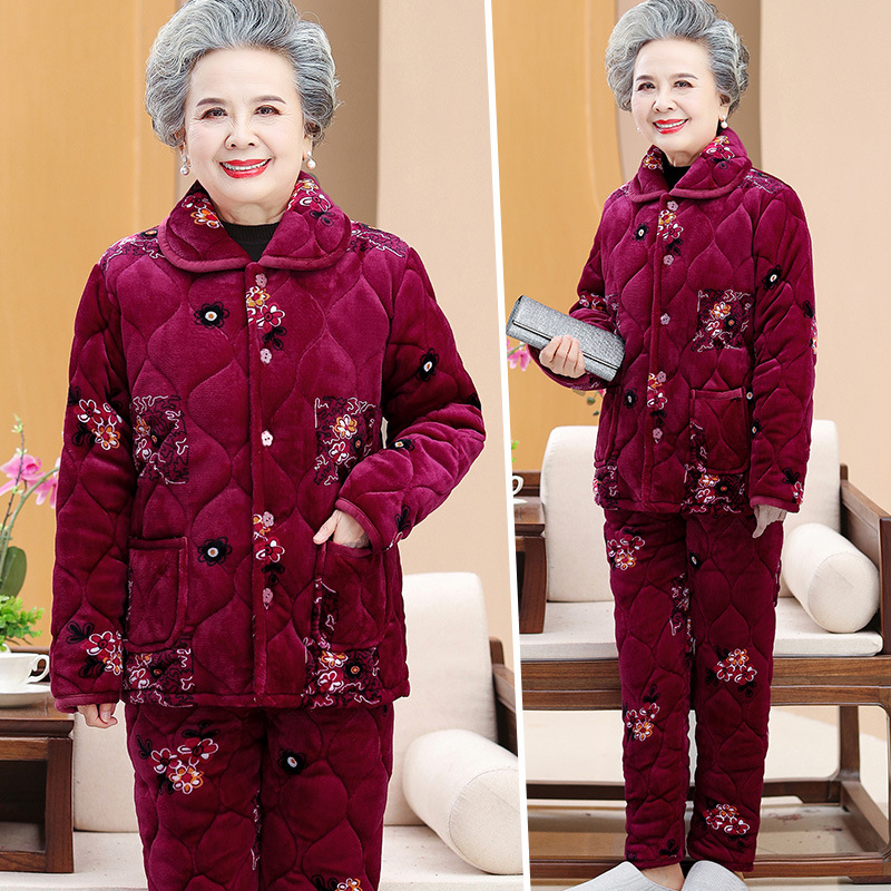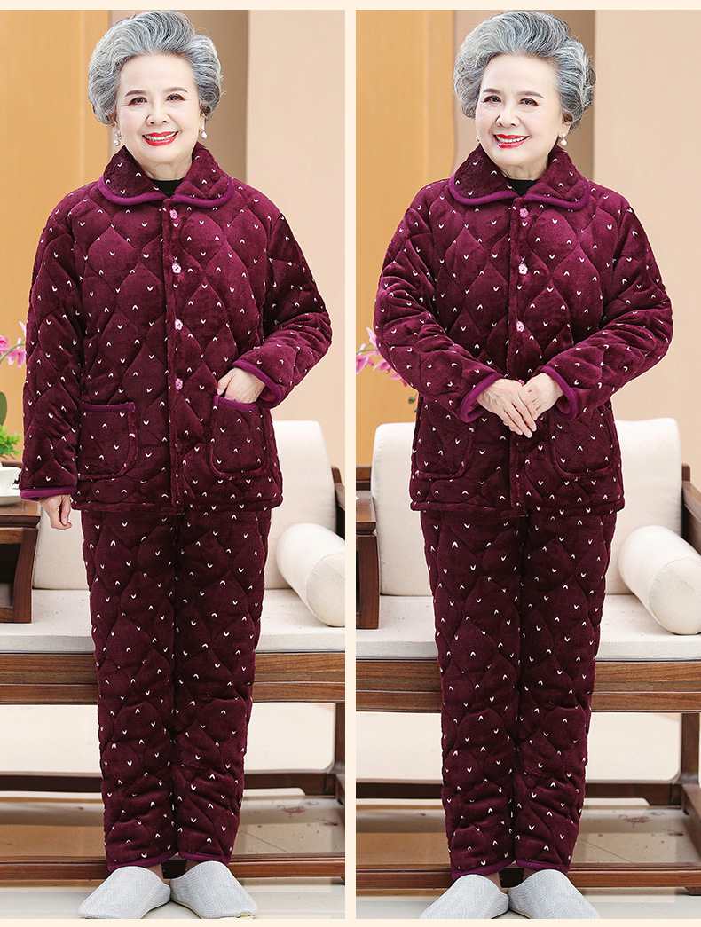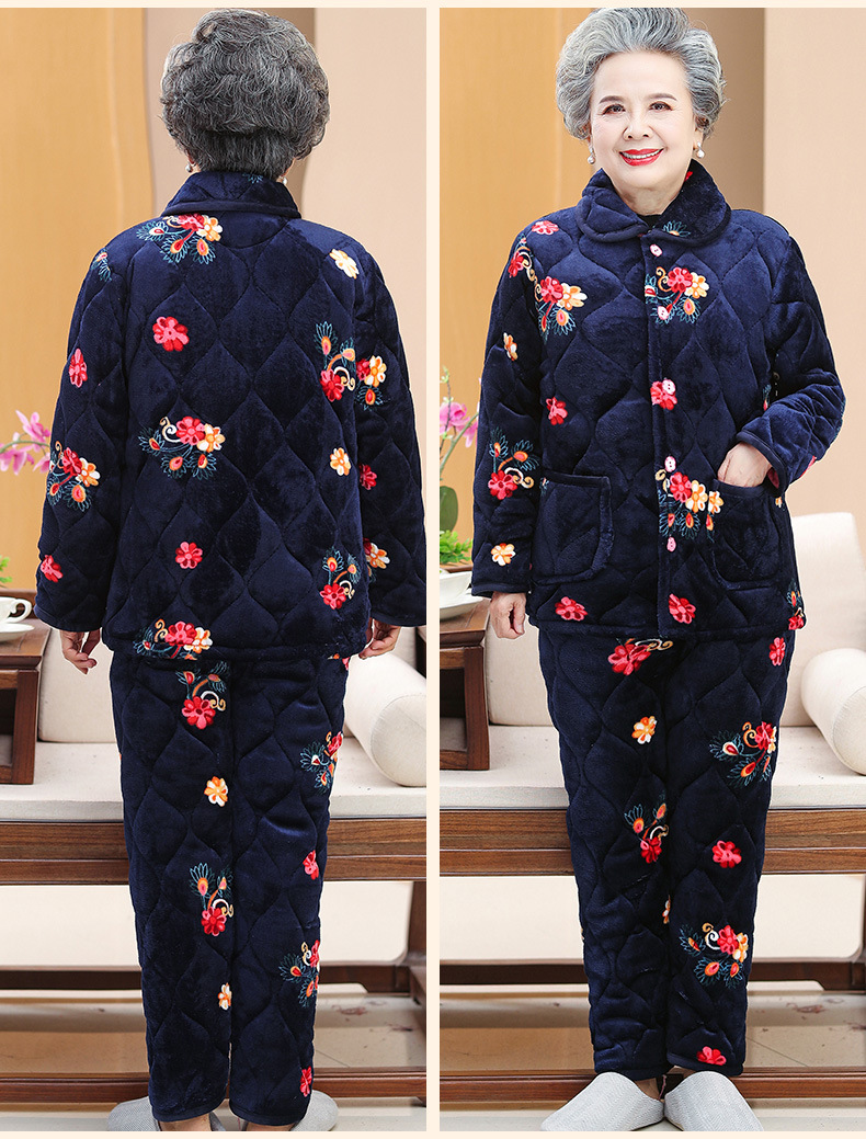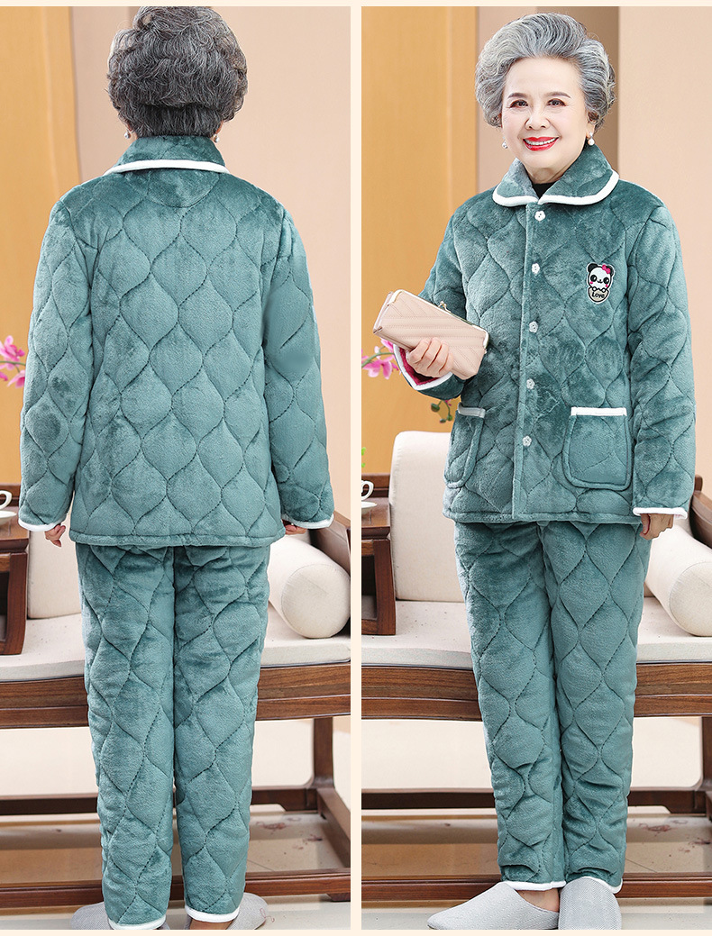 Среднего и пожилого возраста зимняя одежда бабушки хлопчатобумажная пижама мамы термобелье набор домашней одежды коралловый бархат утолщение