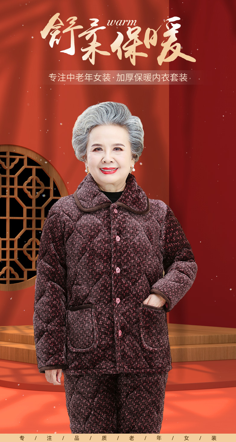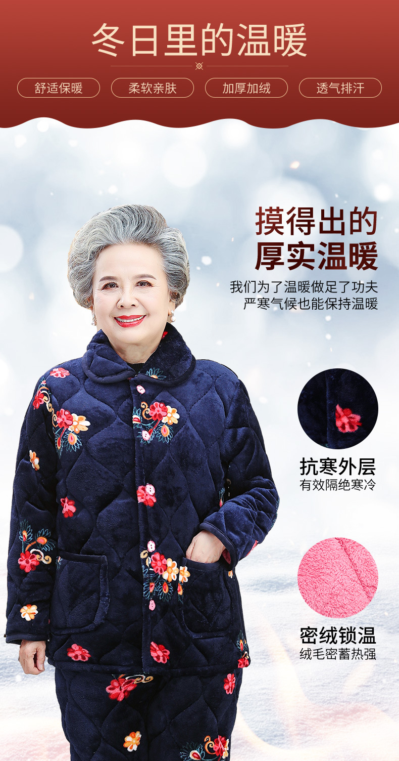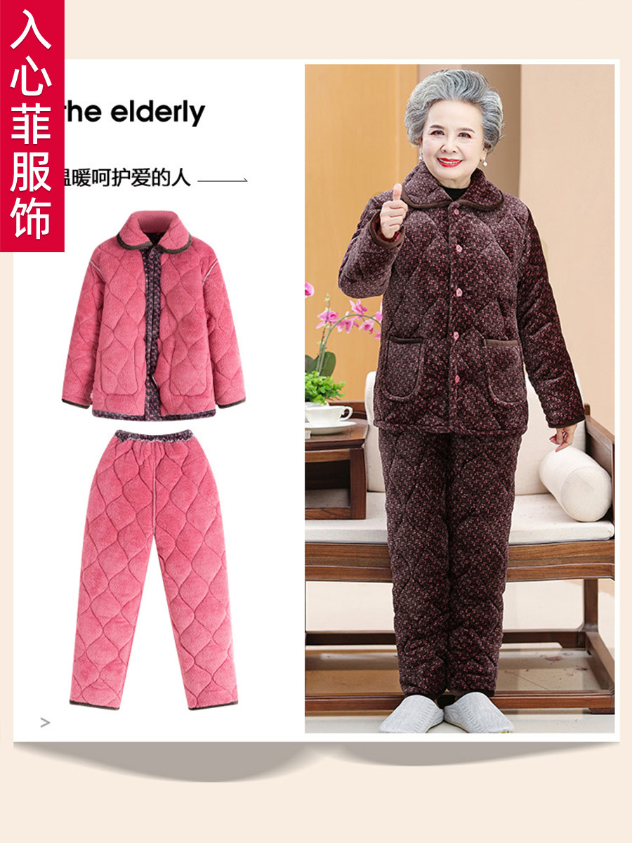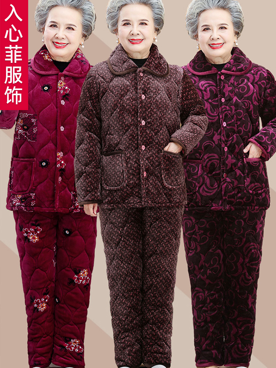 Среднего и пожилого возраста зимняя одежда бабушки хлопчатобумажная пижама мамы термобелье набор домашней одежды коралловый бархат утолщение