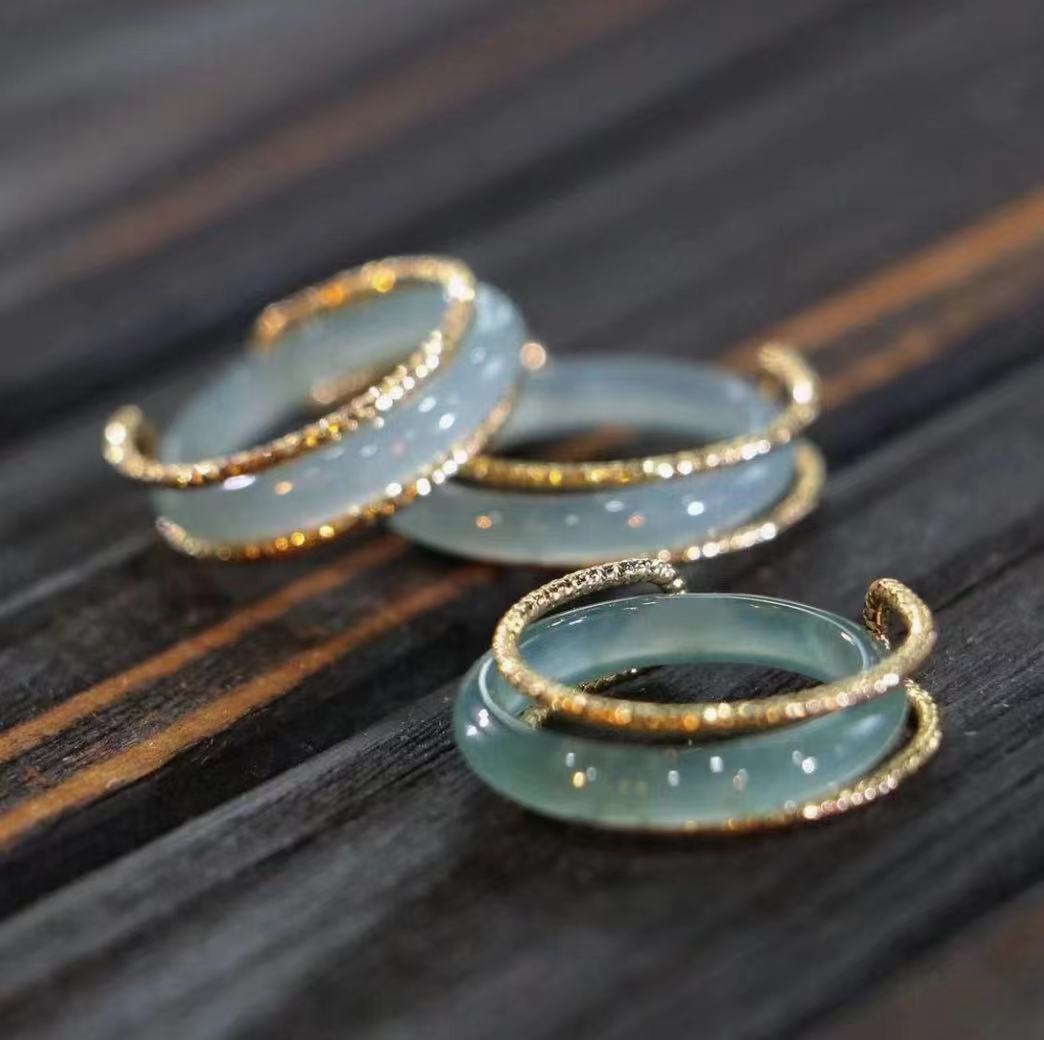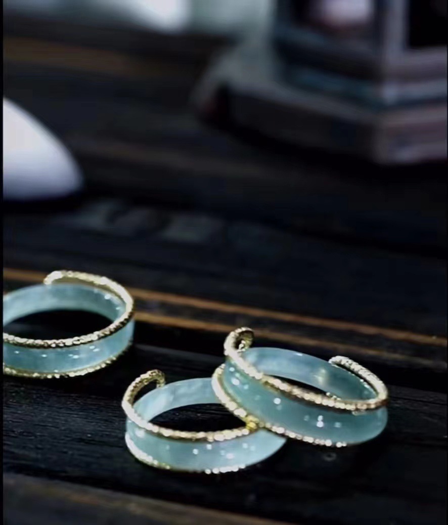 Гао Дин Изумрудная инкрустация кольцо новый кольцо натуральный груз синяя вода высокая ледяная пара нефритовое кольцо хвост