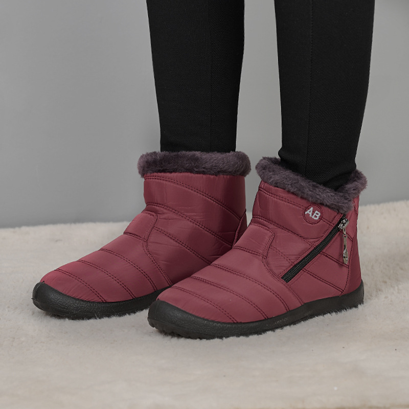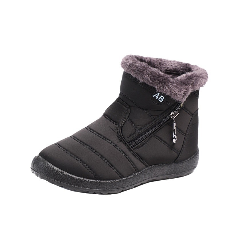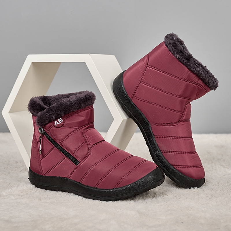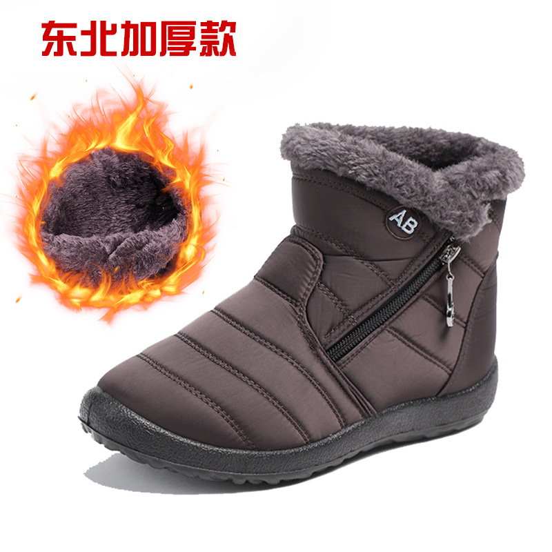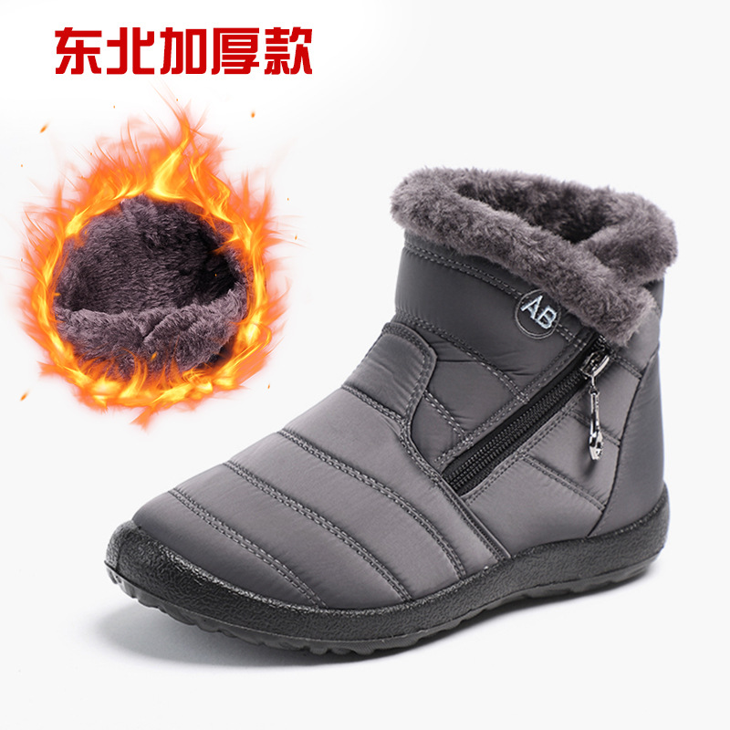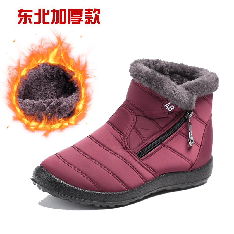 冬季新款高帮休闲棉鞋跨境大码圆头拉链低筒加绒棉靴防水雪地女靴