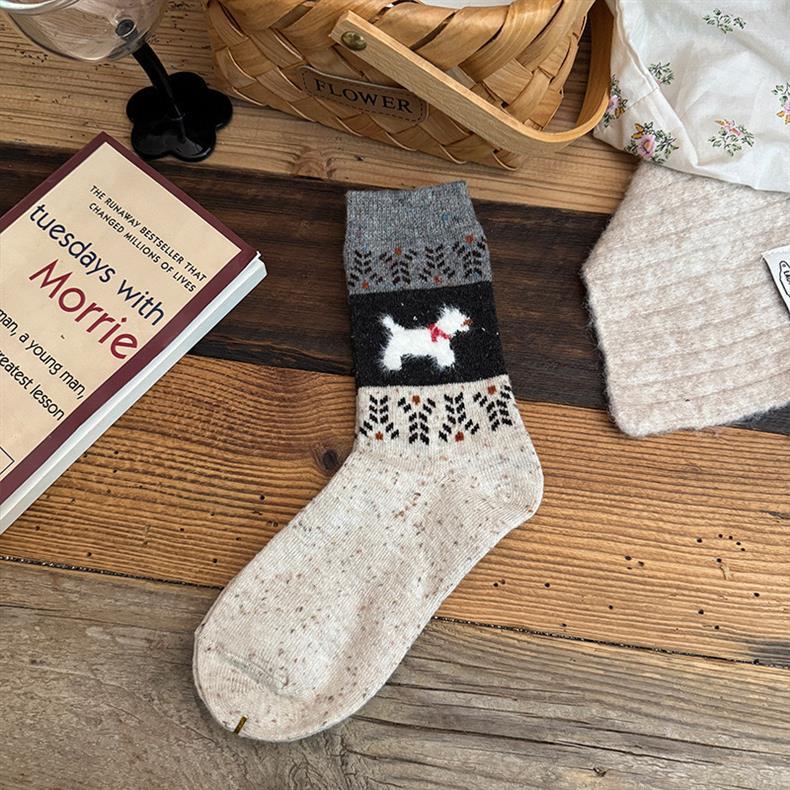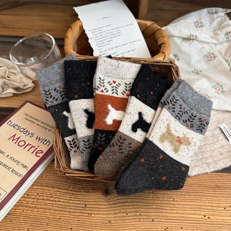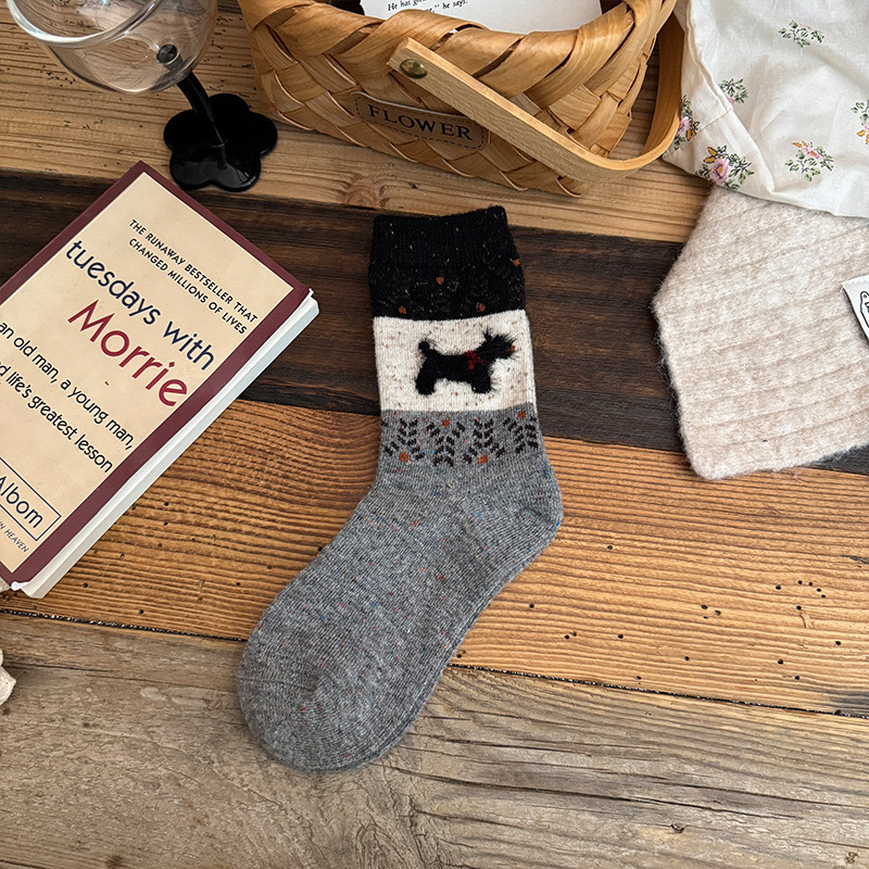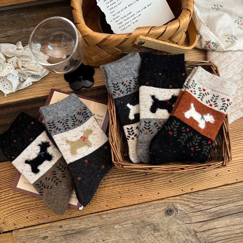 Симпатичные мультяшные щенки, сшитые старинные носки для детей, толстые осенние и зимние толстые, теплые дикие академические носки