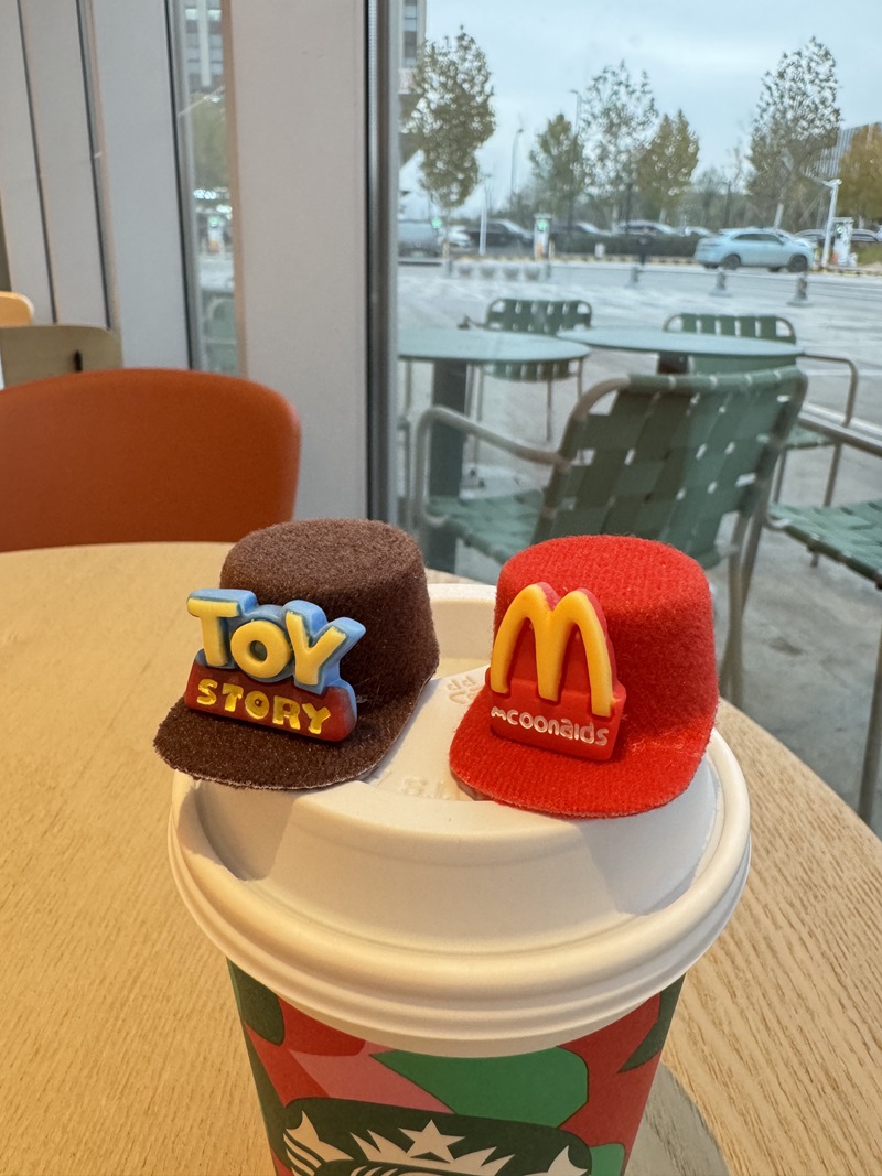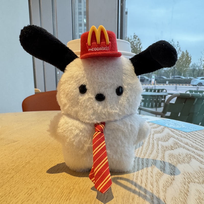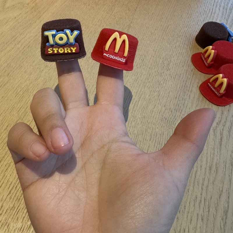 Красная флокированная шляпа McDonald; Блокированная шляпа с коричневой игрушкой