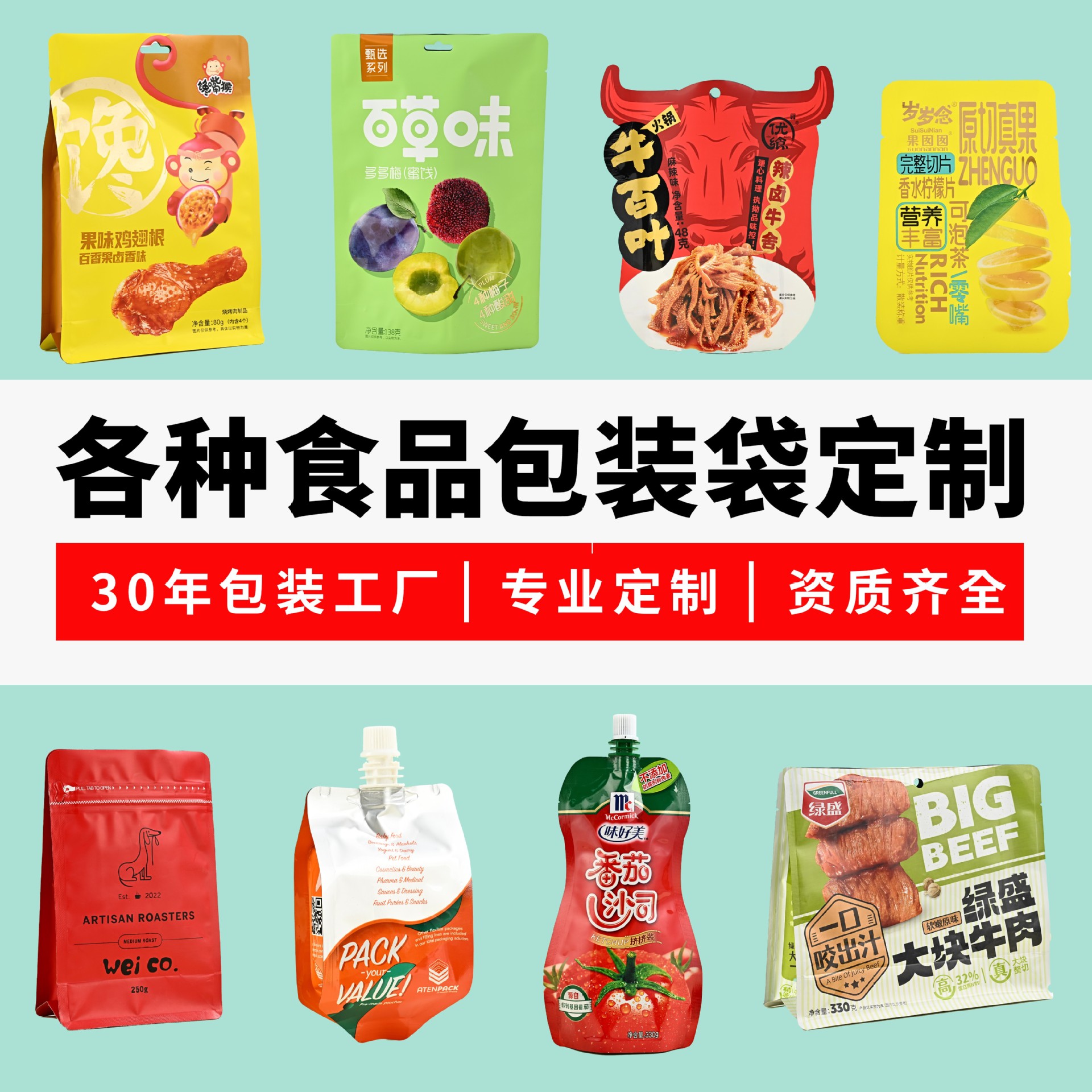 Индивидуальная упаковка для пищевых продуктов, пакет с носиком, пакет с подставкой, жидкое молоко, говядина, семена дыни, приправы, пакет с застежкой-молнией для традиционной китайской медицины.