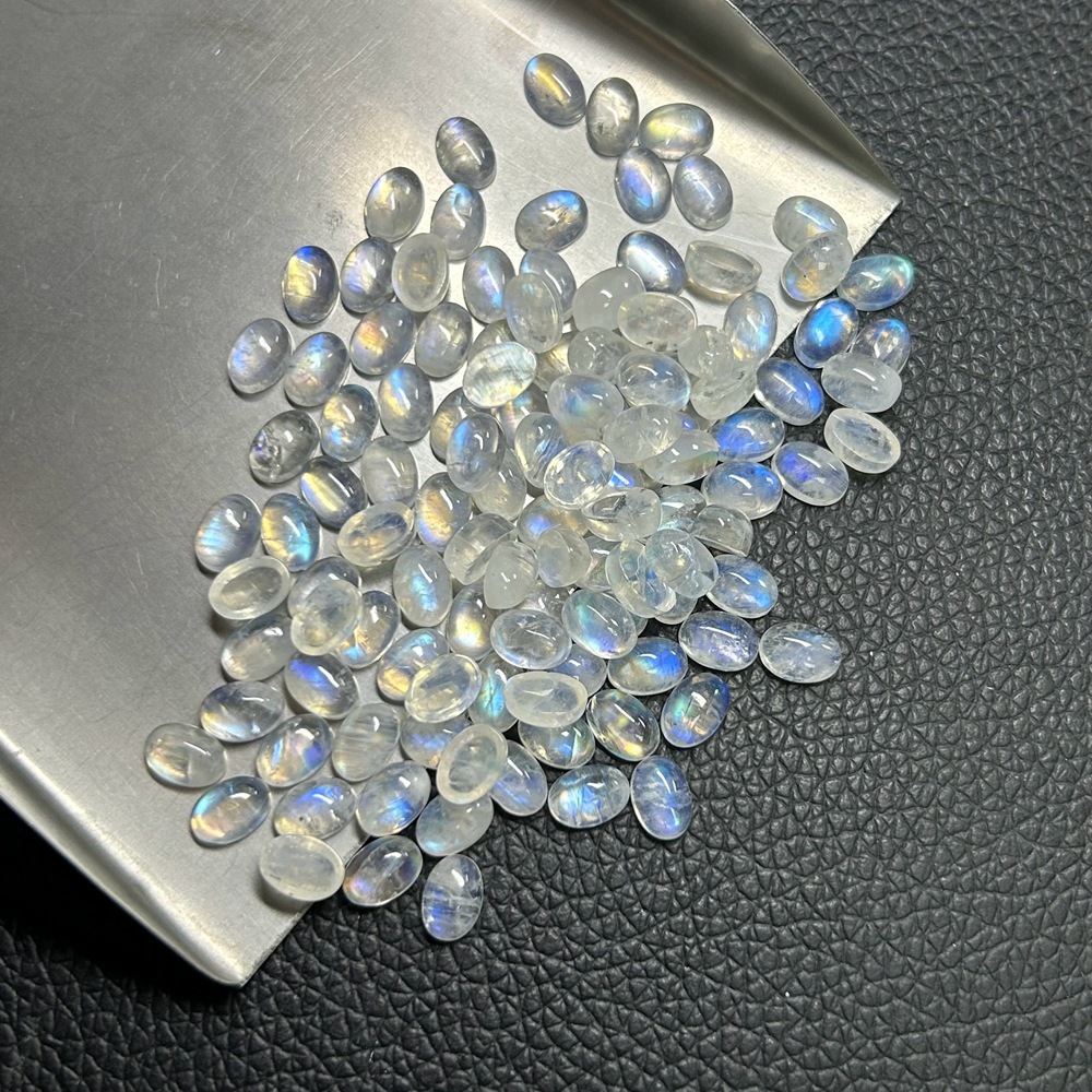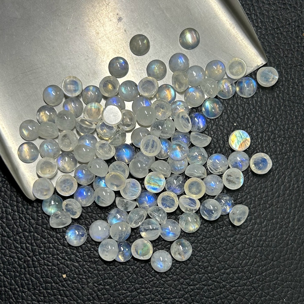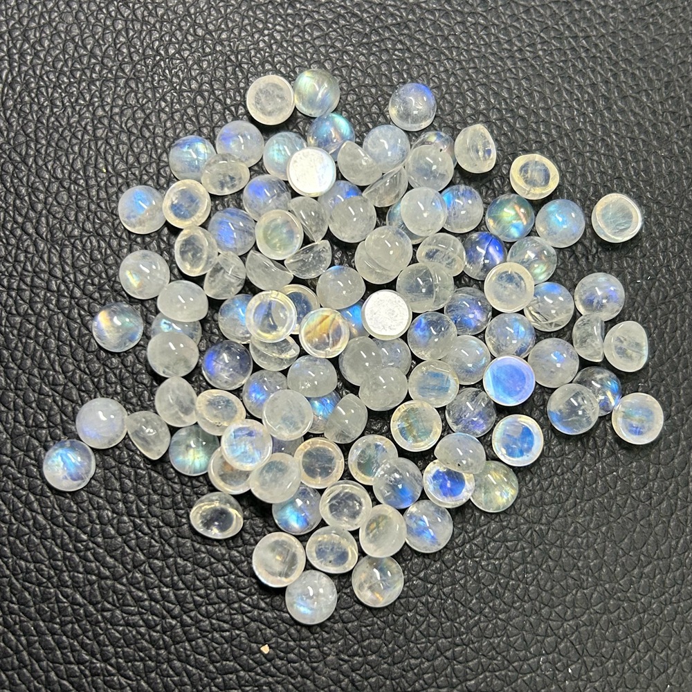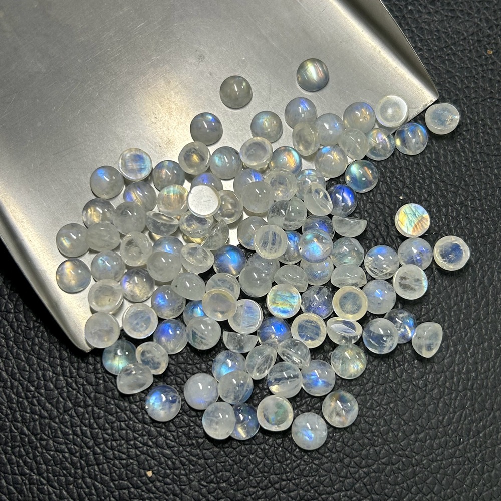 现货1.5m2m 8m圆形天然月光石旦型弧面平底素面蓝月光戒面配件DIY