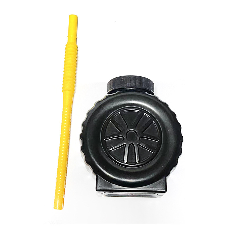 Индивидуальный пищевой чашек для напитков с трубочкой в форме колеса, изготовленный методом выдувного формования.