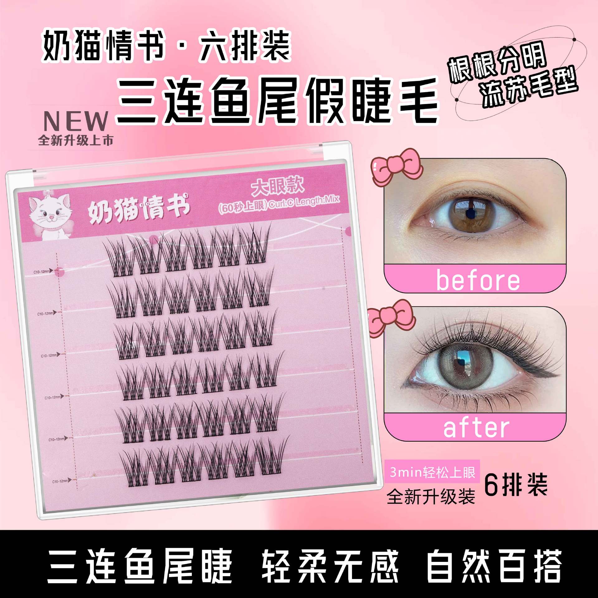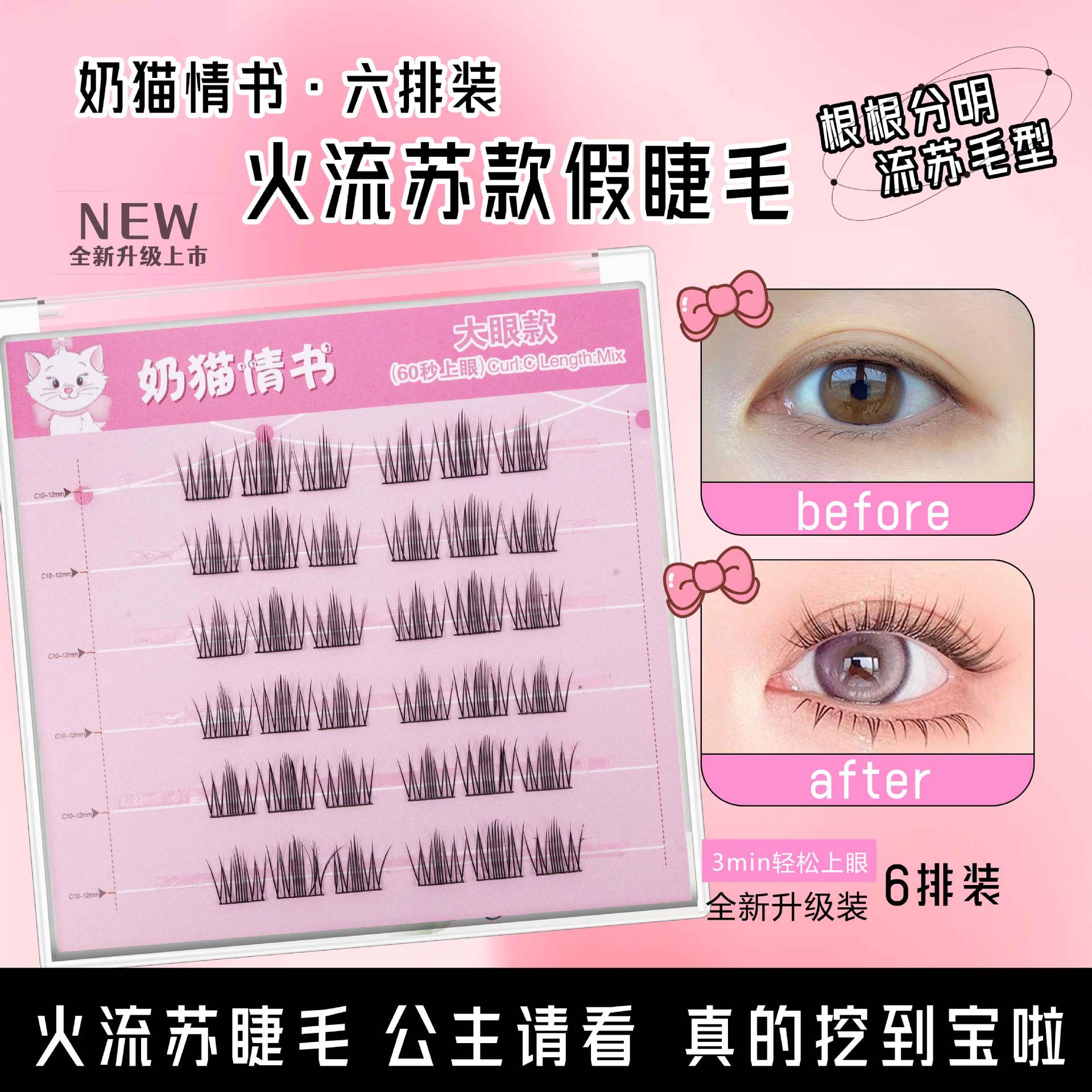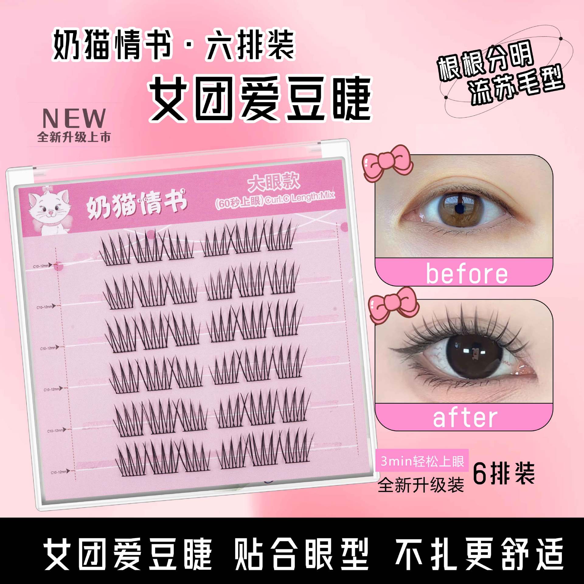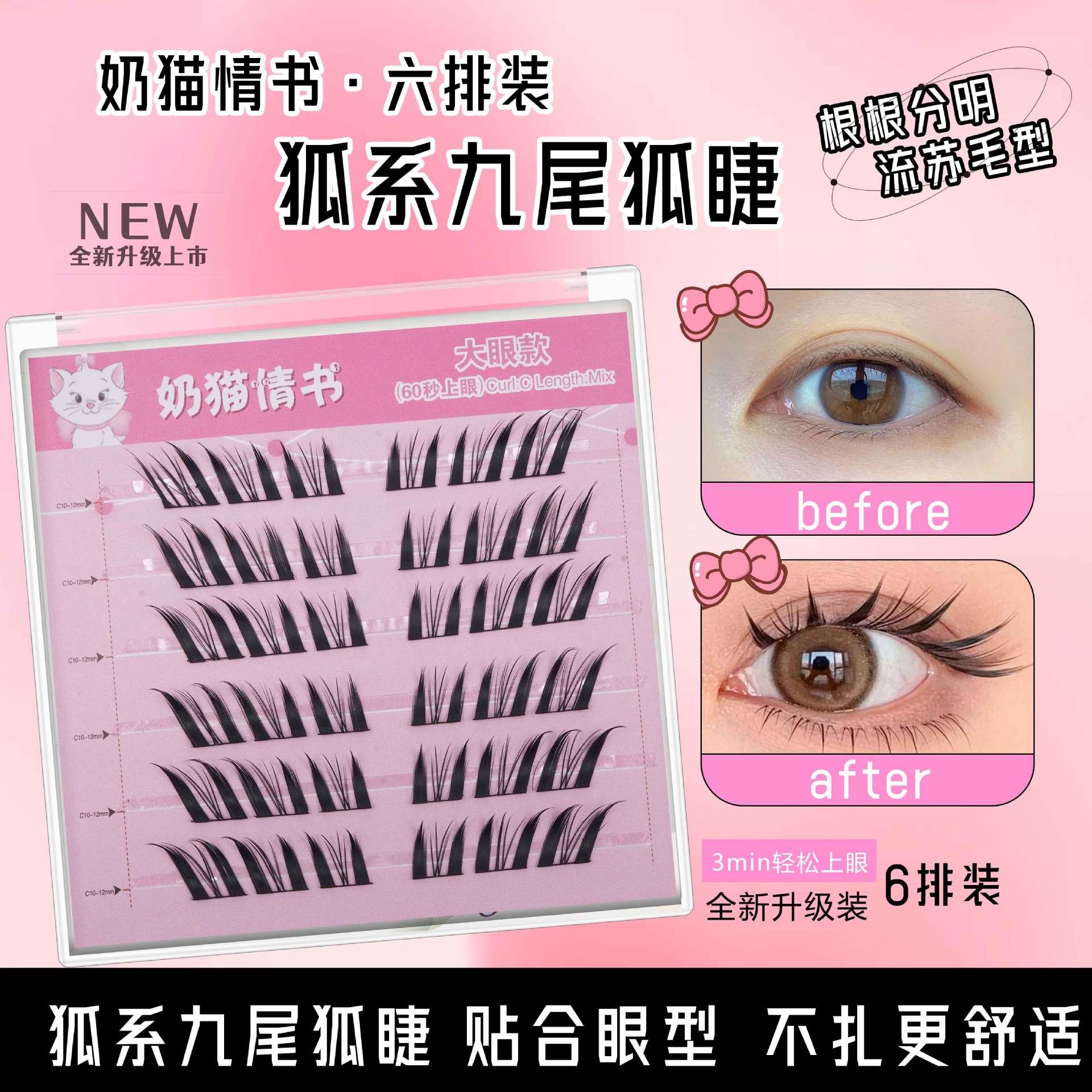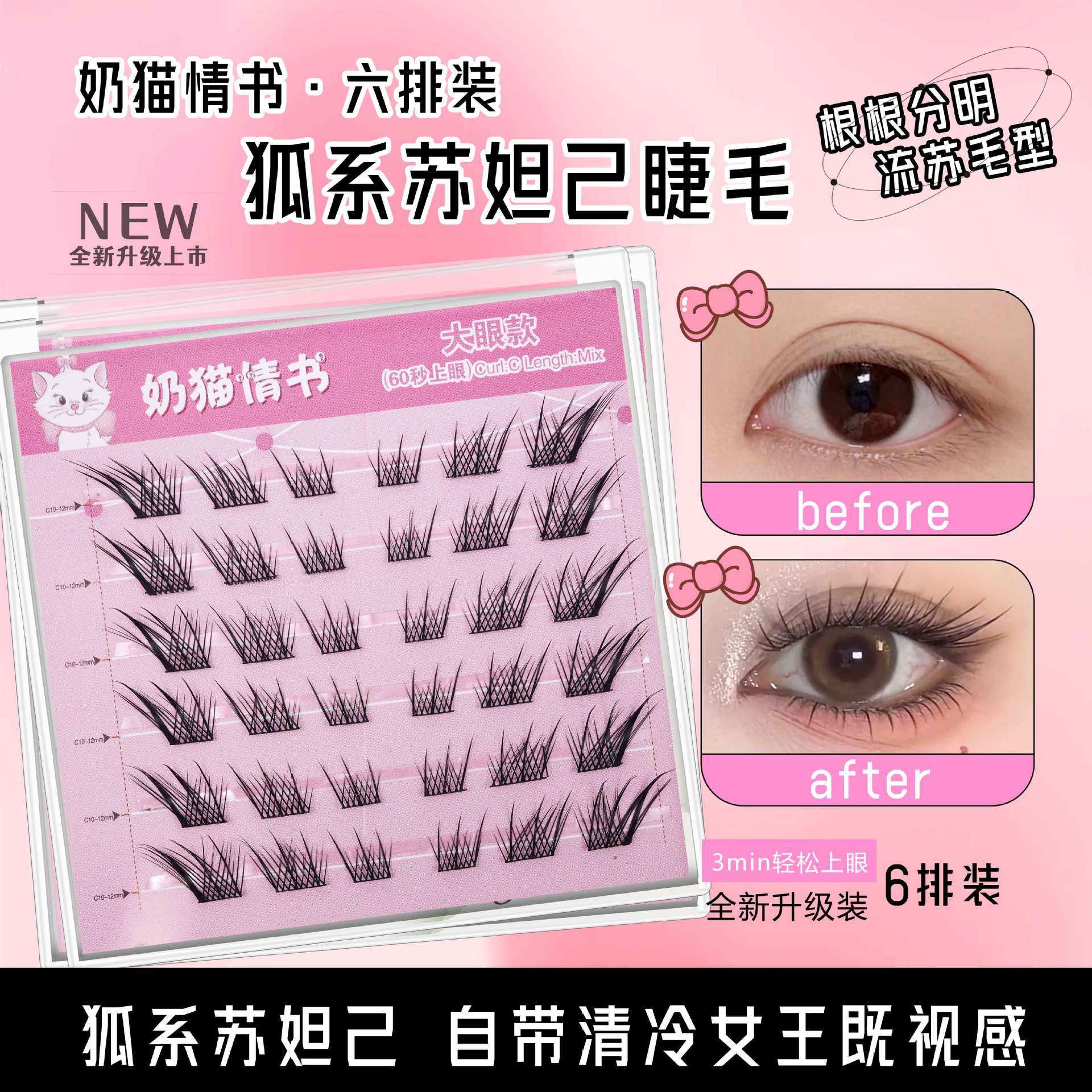 Шесть рядов накладных ресниц в стиле «лиса», популярные ресницы «Су Джи», самоклеящиеся сегментированные натуральные ресницы-пучки для нижнего века, мягкие.