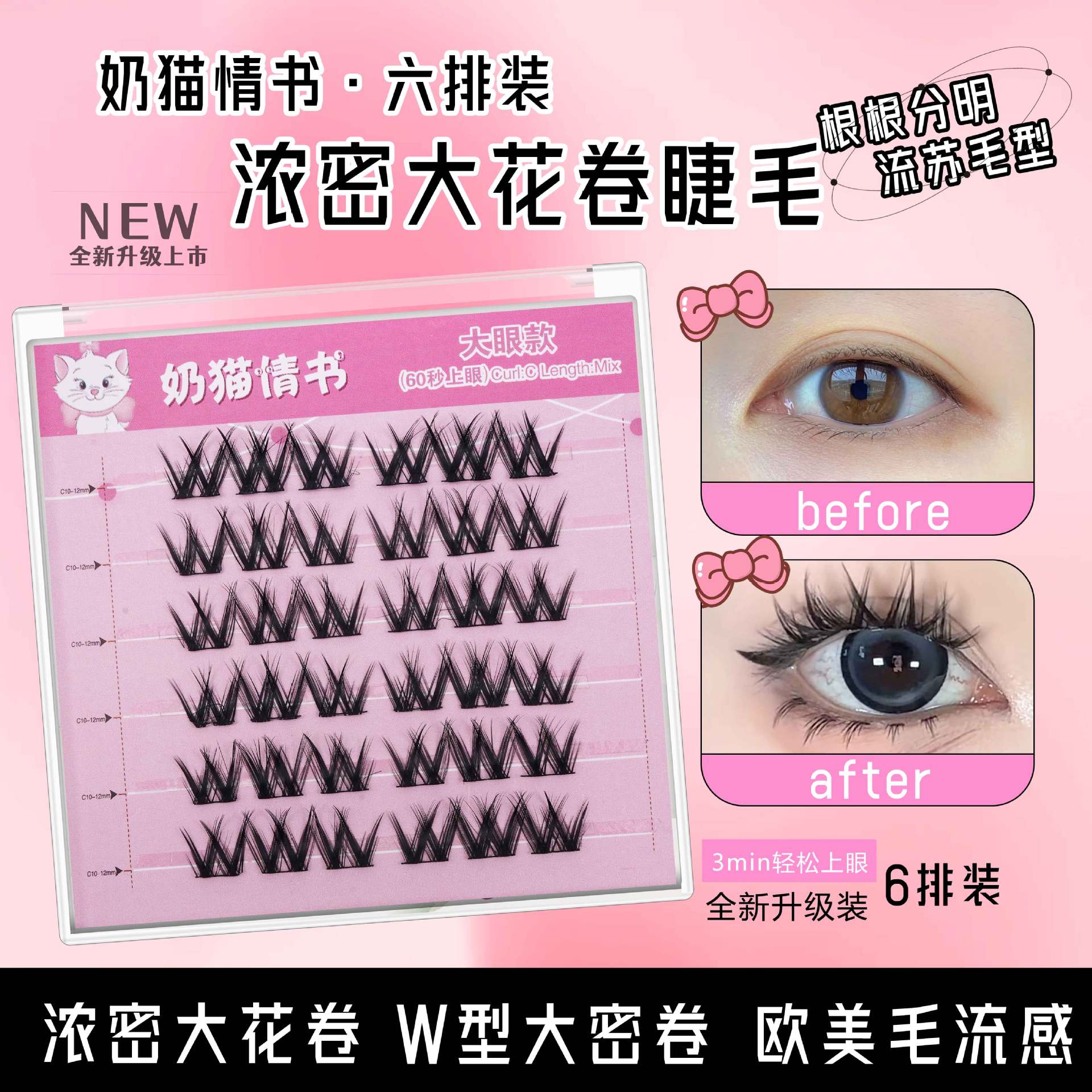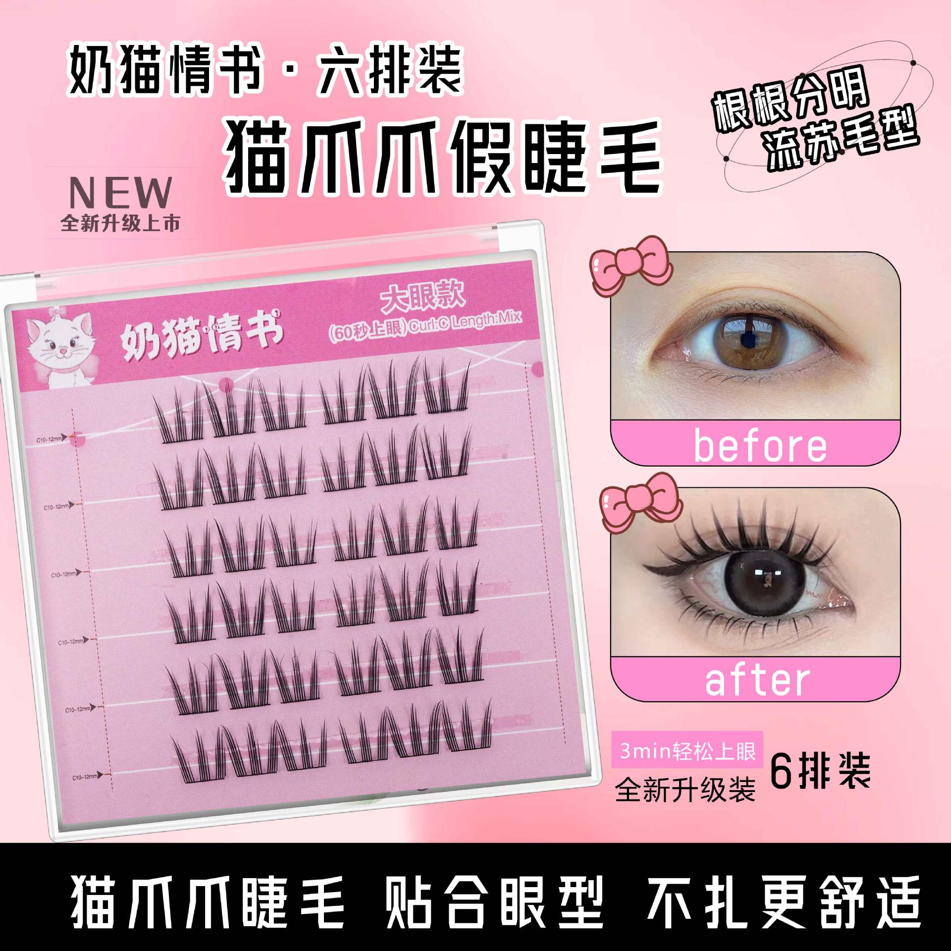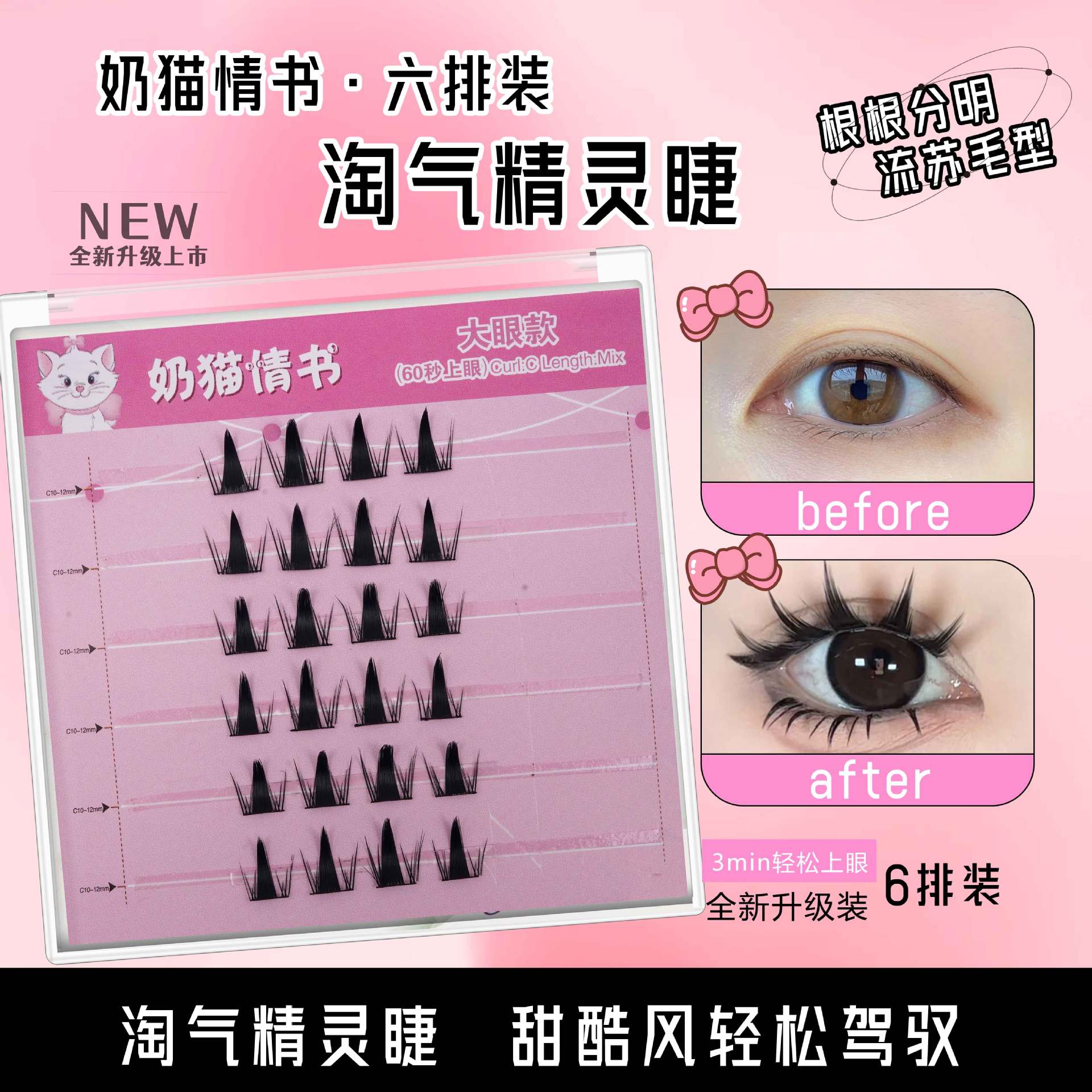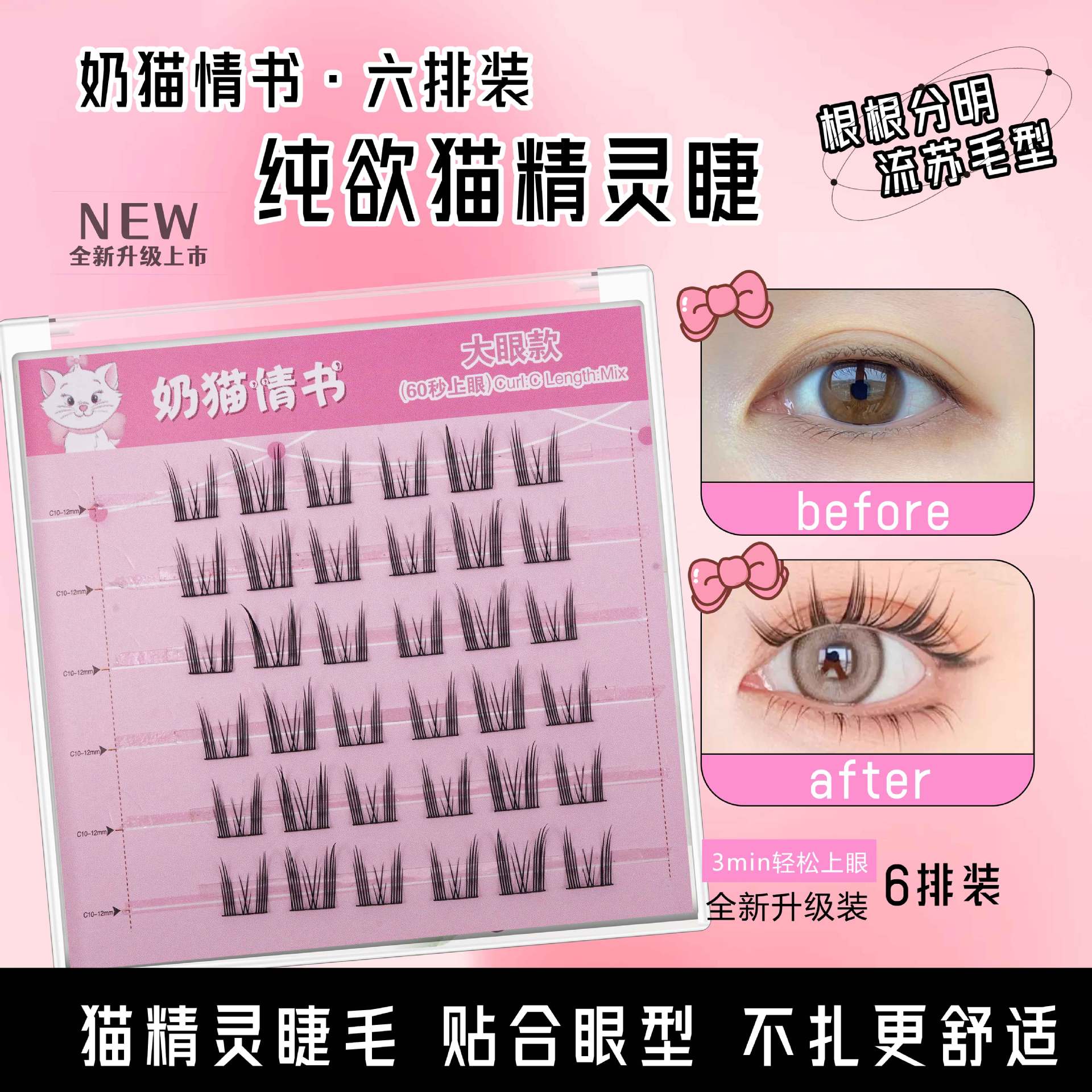 Шесть рядов накладных ресниц в стиле «лиса», популярные ресницы «Су Джи», самоклеящиеся сегментированные натуральные ресницы-пучки для нижнего века, мягкие.