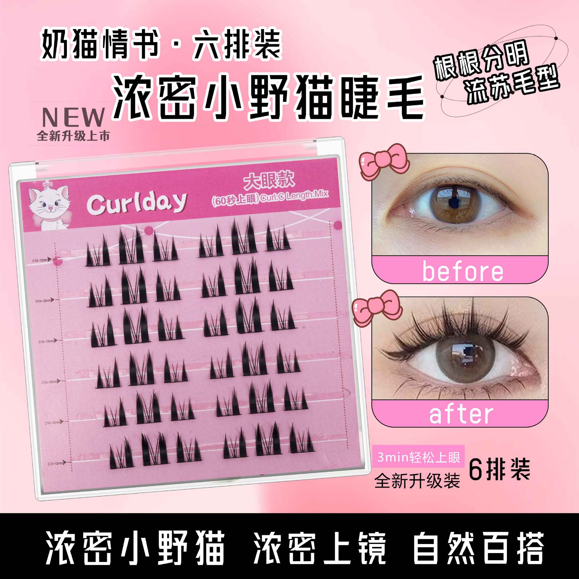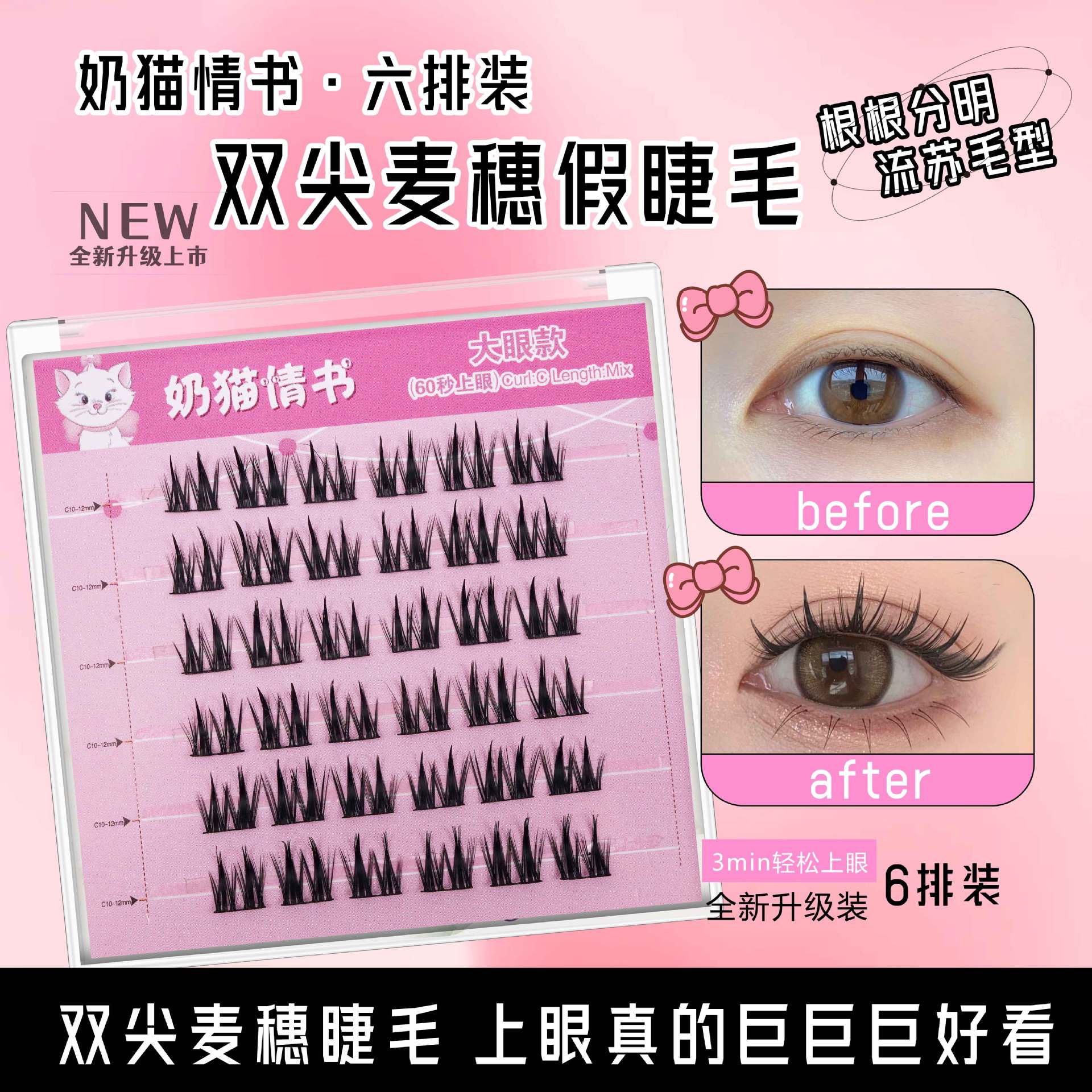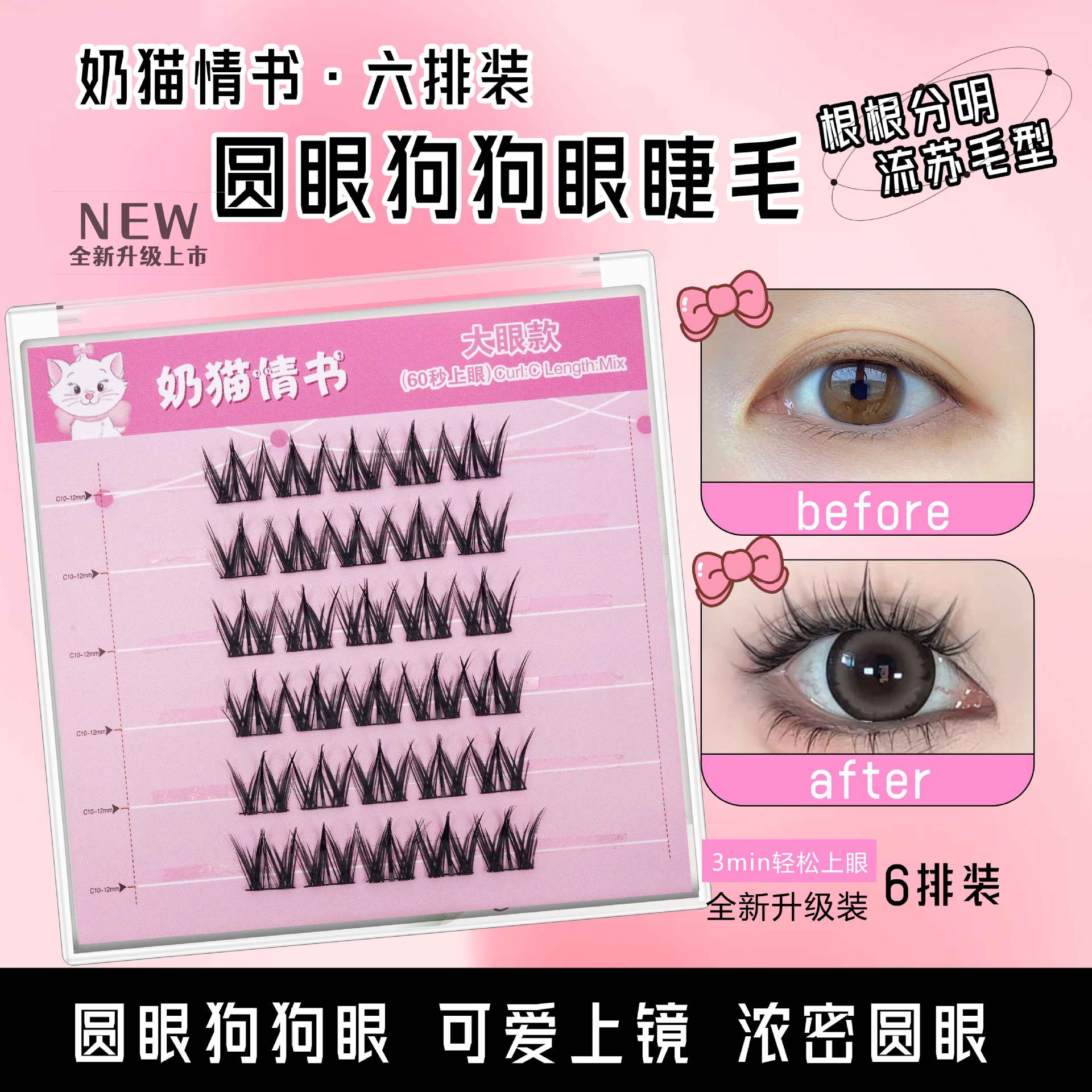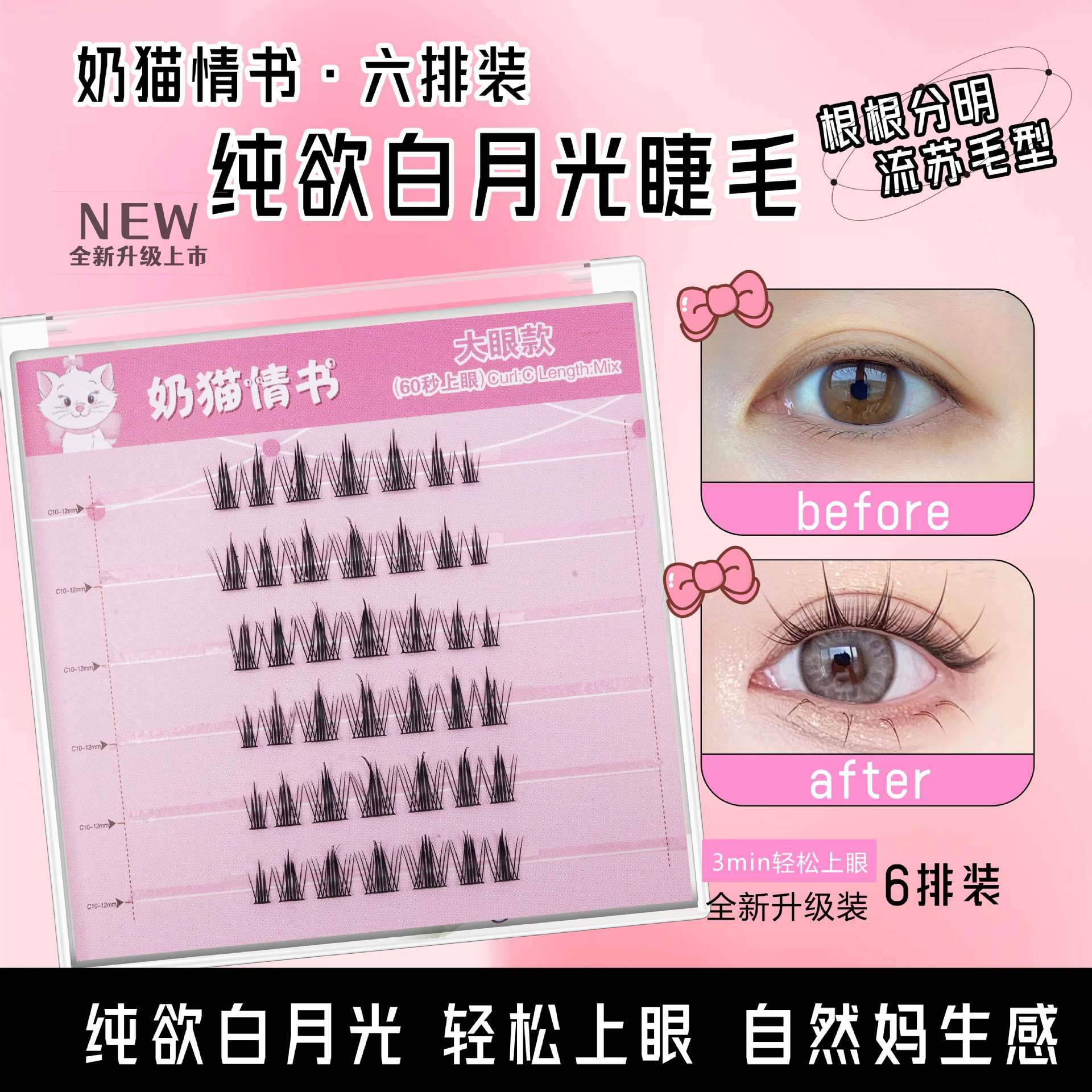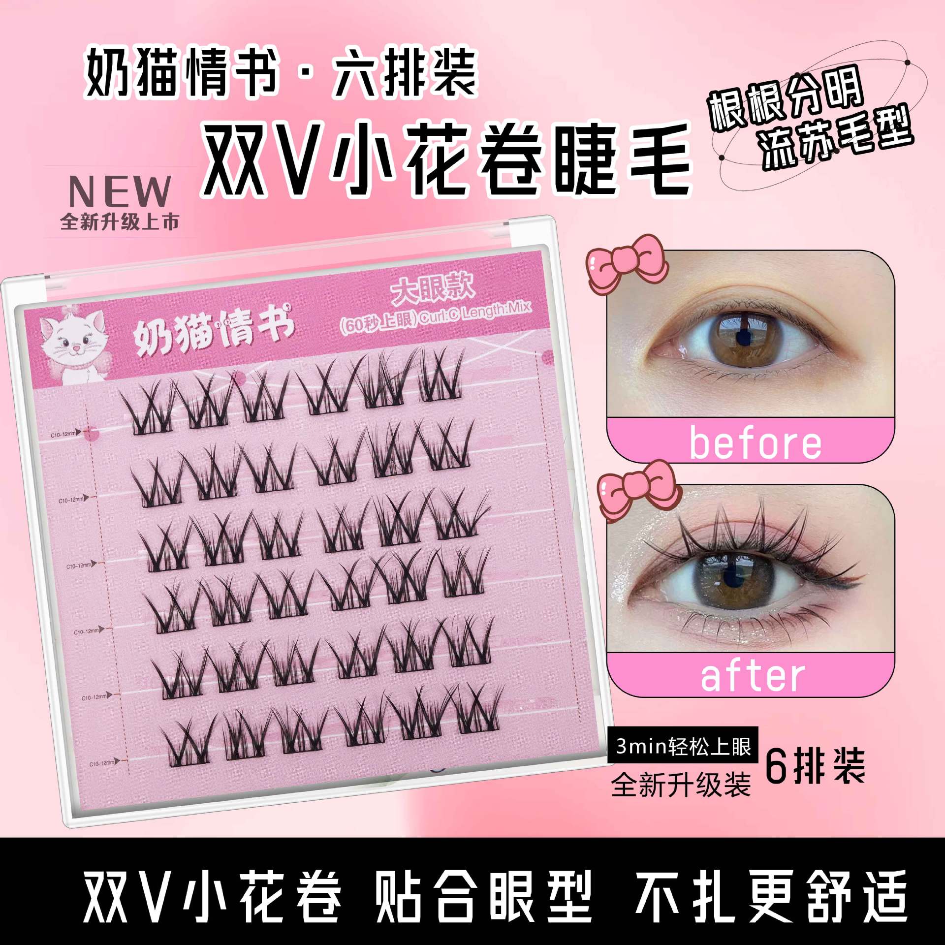 Шесть рядов накладных ресниц в стиле «лиса», популярные ресницы «Су Джи», самоклеящиеся сегментированные натуральные ресницы-пучки для нижнего века, мягкие.