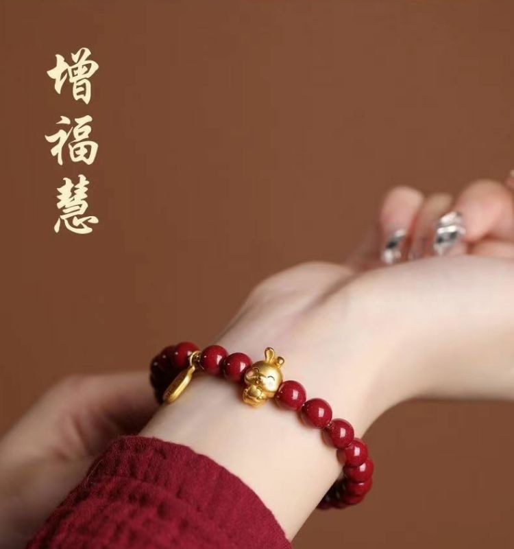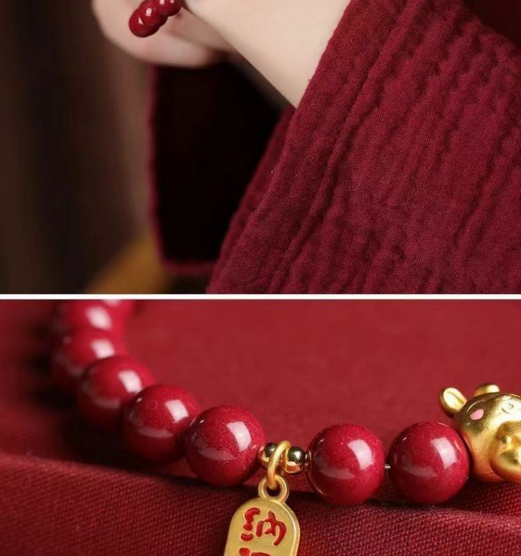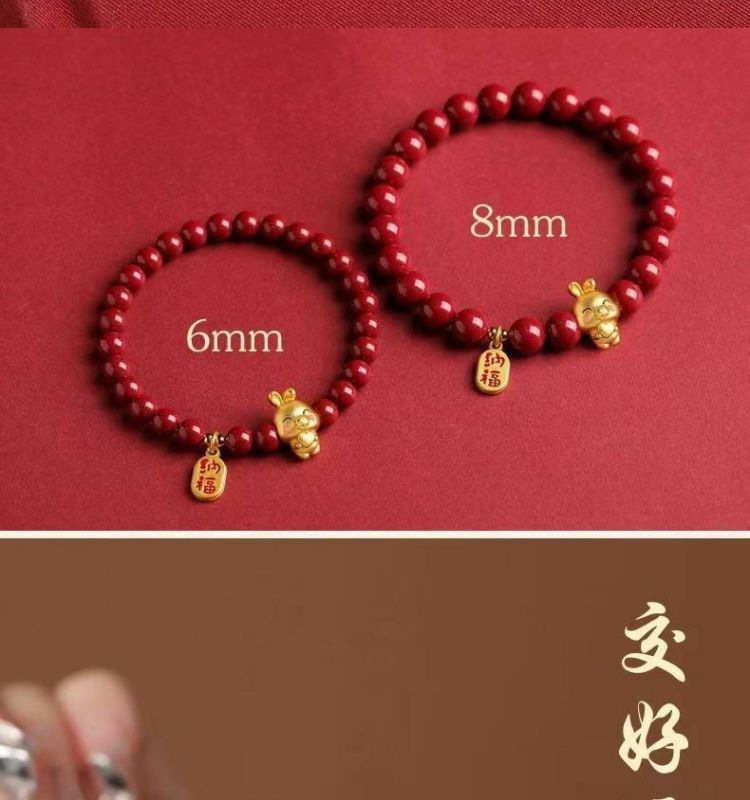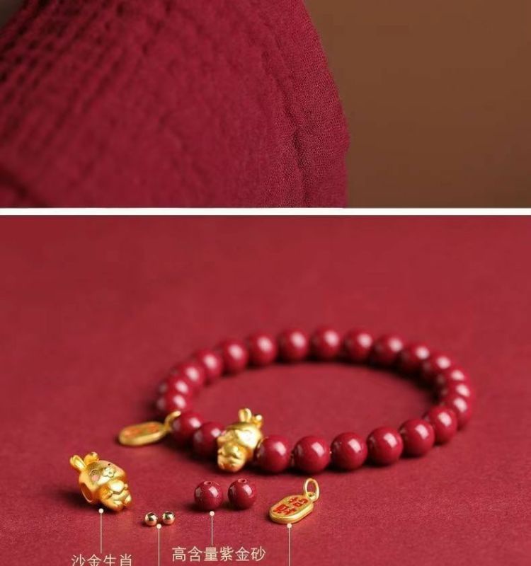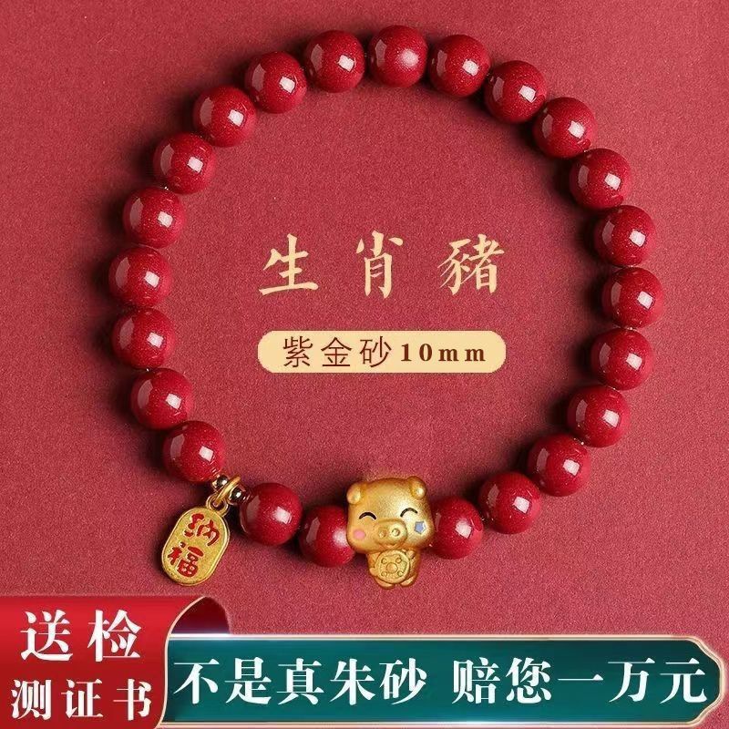 Натуральный киноварь, рукоятка, зодиак, год рождения, мужская и женская пара, браслет, браслет, женский