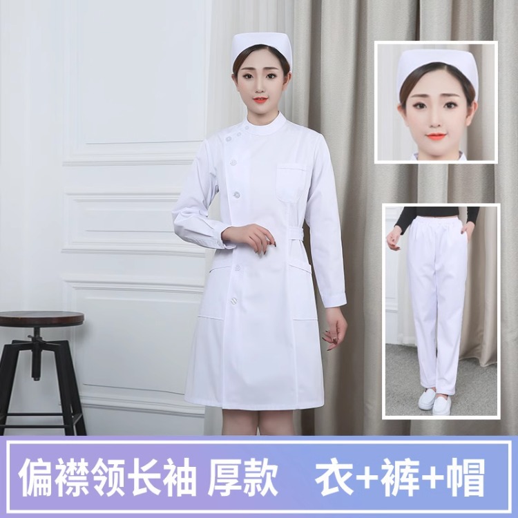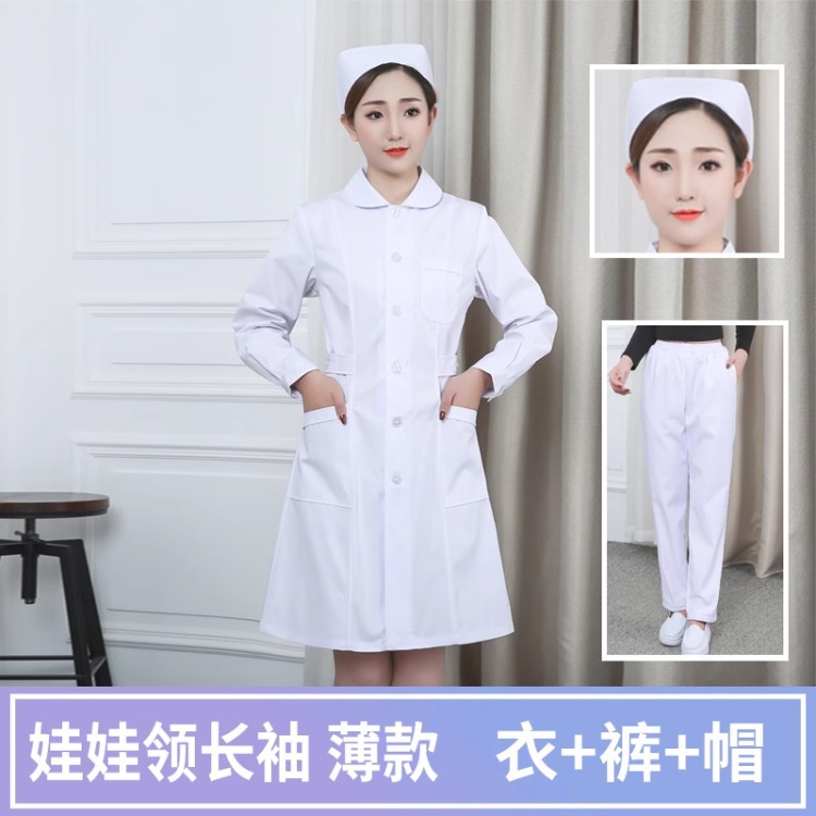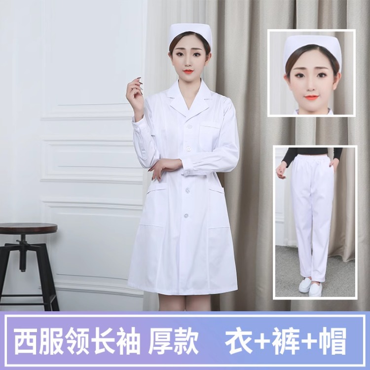 Униформа медсестры, женское белое пальто с длинными рукавами на весну и осень, аптека, салон красоты, больница, плотная рабочая одежда, летний костюм, зимний костюм