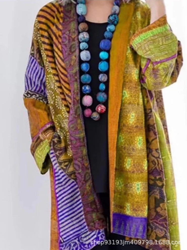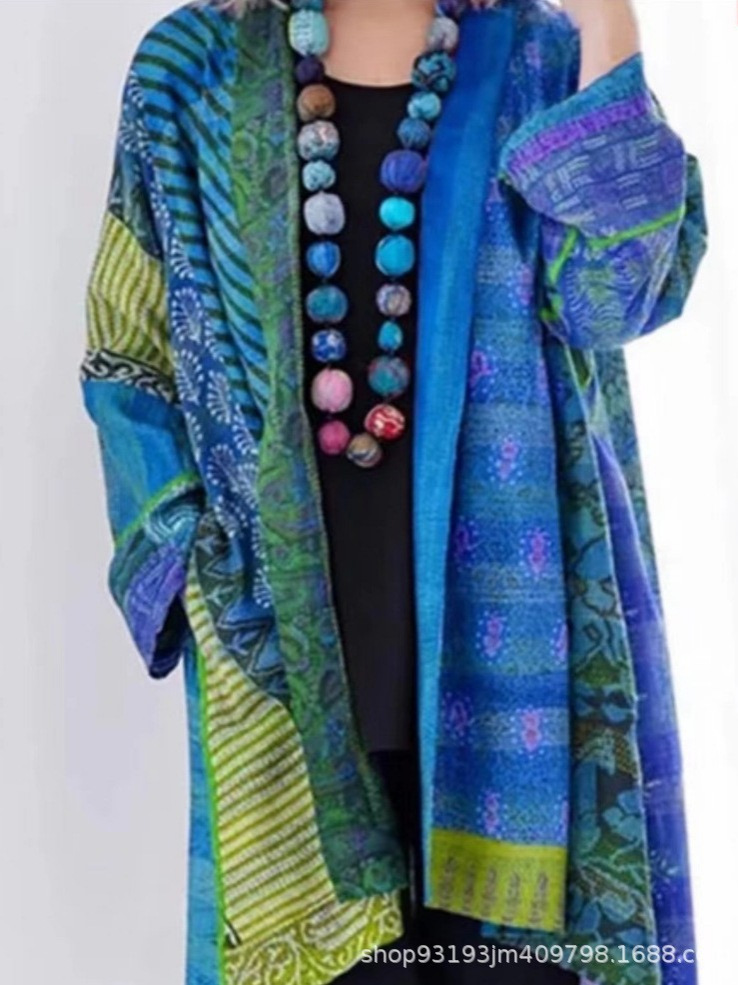 Европейская и американская независимая станция Амазонка лопнул спот свободный национальный стиль большой размер кардиган с принтом с длинными рукавами
