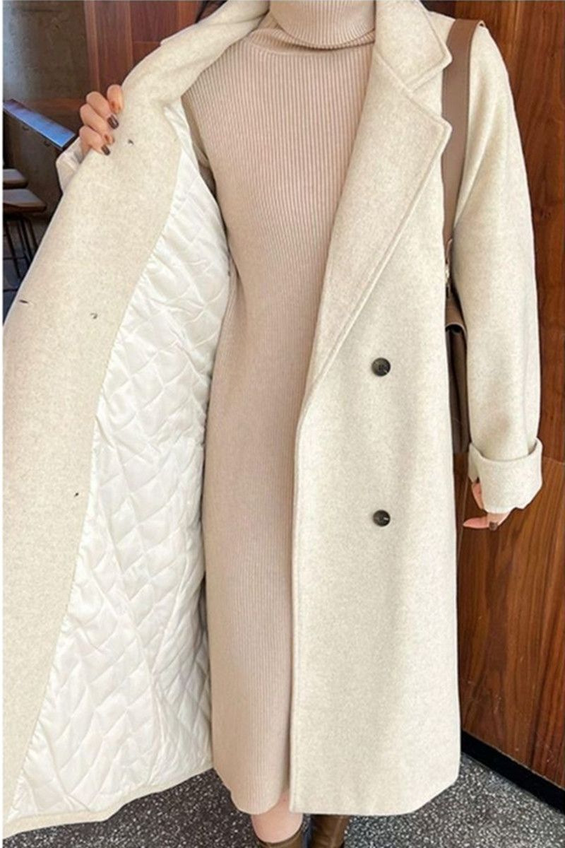 (Плюс ватный карри) Плюс размер свободный хлопок толстый воротник шерстяная шерстяная куртка средней длиной шерстяная шерстяная шерсть