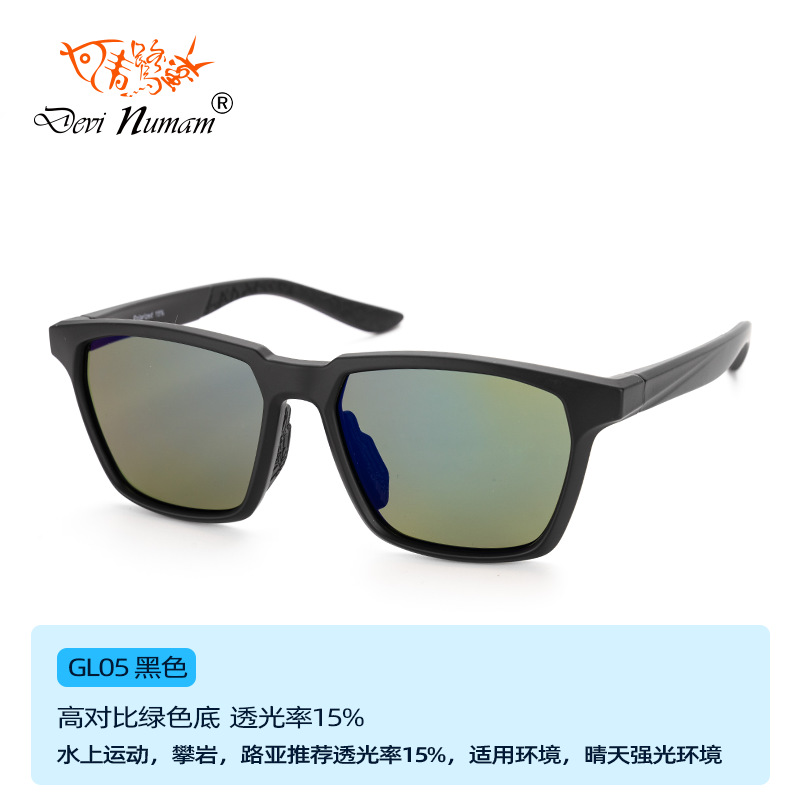GL05 黑框架是本店自己订单中第一次采用黑色框架,高对比偏光成本更高,绿色底色15%透光率适合晴天强光环境