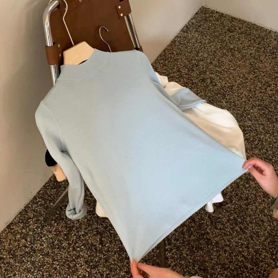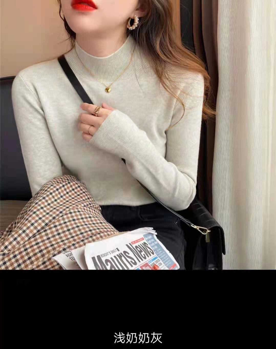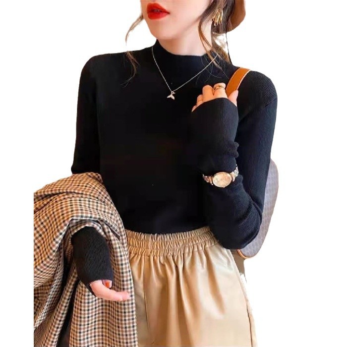 Женский осенне-зимний мягкий шерстяной свитер, базовый слой с воротником-стойкой, разноцветная внутренняя одежда с длинными рукавами, стильный и нежный осенний топ.
