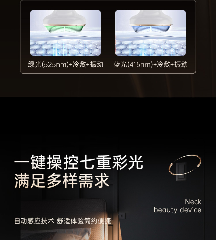 Трансграничный косметический инструмент, вибрирующий массажер для шеи с горячим и холодным цветным светом, инструмент для омоложения лица, красочный косметический инструмент для шеи