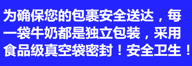 重要:收货时一定要拆箱验货,没问题再拿走签收,在哪取货在哪里检查。快递运输过程中我们无法掌控,商品发出时都是完好的,收到时万一牛奶有破损、胀袋、鼓包、变质等情况是运输过程中快递摔坏所导致,破损的牛奶不能饮用,也不要撕开破损牛奶的密封袋,牛奶都是独立密封包装,没有破损的不会受到影响。
