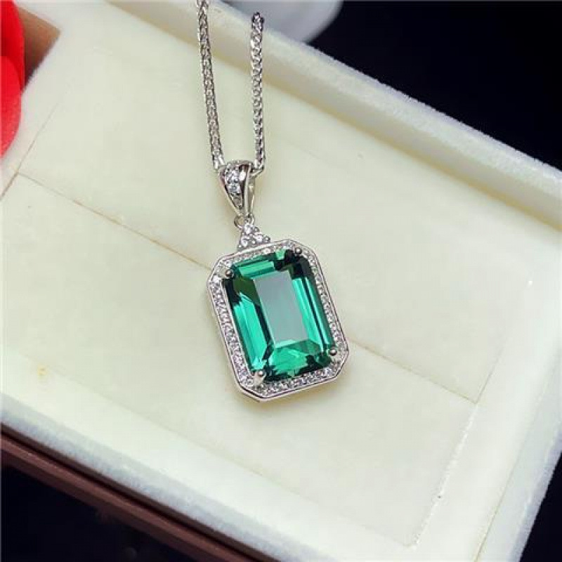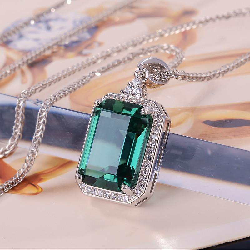 Подвеска из серебра 925 пробы с зеленым кристаллом; Кулон с цепочкой из стерлингового серебра.