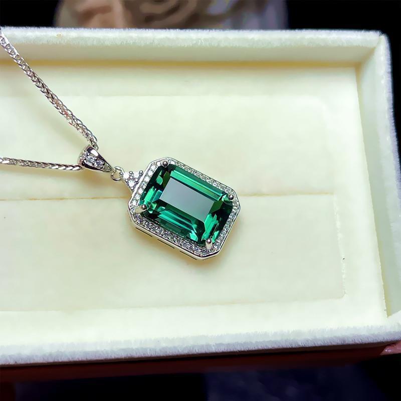 Аутентичный зеленый турмалиновый кристалл подвеска женская цепочка ключицы дикая серебряная индивидуальность s925 цвет турмалина изумрудное ожерелье