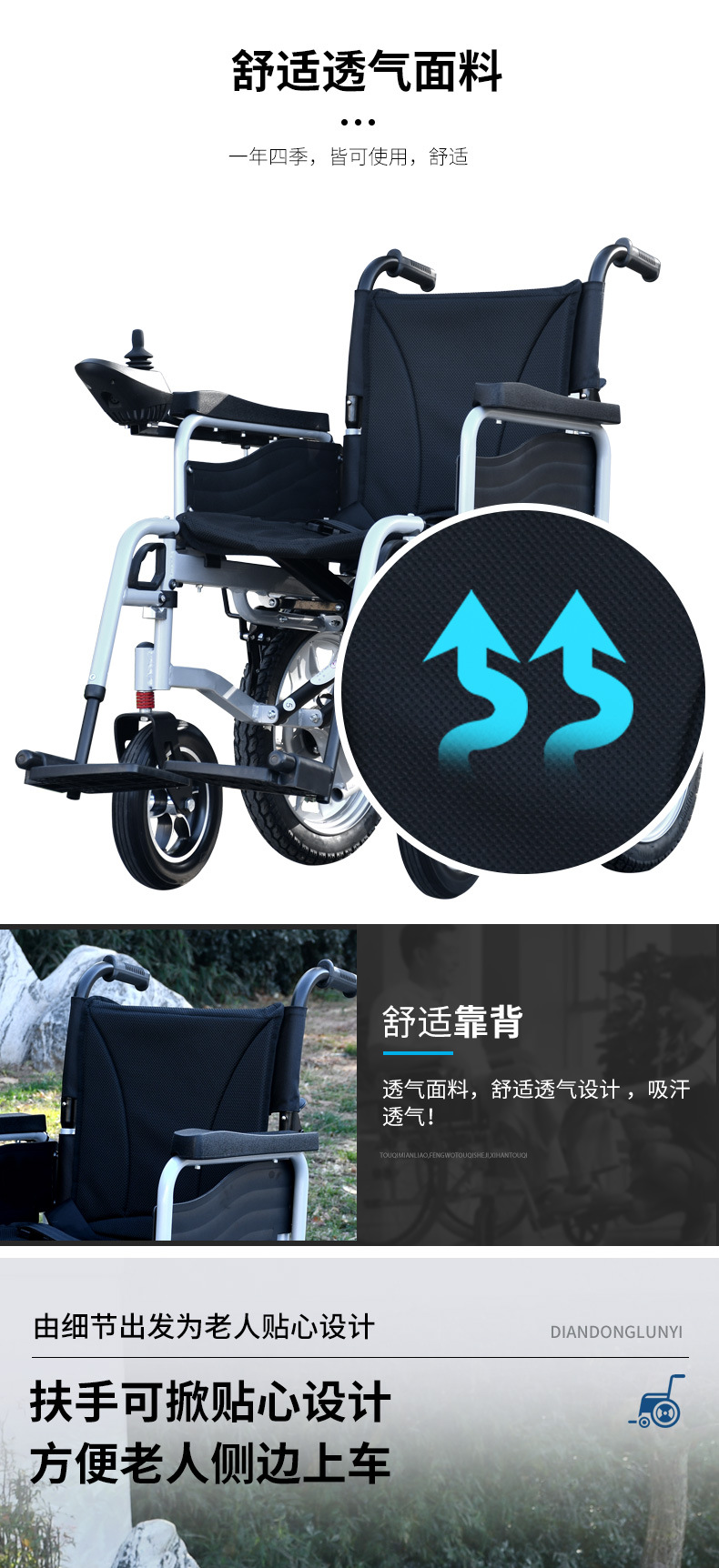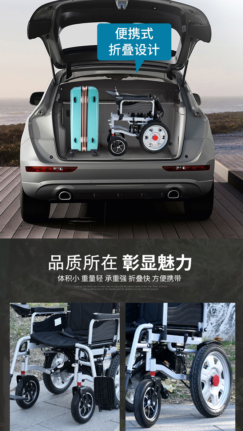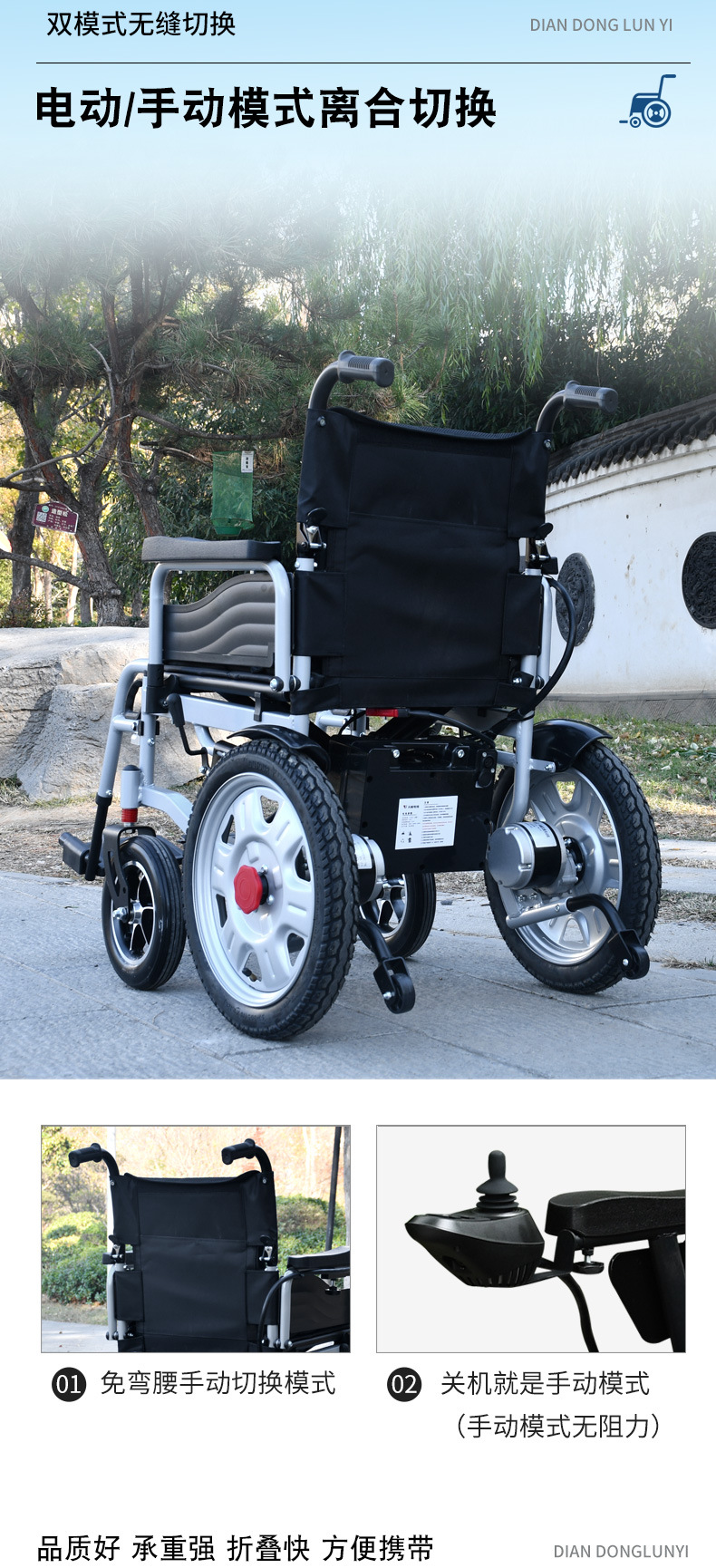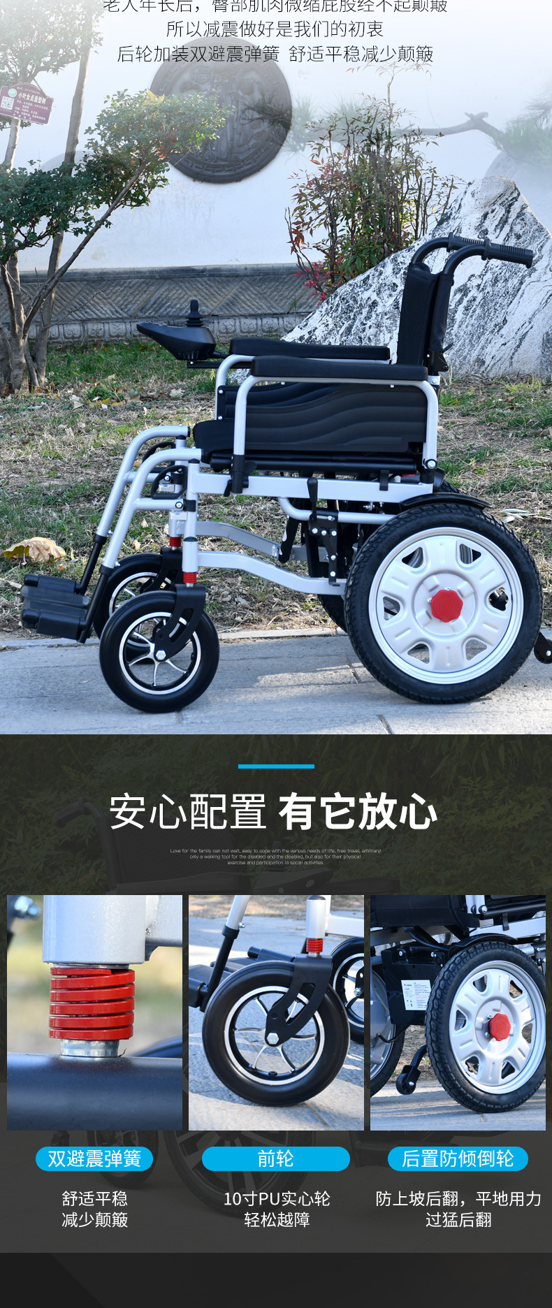 可手动前行 10寸铝合金实心前轮双减震 折叠便于收纳