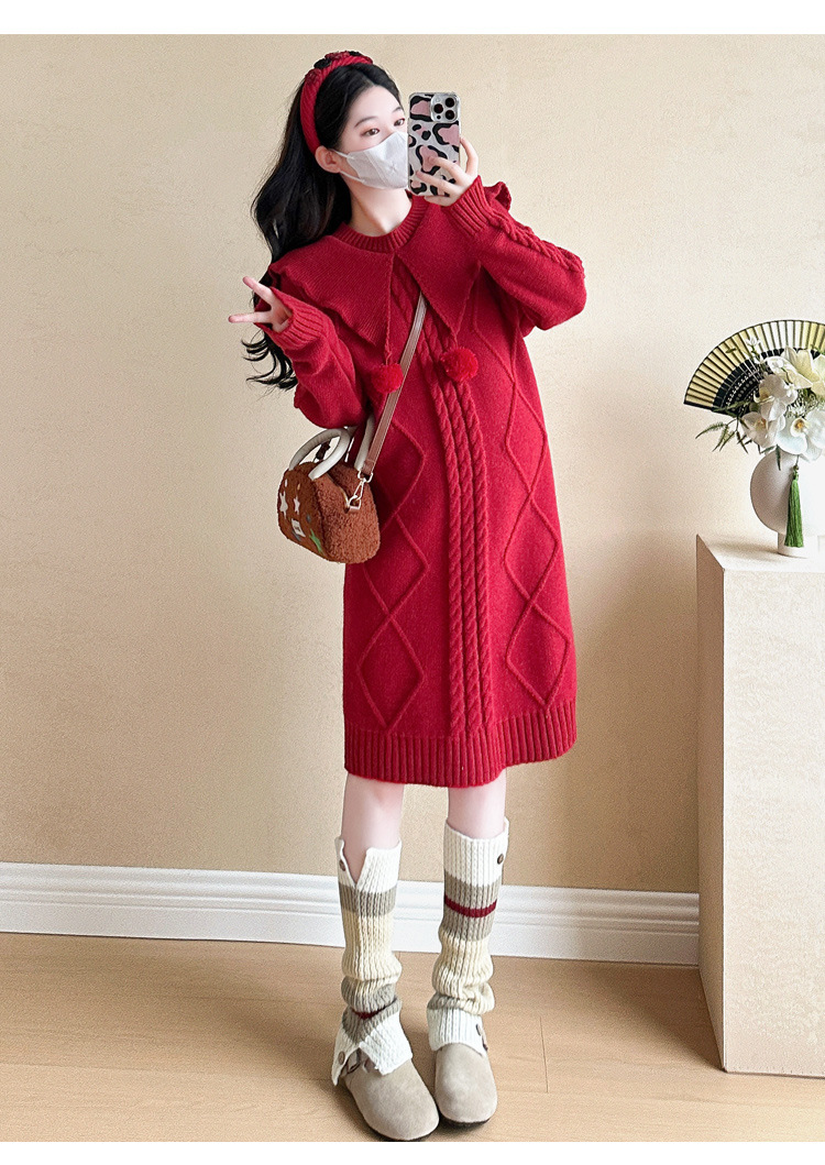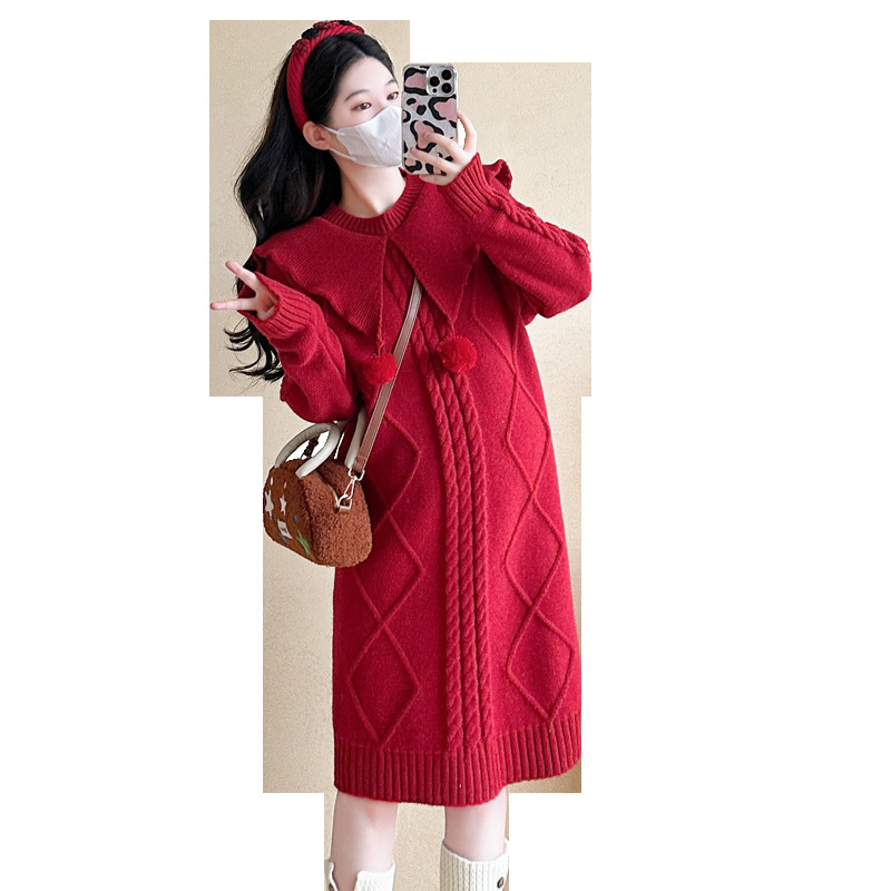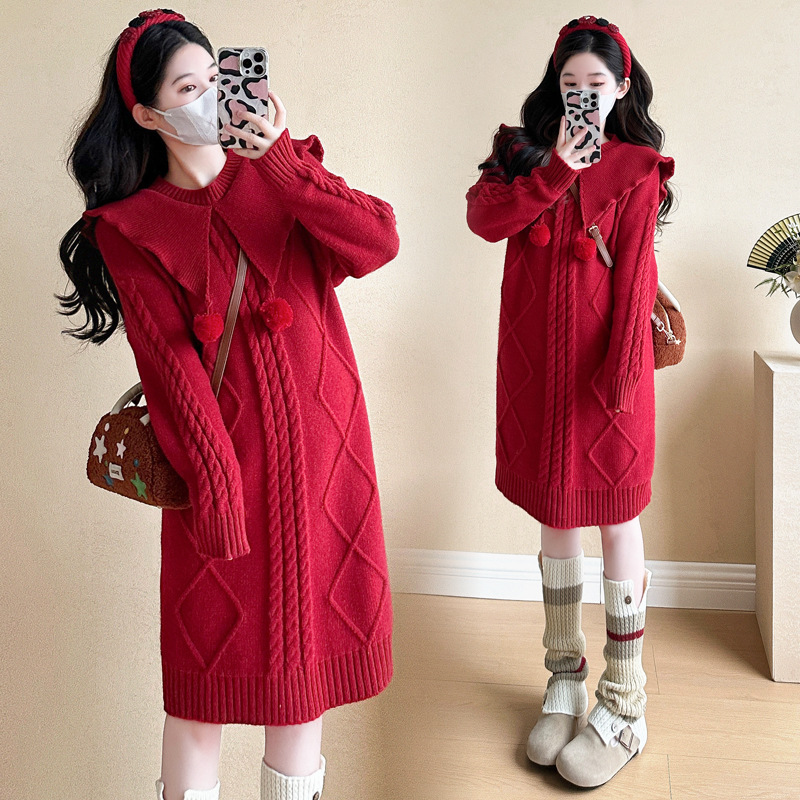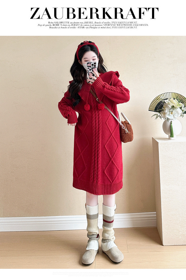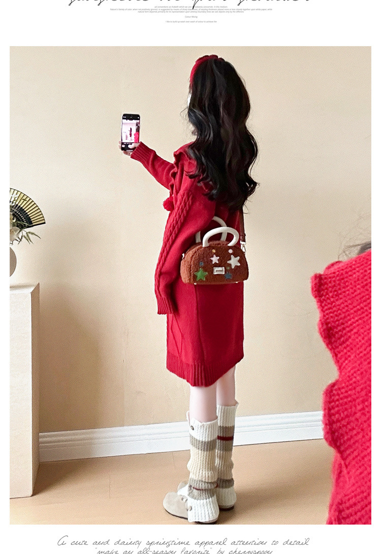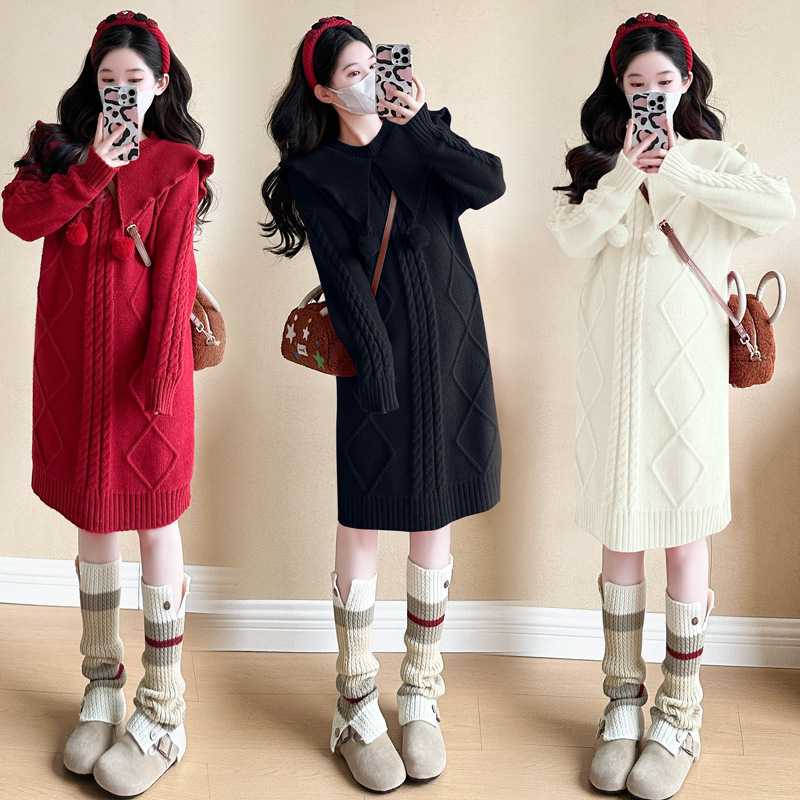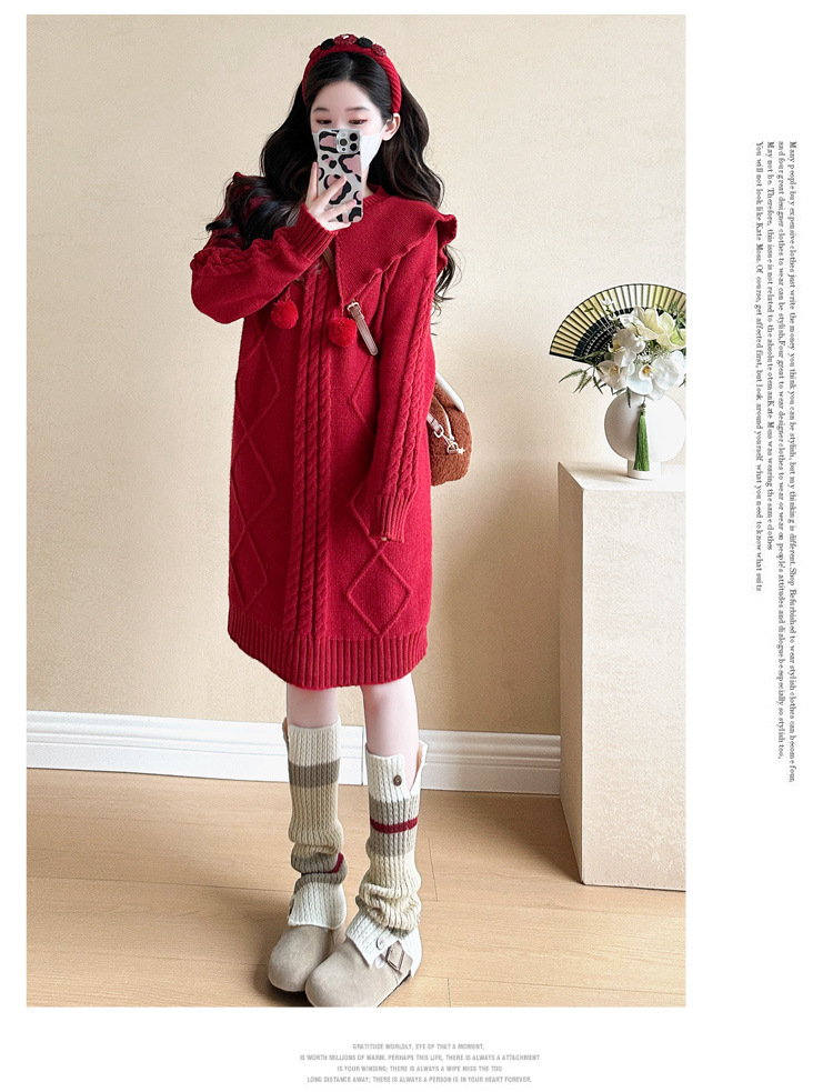 Съемка на месте ~ 2025 зимнее новое корейское модное твистовое свободное тонкое детское платье с уменьшением возраста