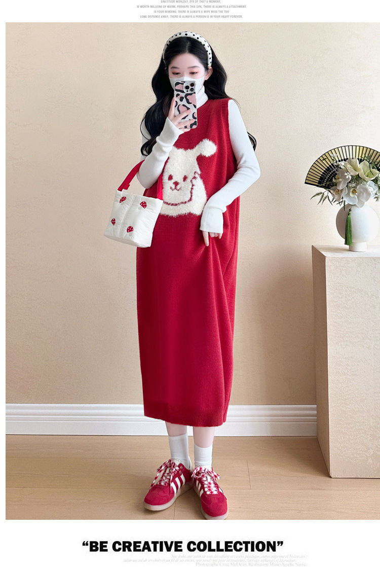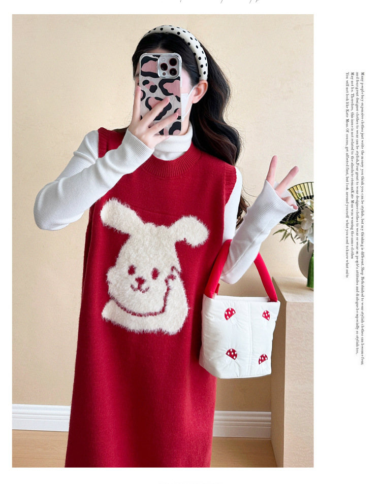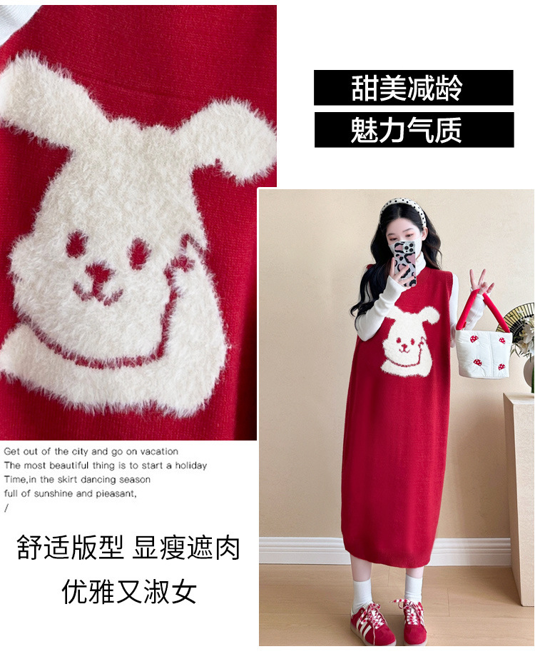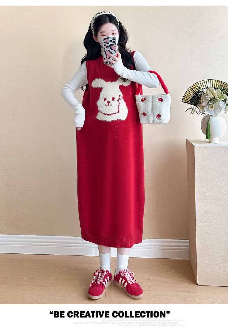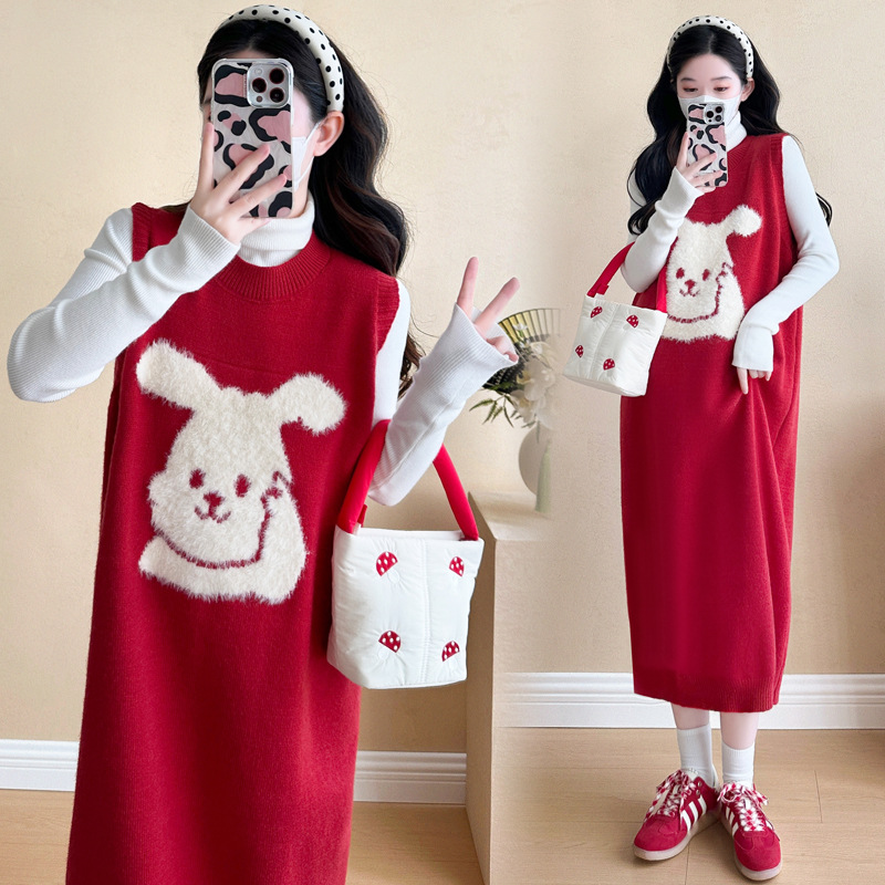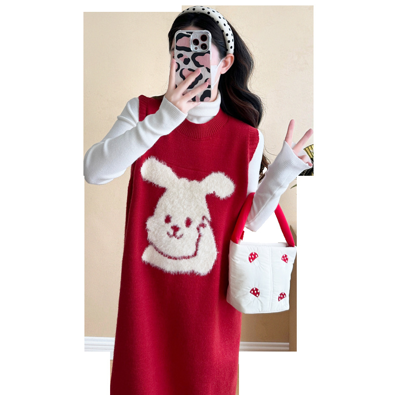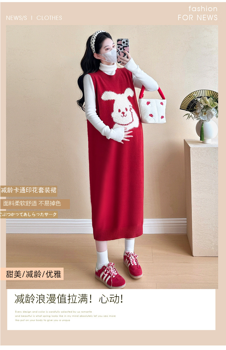 Съемка на месте ~ 2025 осенний и зимний новый сетевой красный беременные рождественский кролик юбка карабин мягкий клейкий нижний свитер набор