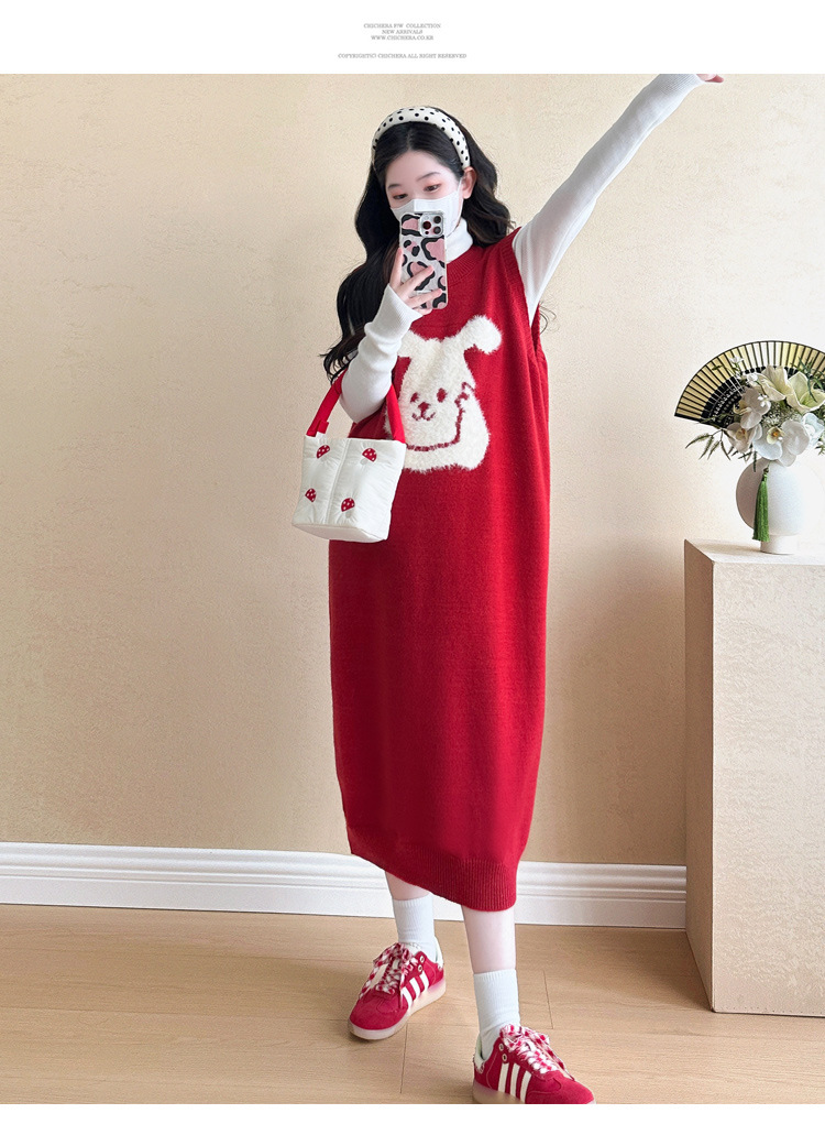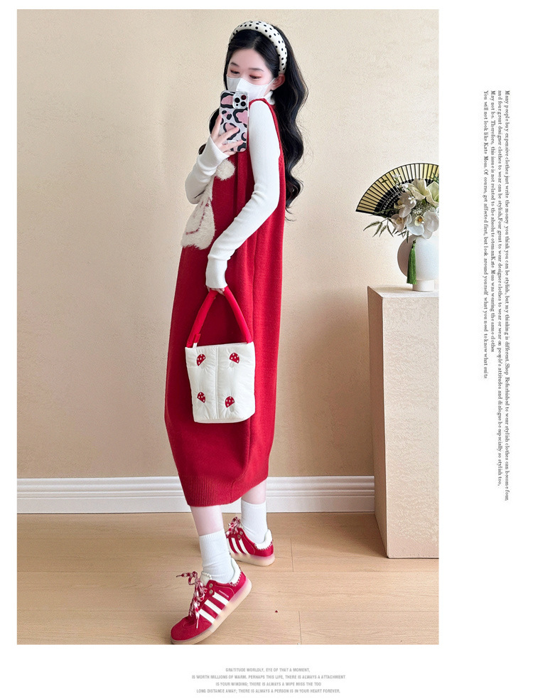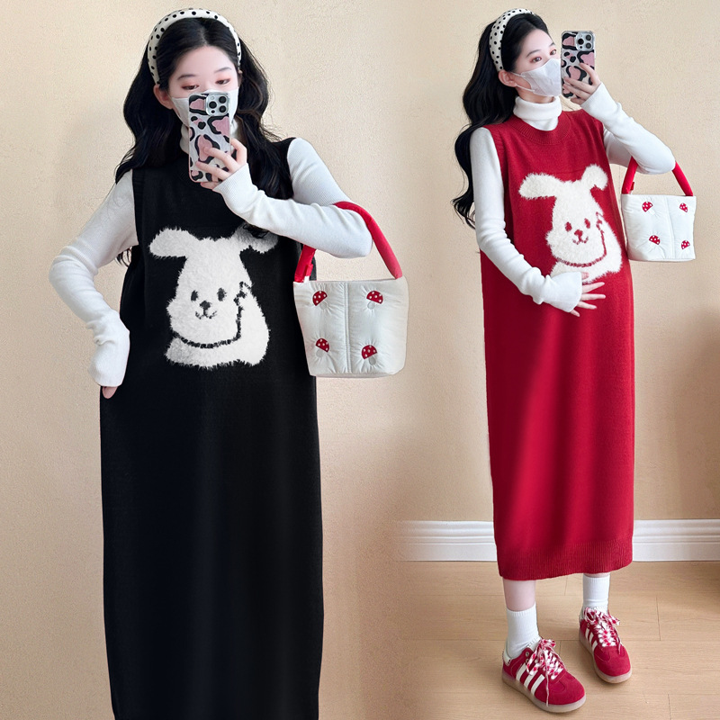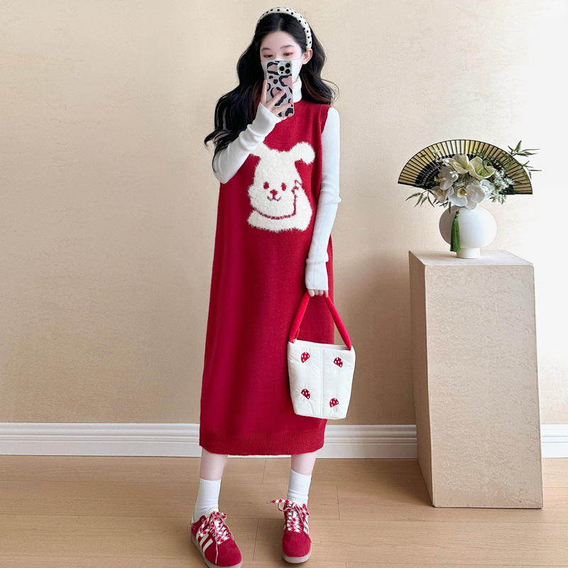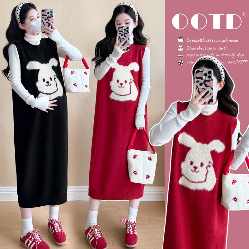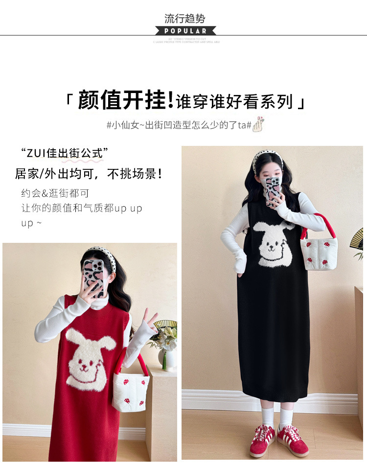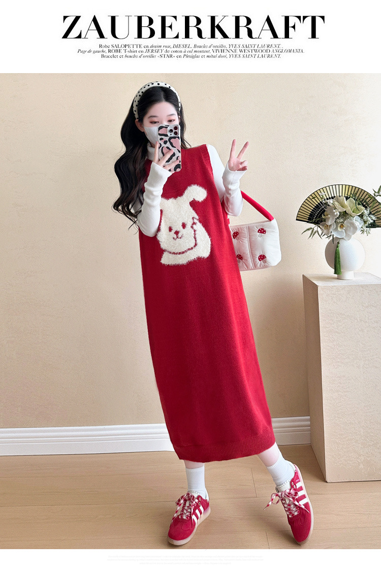 Съемка на месте ~ 2025 осенний и зимний новый сетевой красный беременные рождественский кролик юбка карабин мягкий клейкий нижний свитер набор