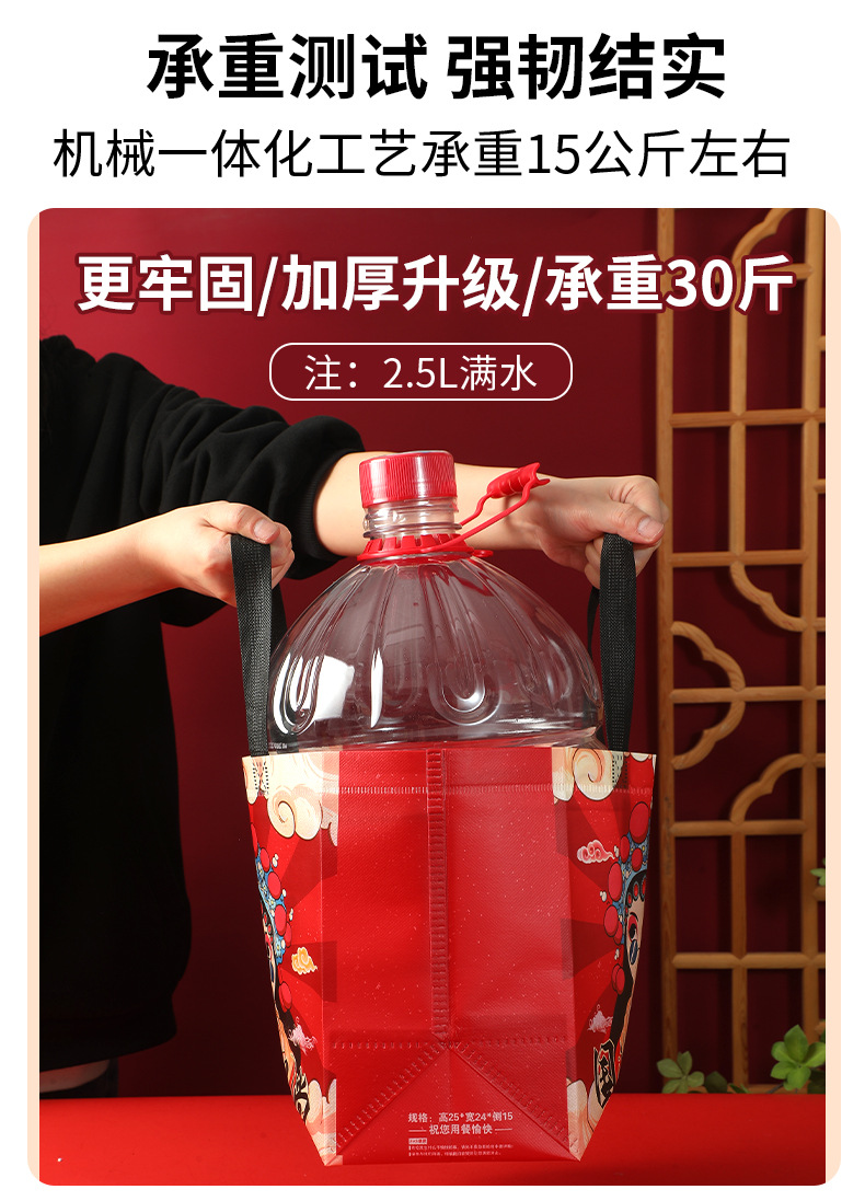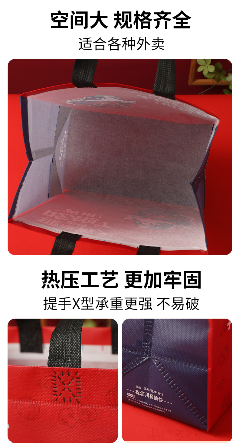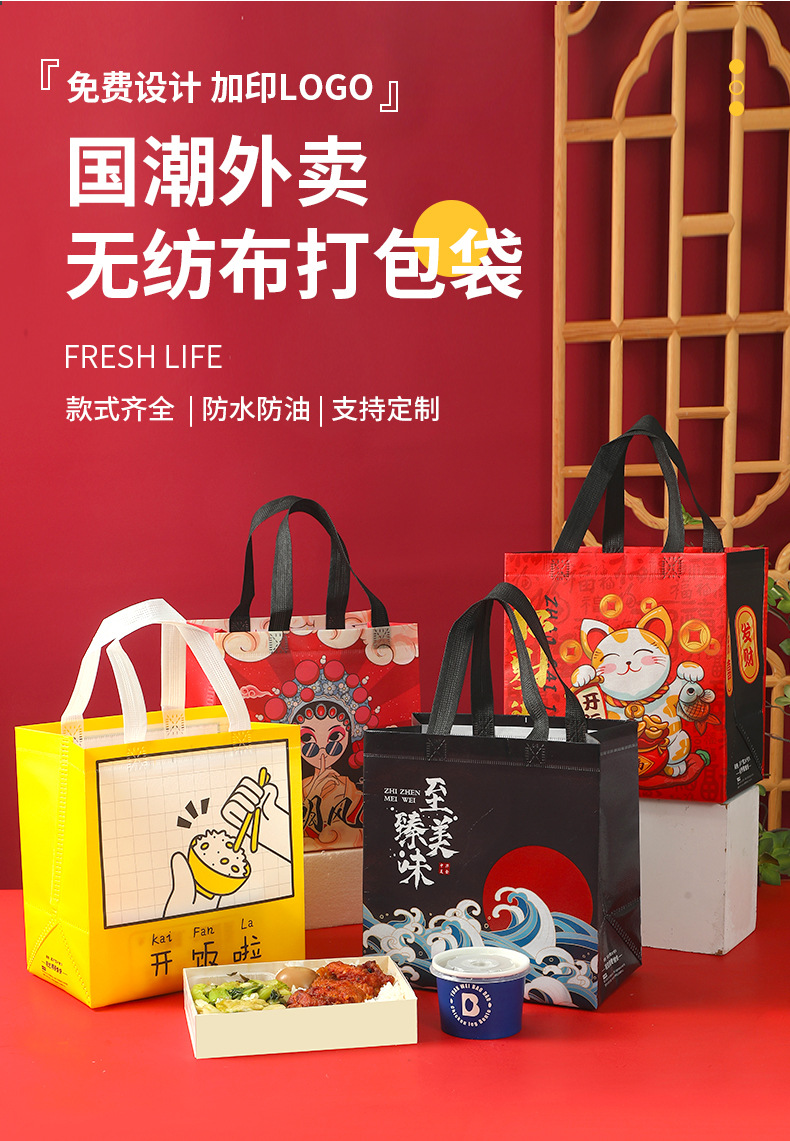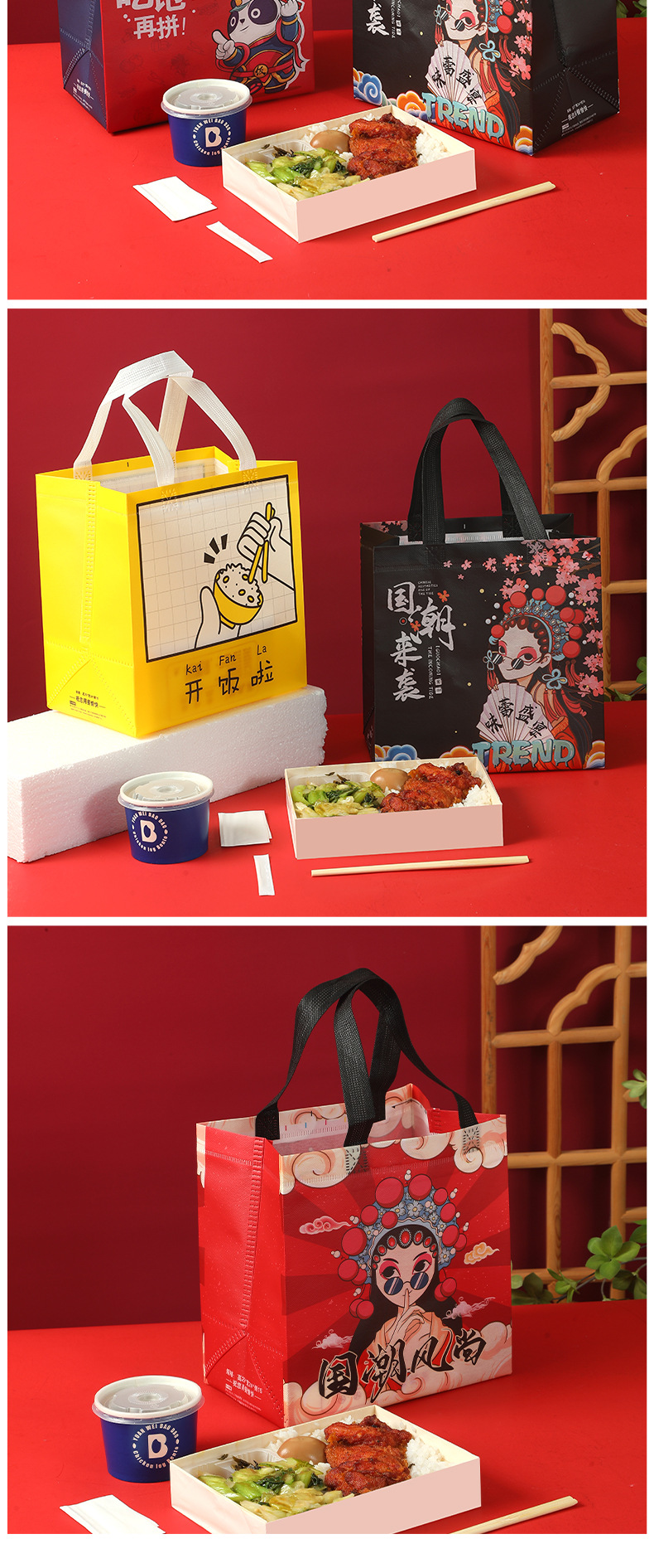 Нетканый мешок на вынос, одноразовый национальный тренд, упаковочный мешок с цветным принтом, утолщенный ламинированный мешок на вынос для коммерческого общественного питания