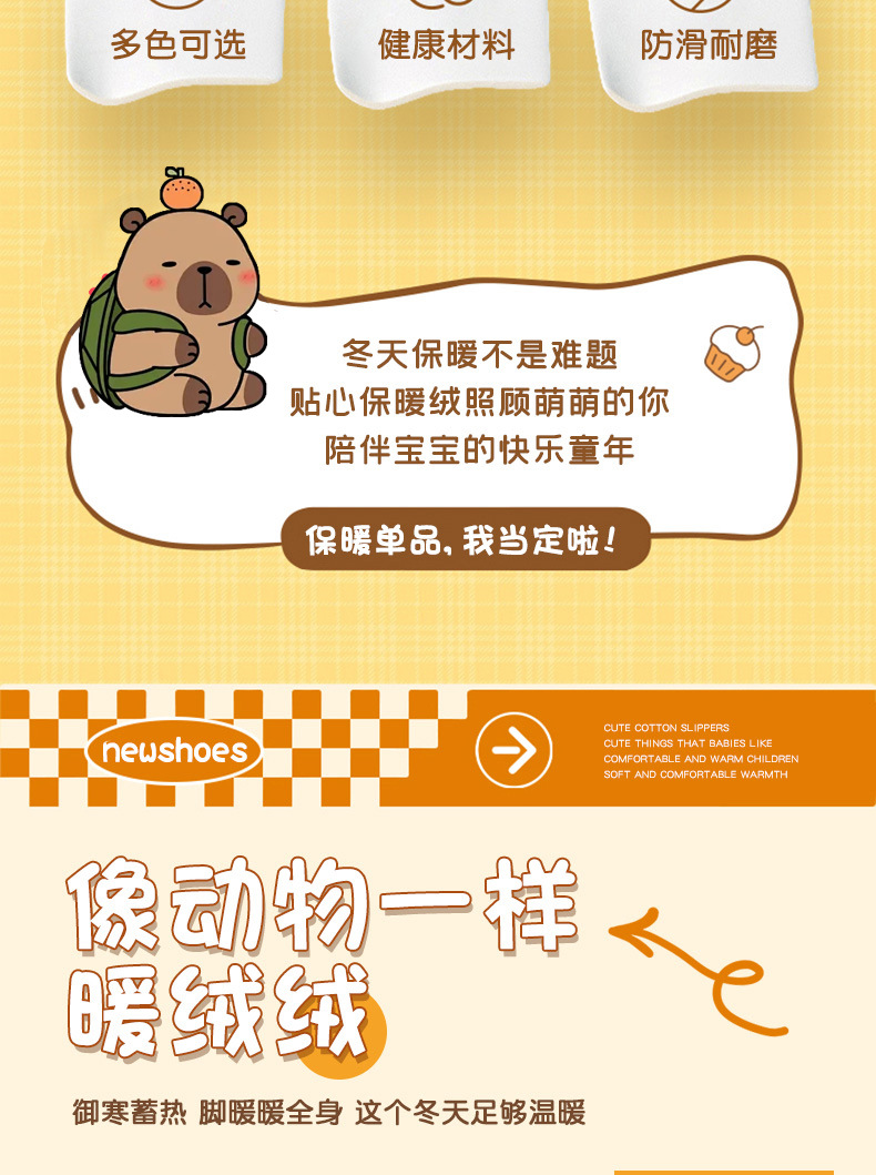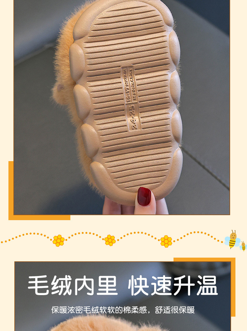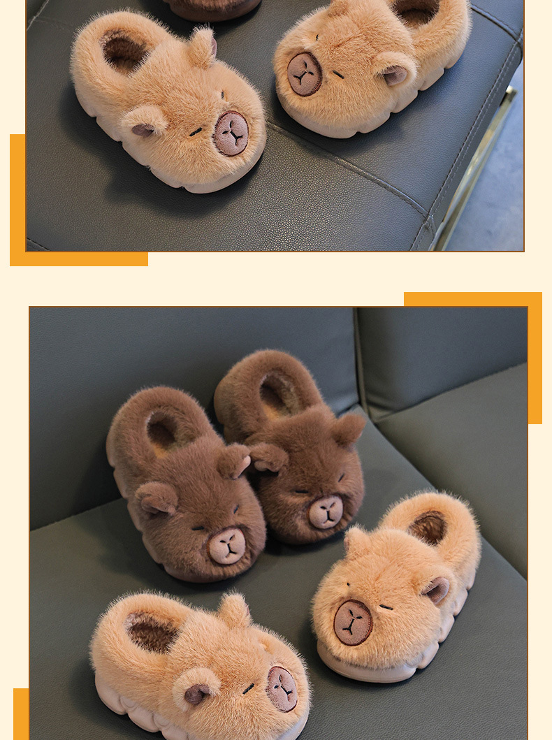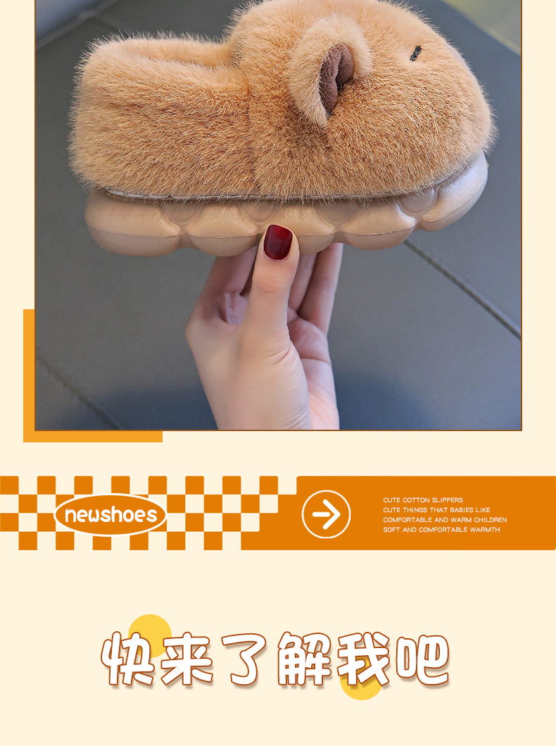 Зимние детские хлопковые туфли Kapibala на каблуке для тепла дома, пушистая подошва из ЭВА, нескользящие детские хлопковые тапочки маленького и среднего размера.