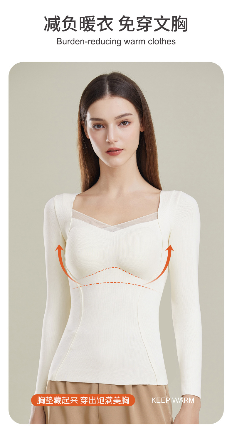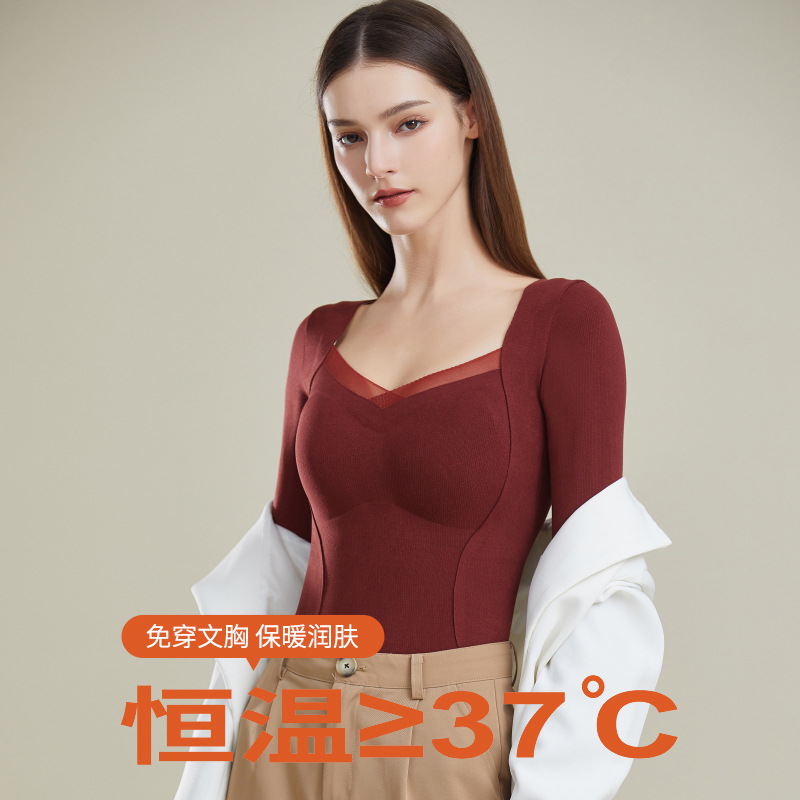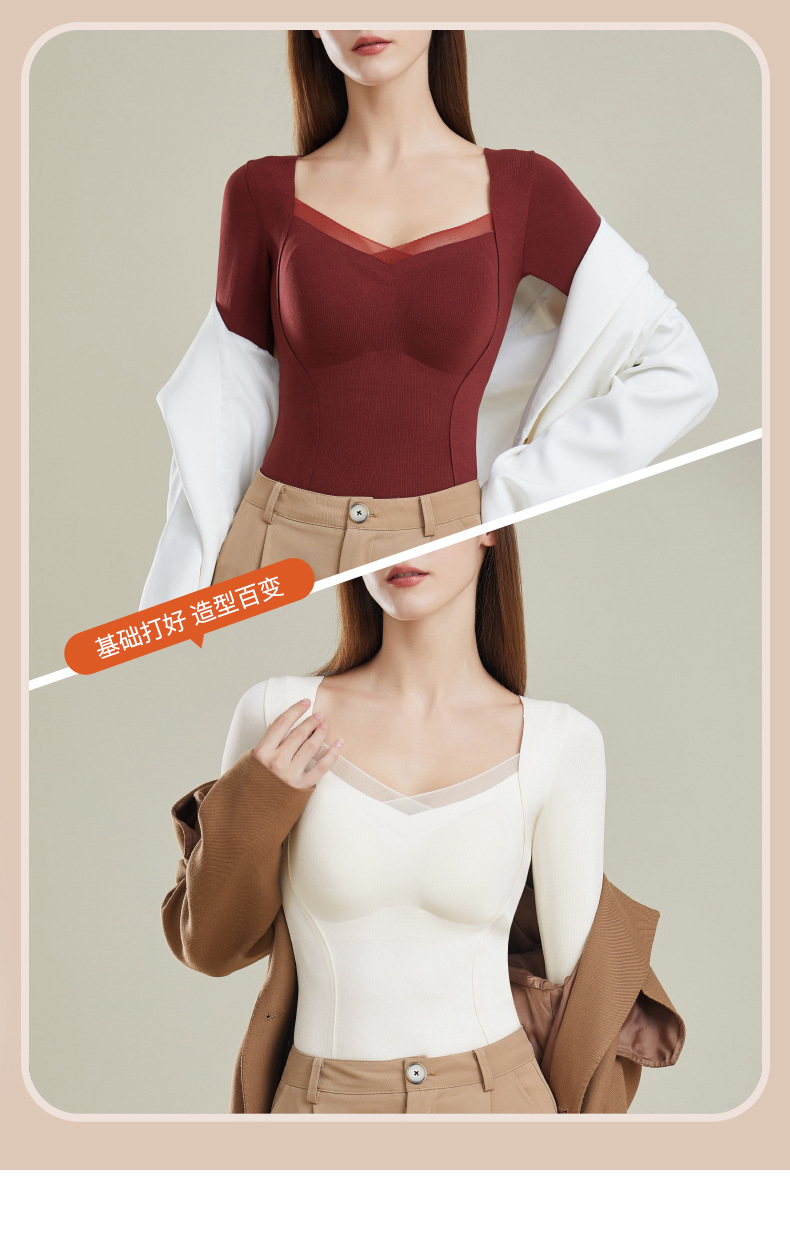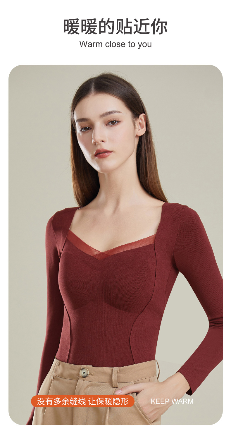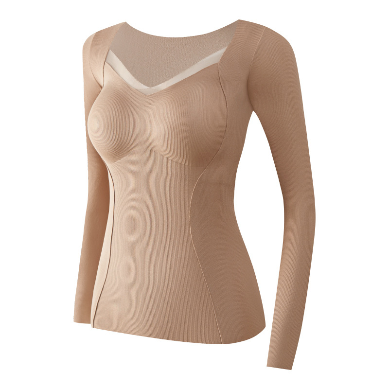 Термобелье с длинным рукавом и кружевом с V-образным вырезом