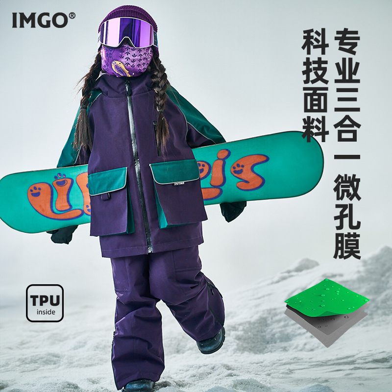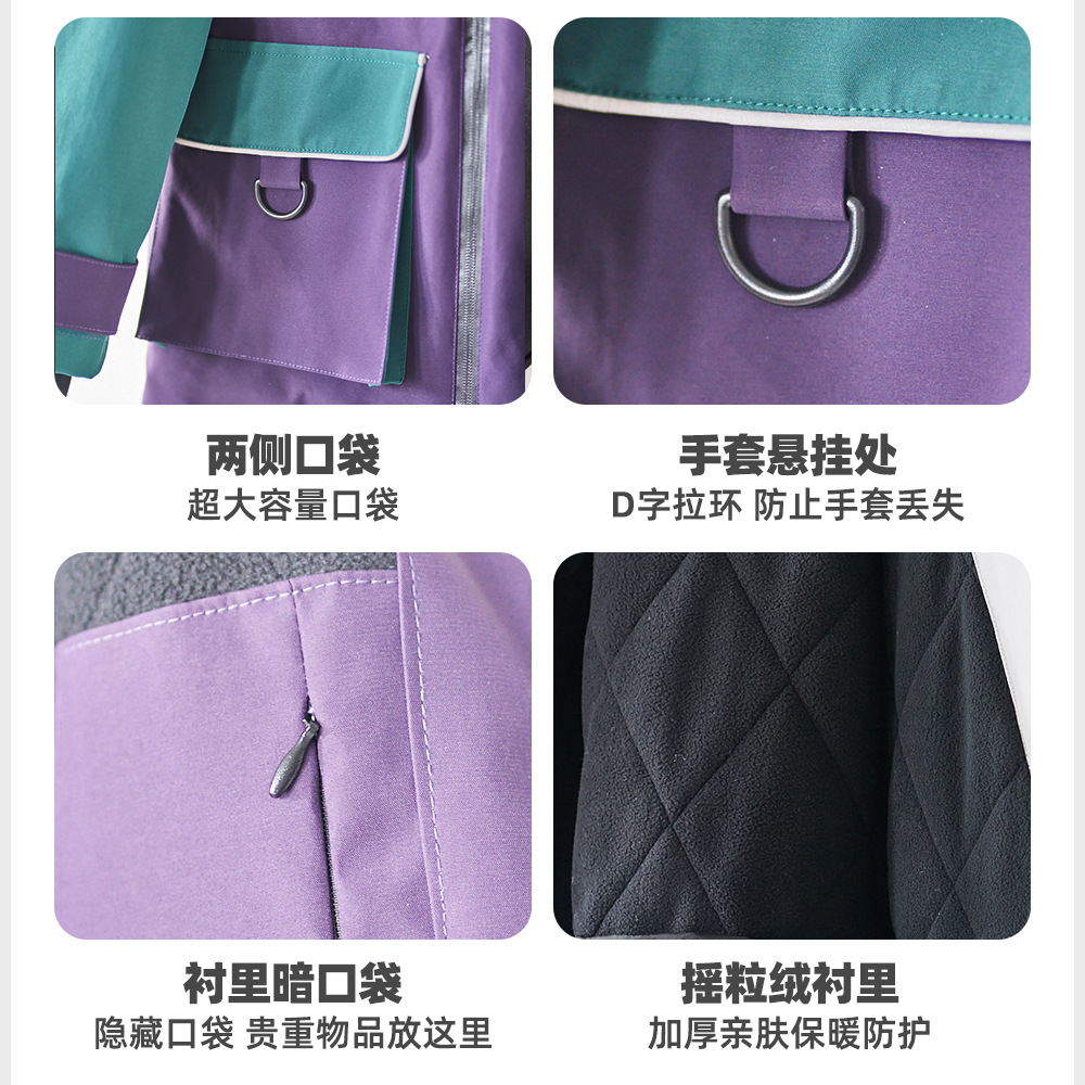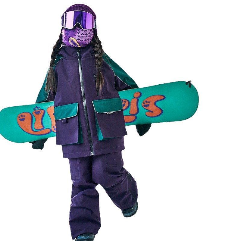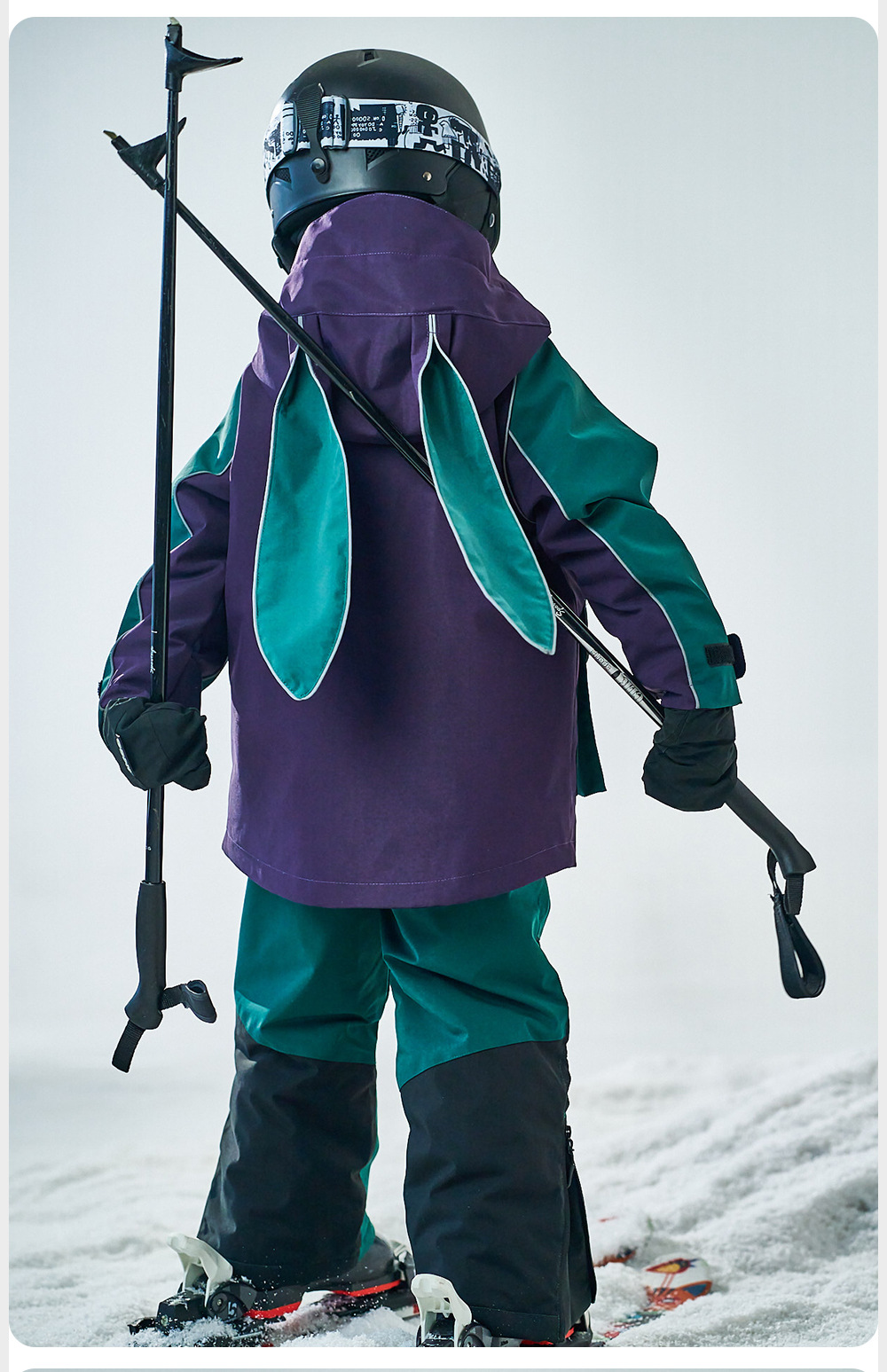 Темно-фиолетовый кроличий ухо лыжный костюм профессиональный детский бархат толстый лыжный налет костюм штурмовой одежды