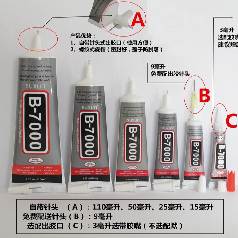 Клей b7000 3 мл + ультратонкая игла; Клей B7000, 3 мл, случайный стиль; Клей b7000 3 мл поставляется с наконечником; клей b7000 3мл плоская головка; Клей b7000, 5 мл, длинный тонкий кончик; клей b7 5мл + ультратонкая головка; Клей b7000 5 мл поставляется с наконечником.; клей b7000 9мл; клей b7000 10мл; клей b7000 15мл; клей b7000 25мл; клей b7000 50мл; клей b7000 110мл; Алюминиевая трубка объемом 3 мл с плоской головкой; Алюминиевая трубка 3 мл + резиновая головка