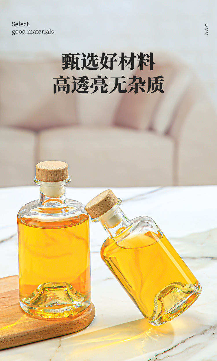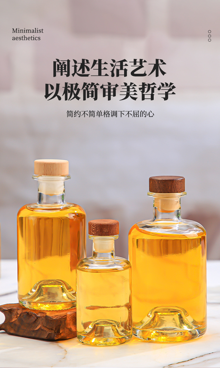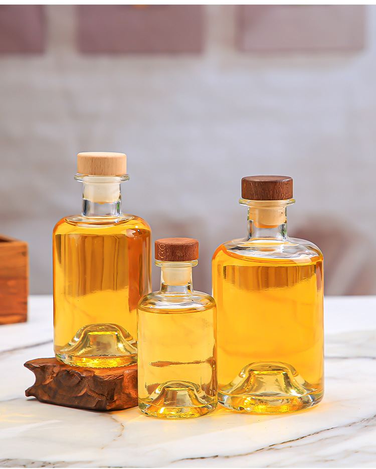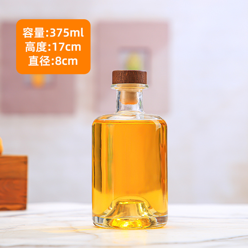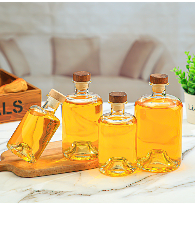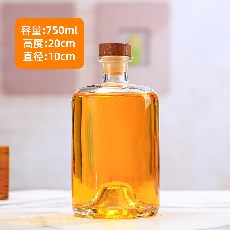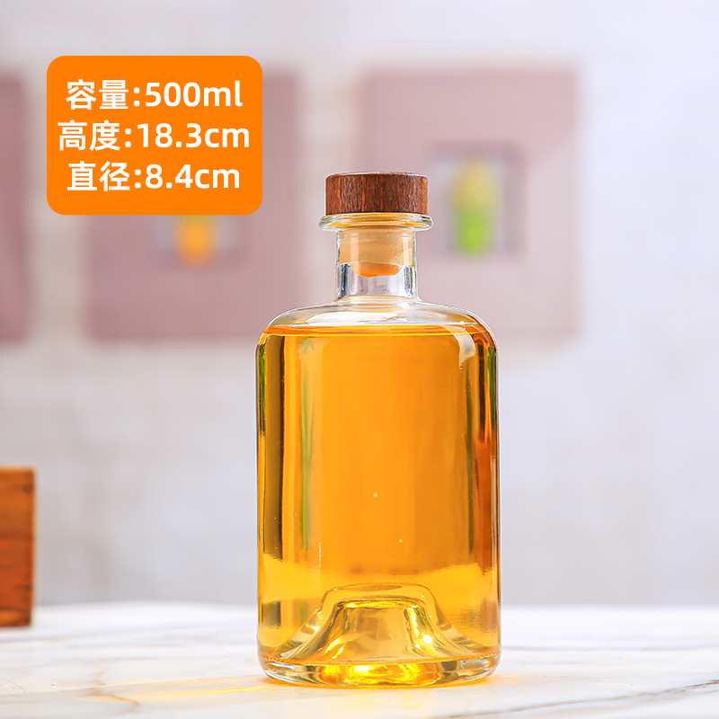 Новый стиль вогнутое дно фруктовое вино бутылка для напитков бутылка деревянная крышка винная бутылка стеклянная бутылка ликера разливочная бутылка пустая оптовая продажа