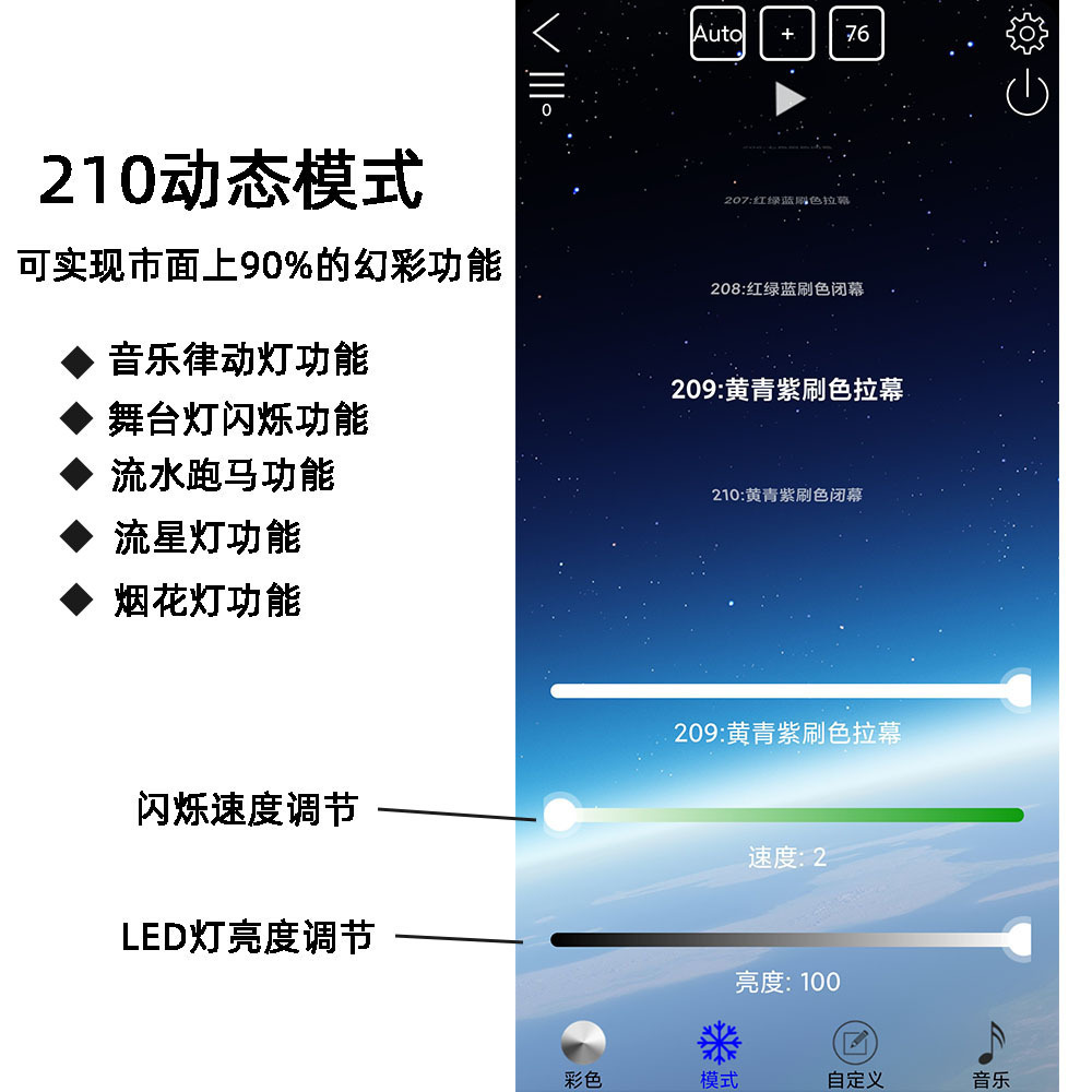 Одиночная цепь 5 В [загрузка с середины и сканирование последнего режима]; Двухканальный 12 В (22 двухканальных выходных контроллера режима запуска); Двухканальный от 12 до 5 В [без микрофона]; Одноканальный выходной контроллер 12 В; Малый контроллер с одним выходом 5 В; Мини-3-строчная волшебная доска; Красочная 4-строчная волшебная доска; Выход 12 В-5 В [с музыкальным микрофоном]