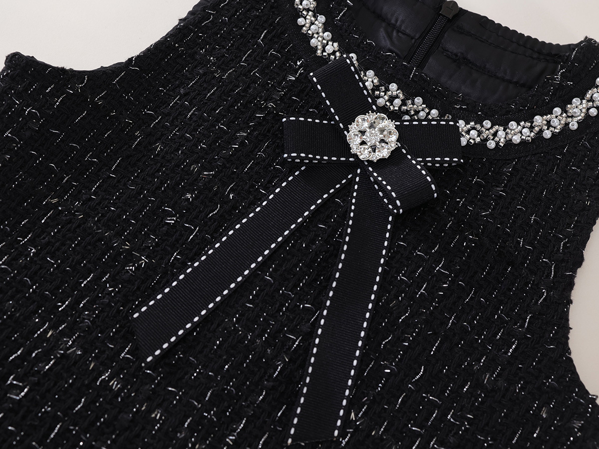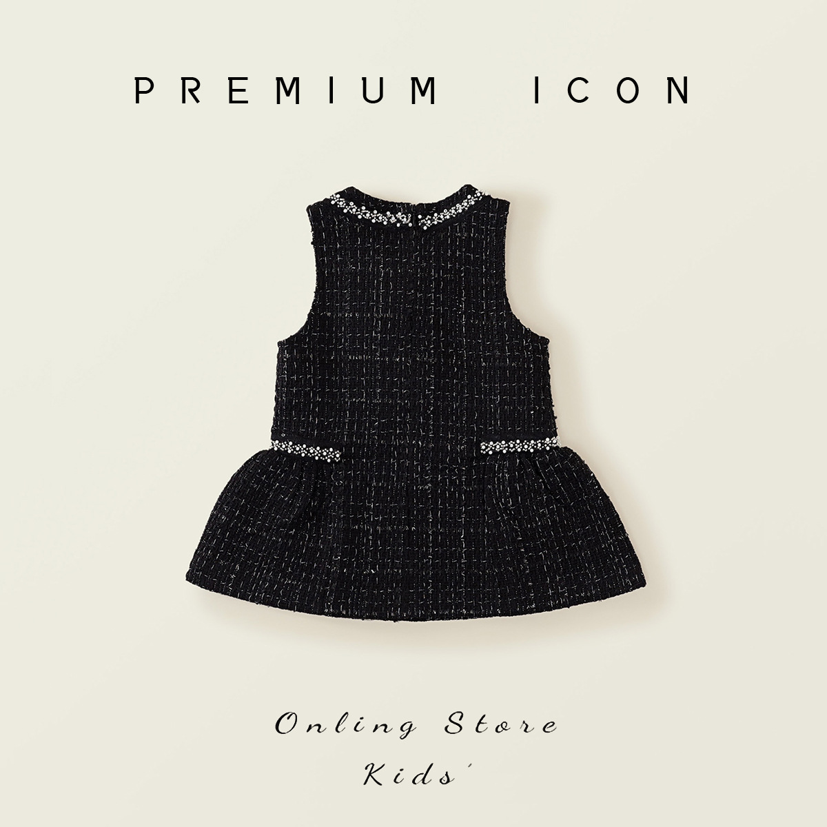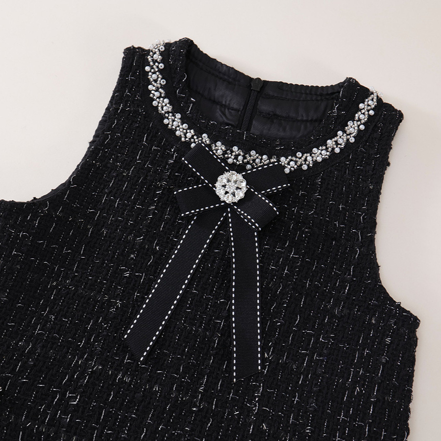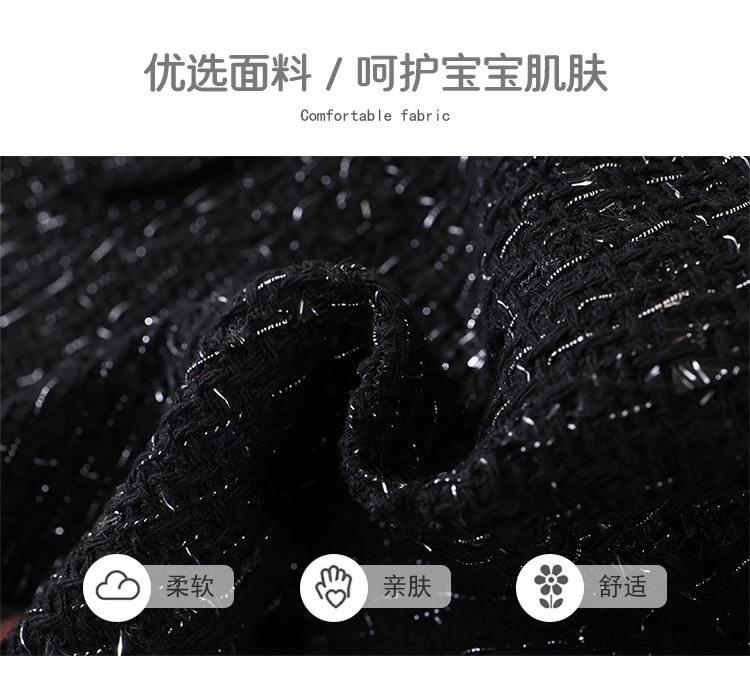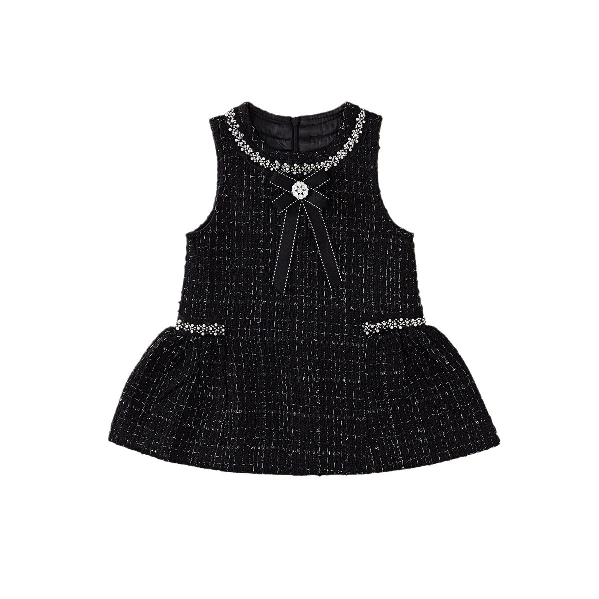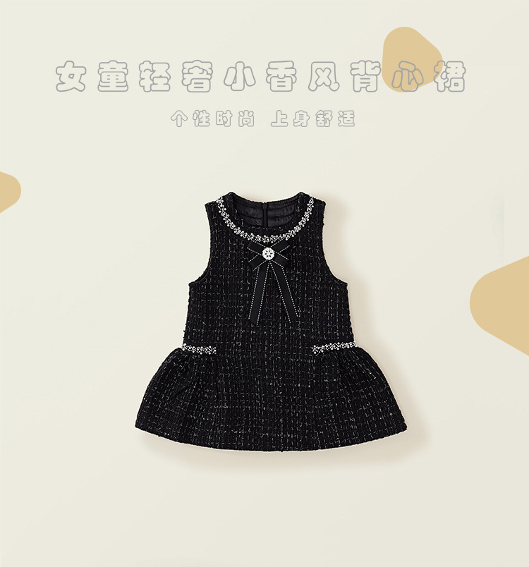 Девушки из твидовых маленьких ароматов без рукавов юбка без рукавов новая весна 2025 новое детское легкое черное горячее платье