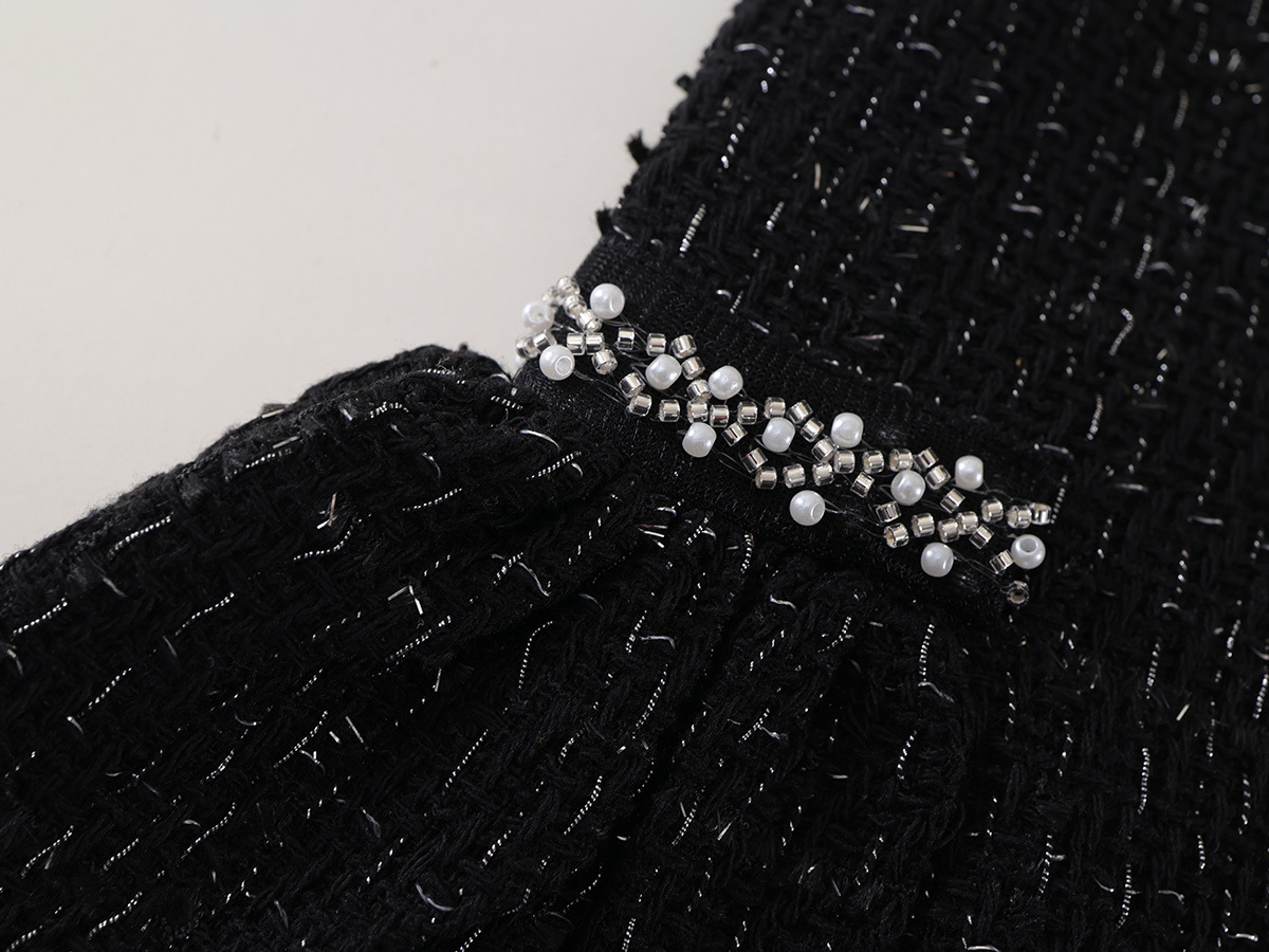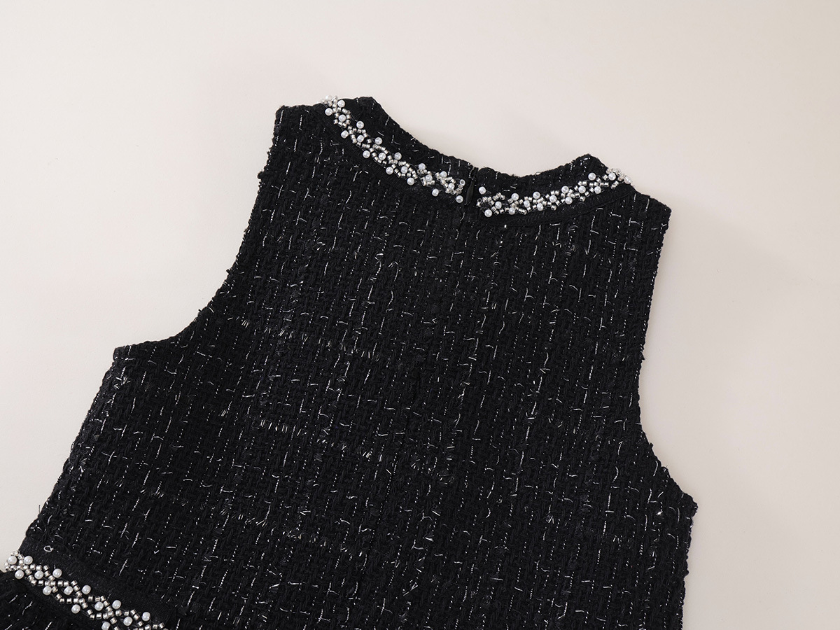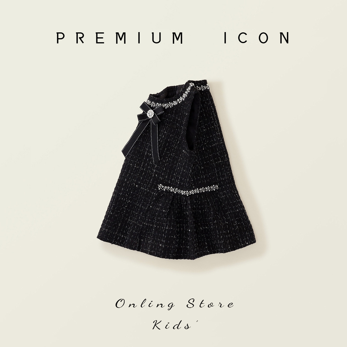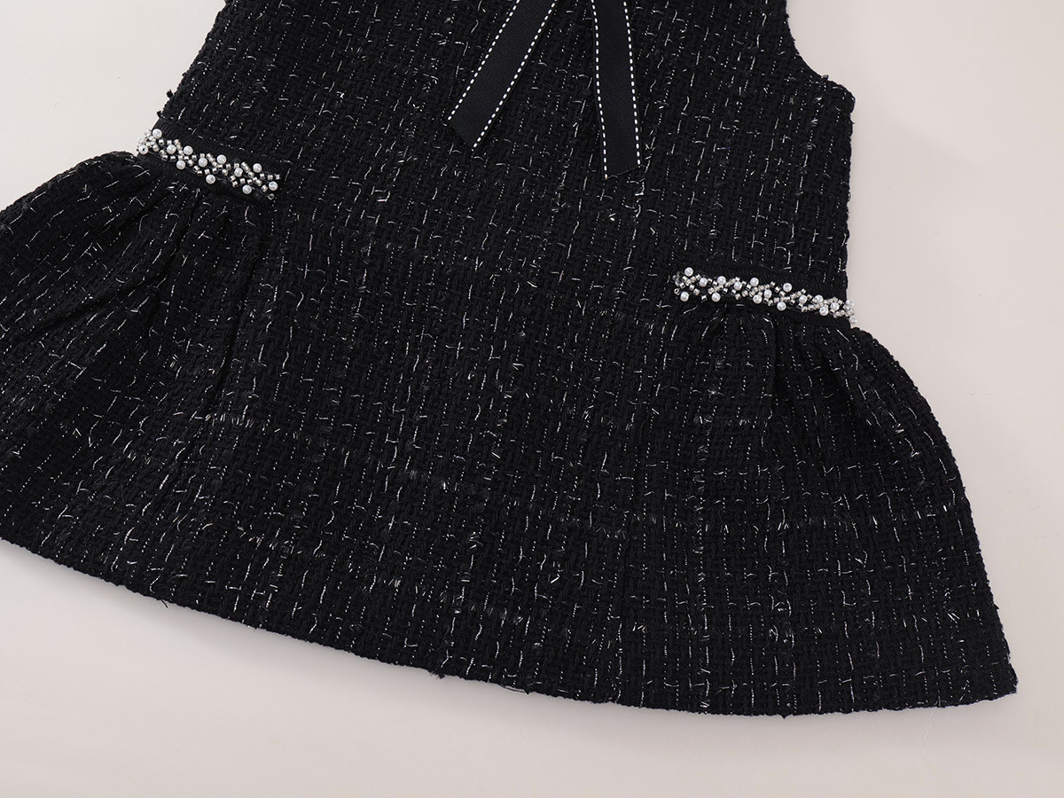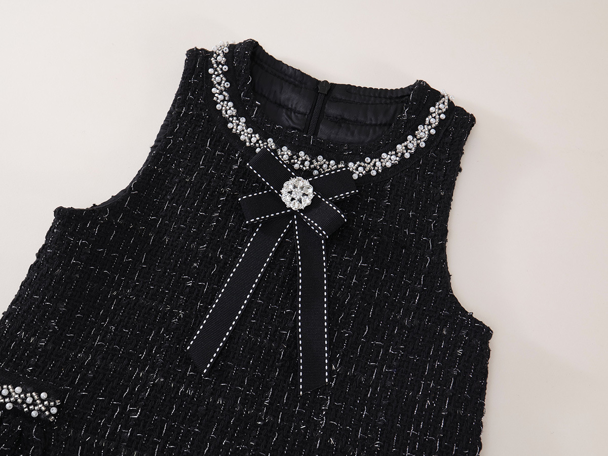 Девушки из твидовых маленьких ароматов без рукавов юбка без рукавов новая весна 2025 новое детское легкое черное горячее платье