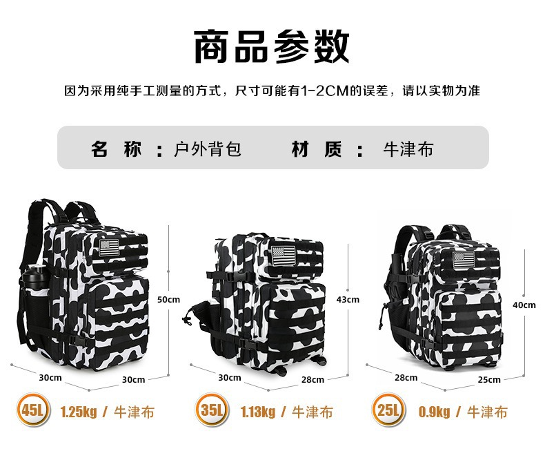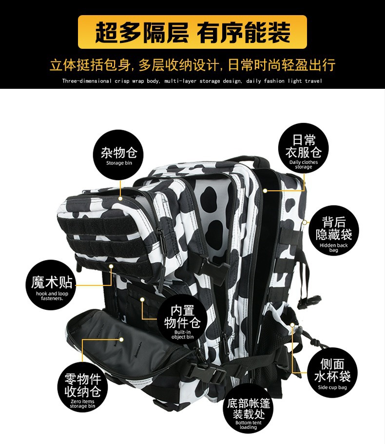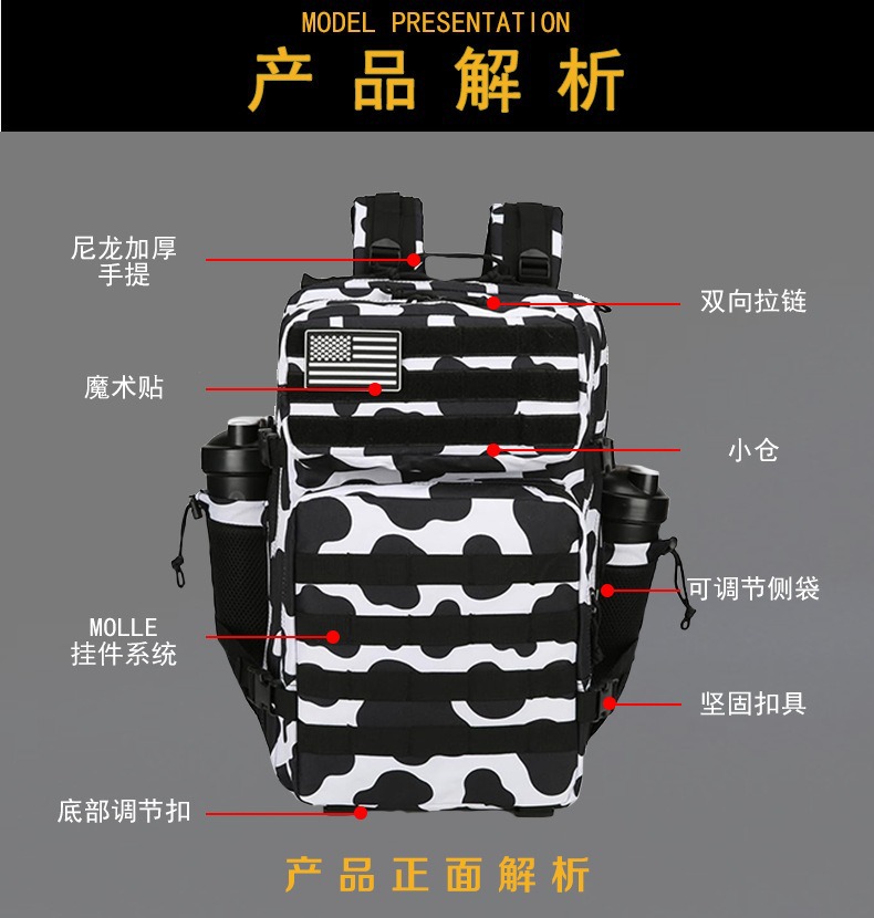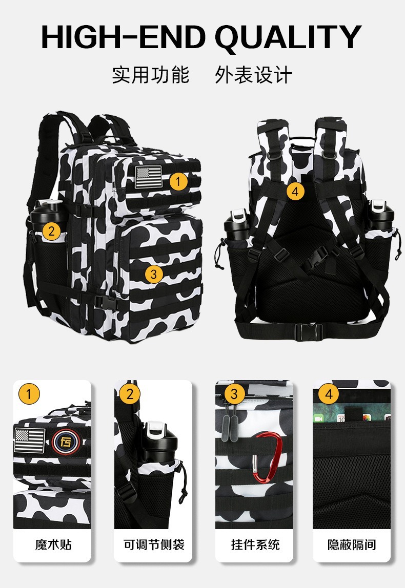 Кросс-бордерная камуфляжная сумка 45 л, спортивный рюкзак большой емкости, уличный износостойкий водонепроницаемый походный тактический рюкзак на липучке