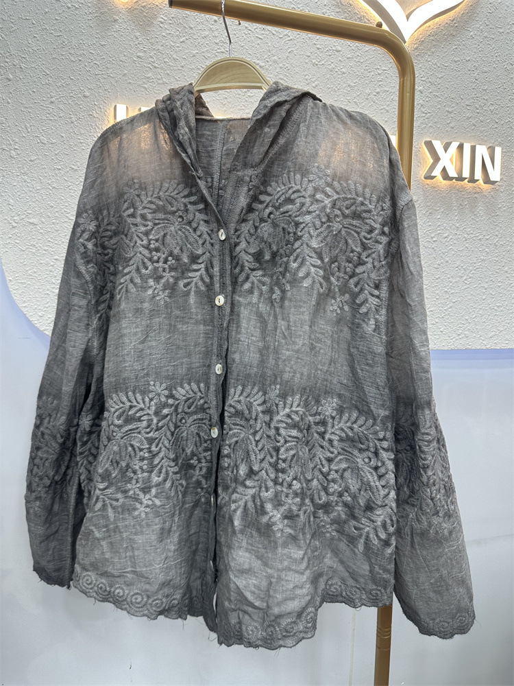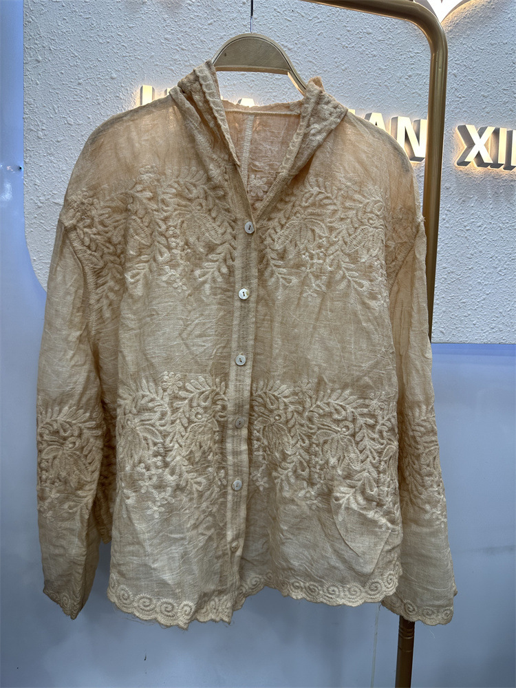 Французская нежная ветреная кружевная рубашка с вышивкой женская весна и осень 2024 новая мода темперамент тонкая и дикая рубашка с длинными рукавами
