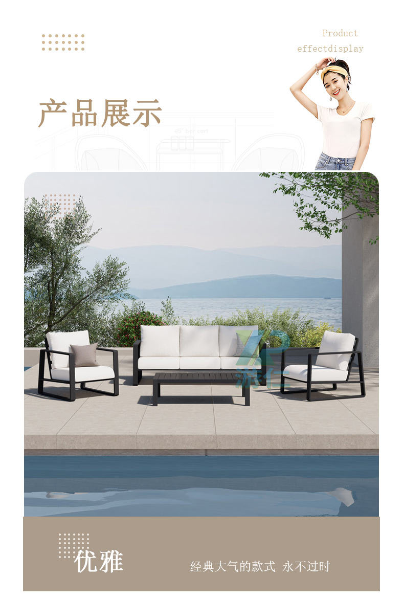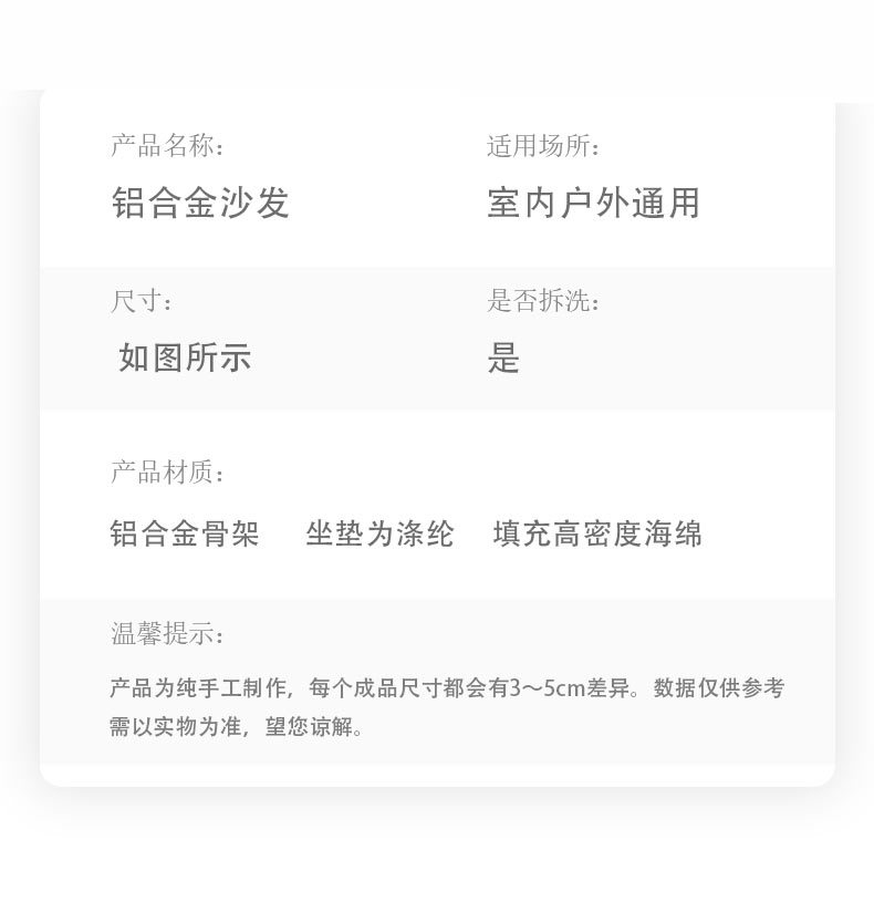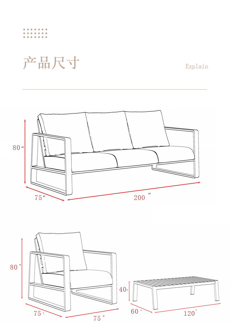 одиночный диван; трехместный диван; 1+1+3+ журнальный столик; 4 отдельных листа + стол для барбекю; Длинный журнальный столик из алюминиевого сплава