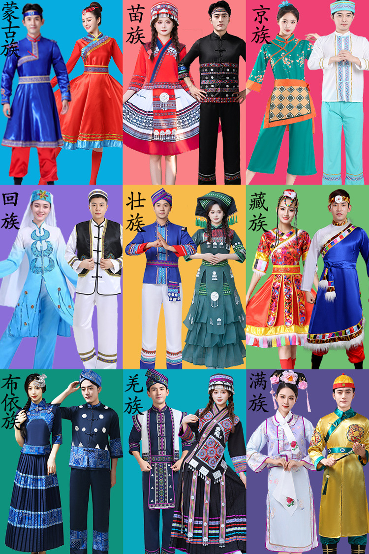 56 костюмов этнических меньшинств для взрослых мужчин и женщин