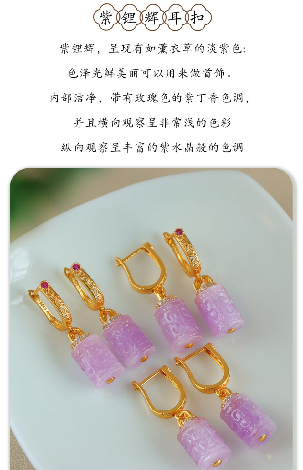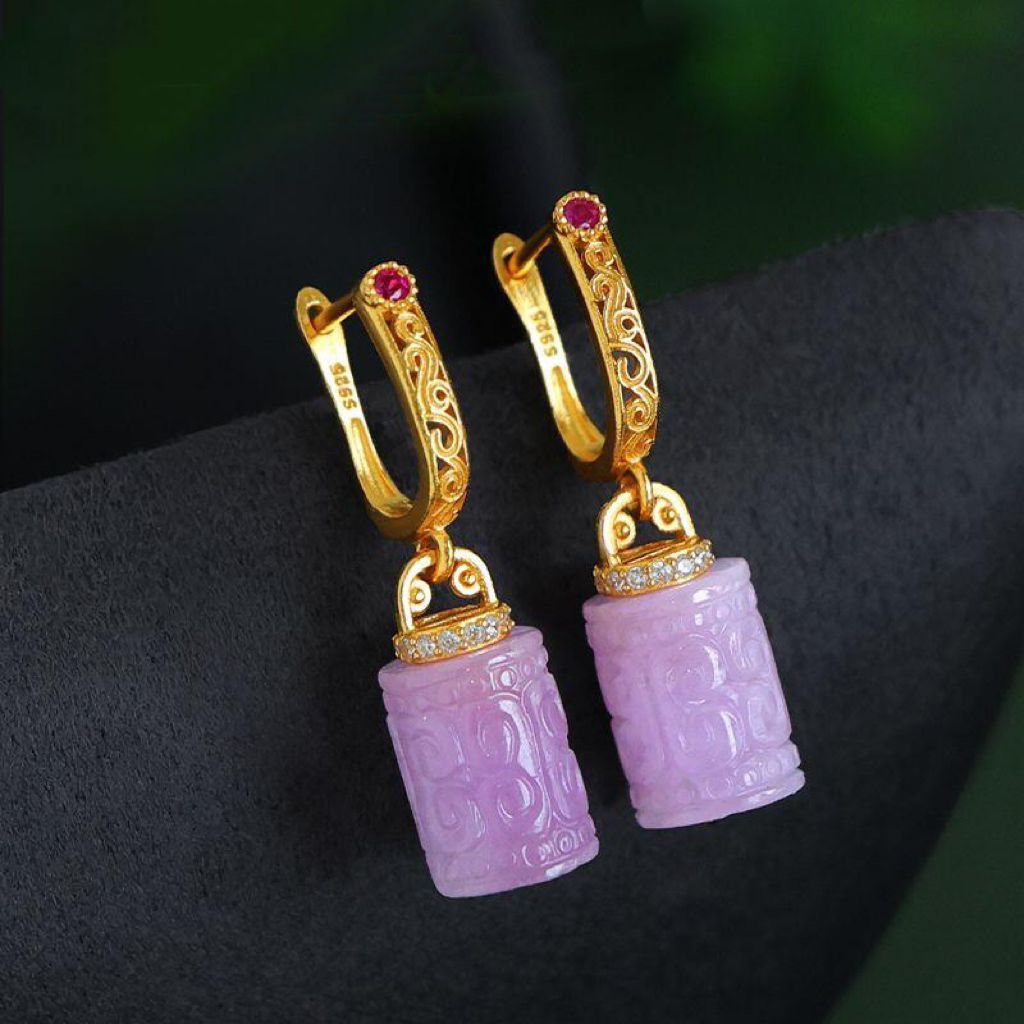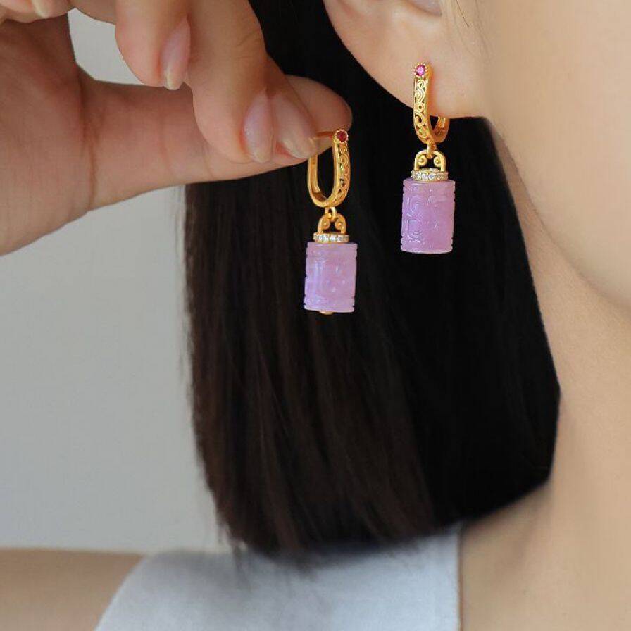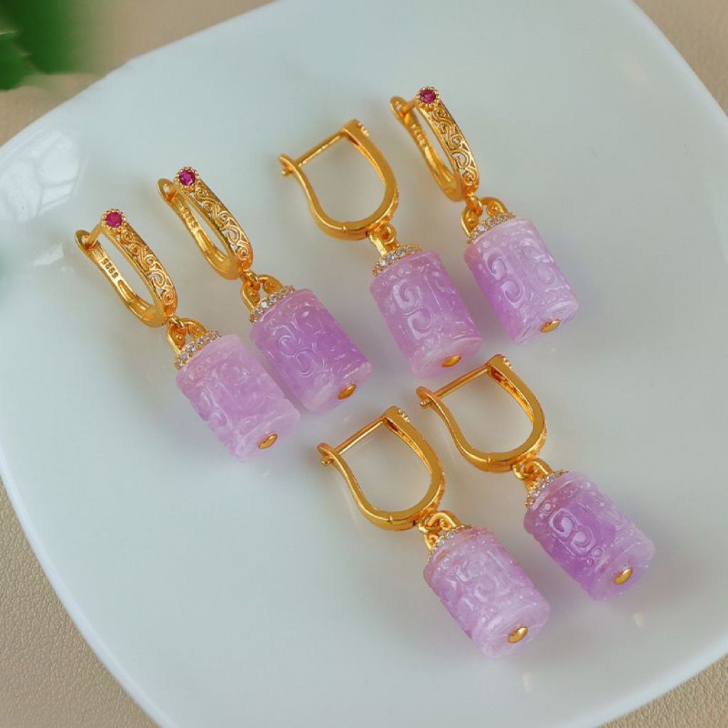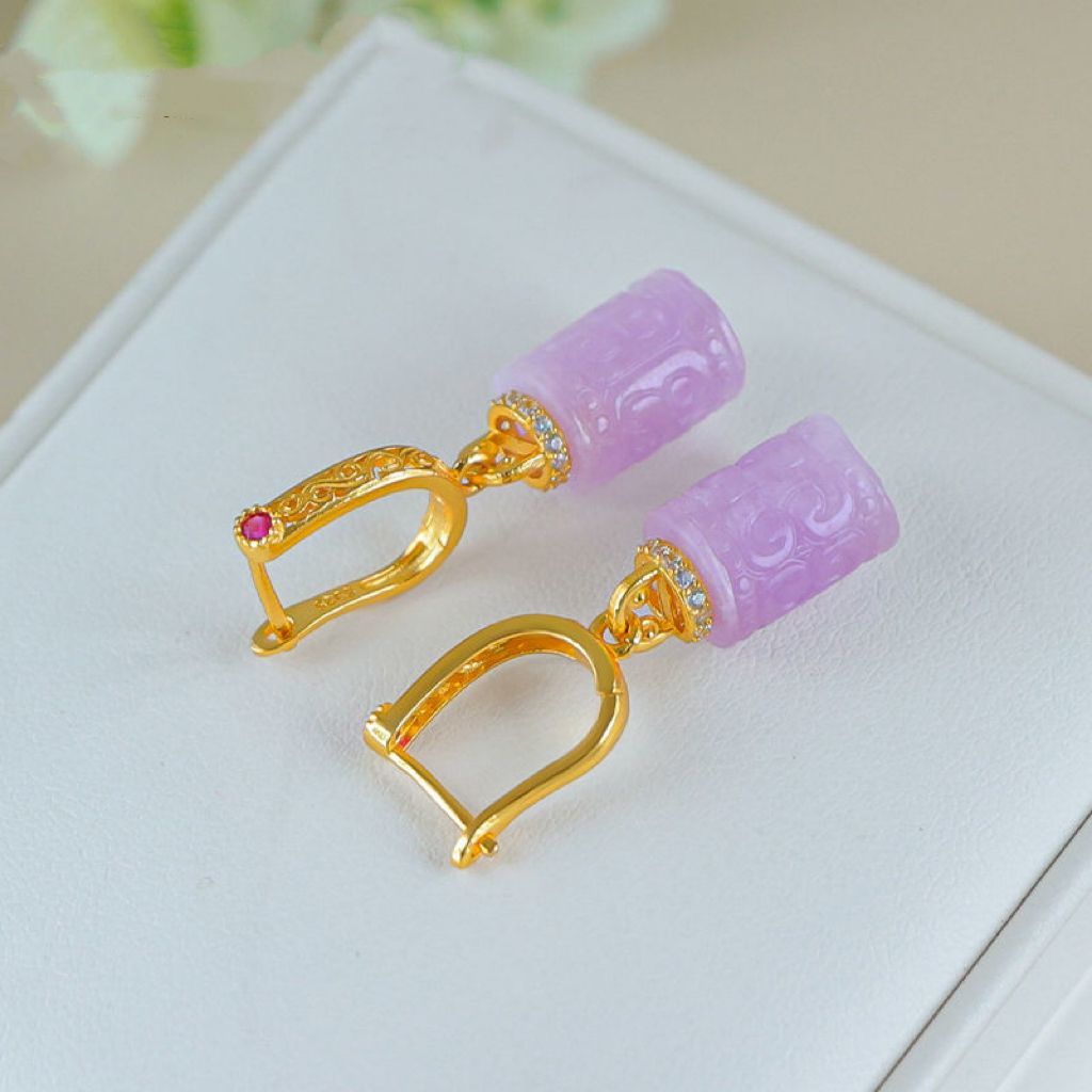 Натуральный фиолетовый литий серьги женские позолоченные бусины барабанные серьги древний стиль новый китайский стиль серьги без шрамов
