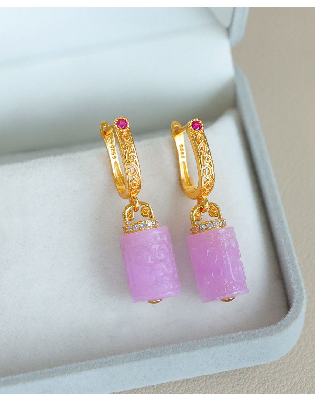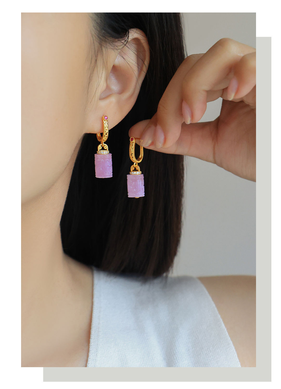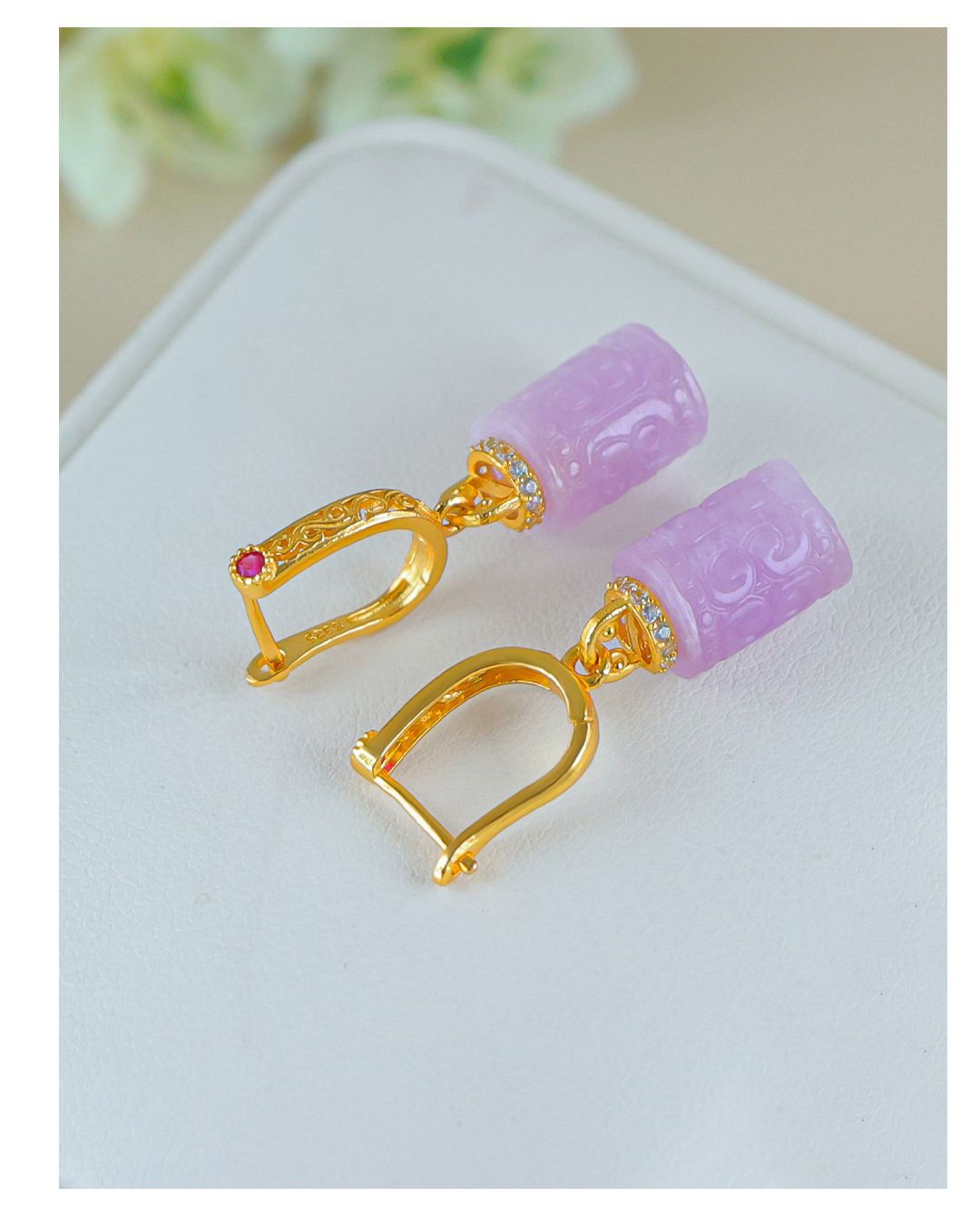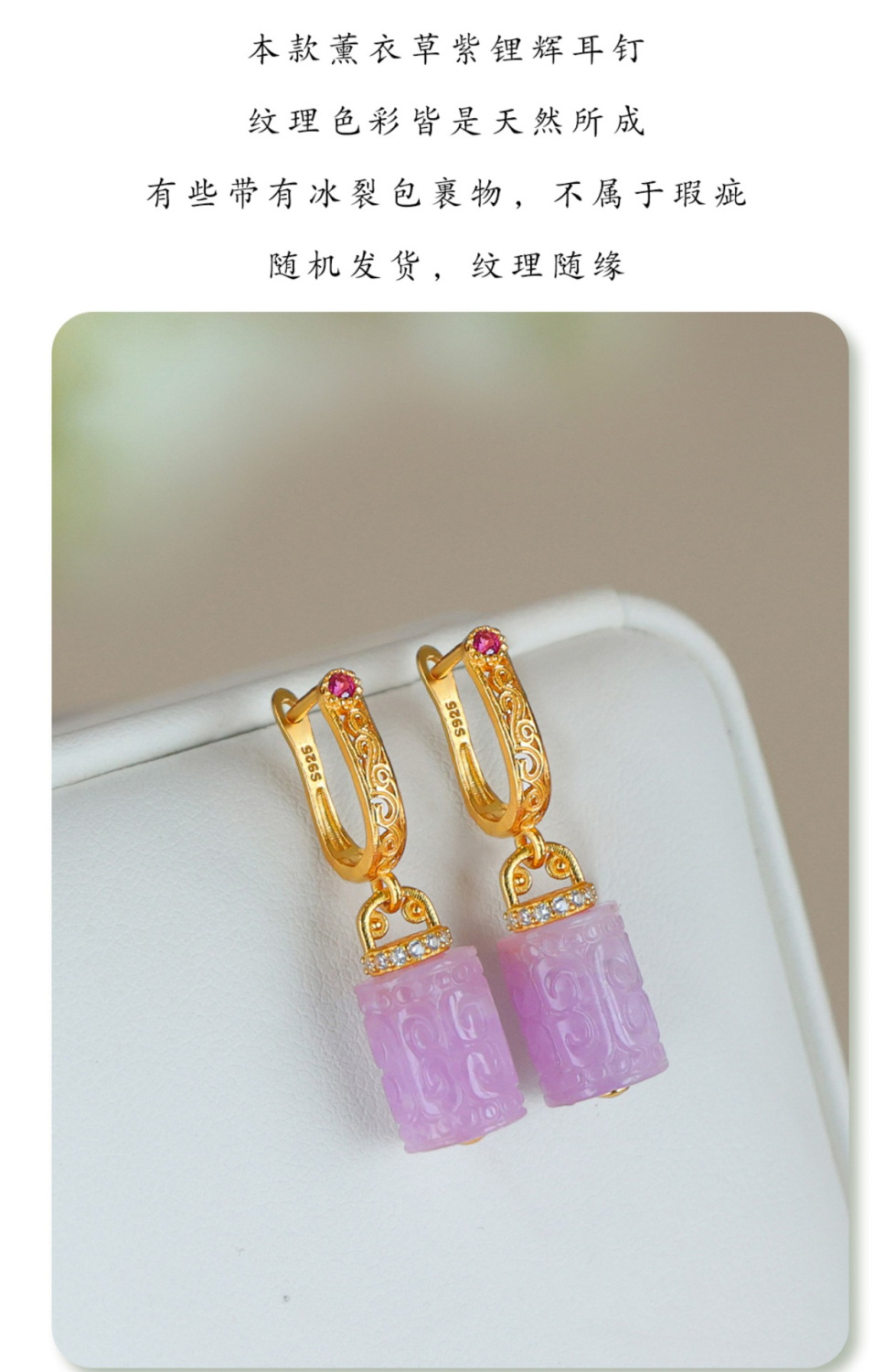 Натуральный фиолетовый литий серьги женские позолоченные бусины барабанные серьги древний стиль новый китайский стиль серьги без шрамов